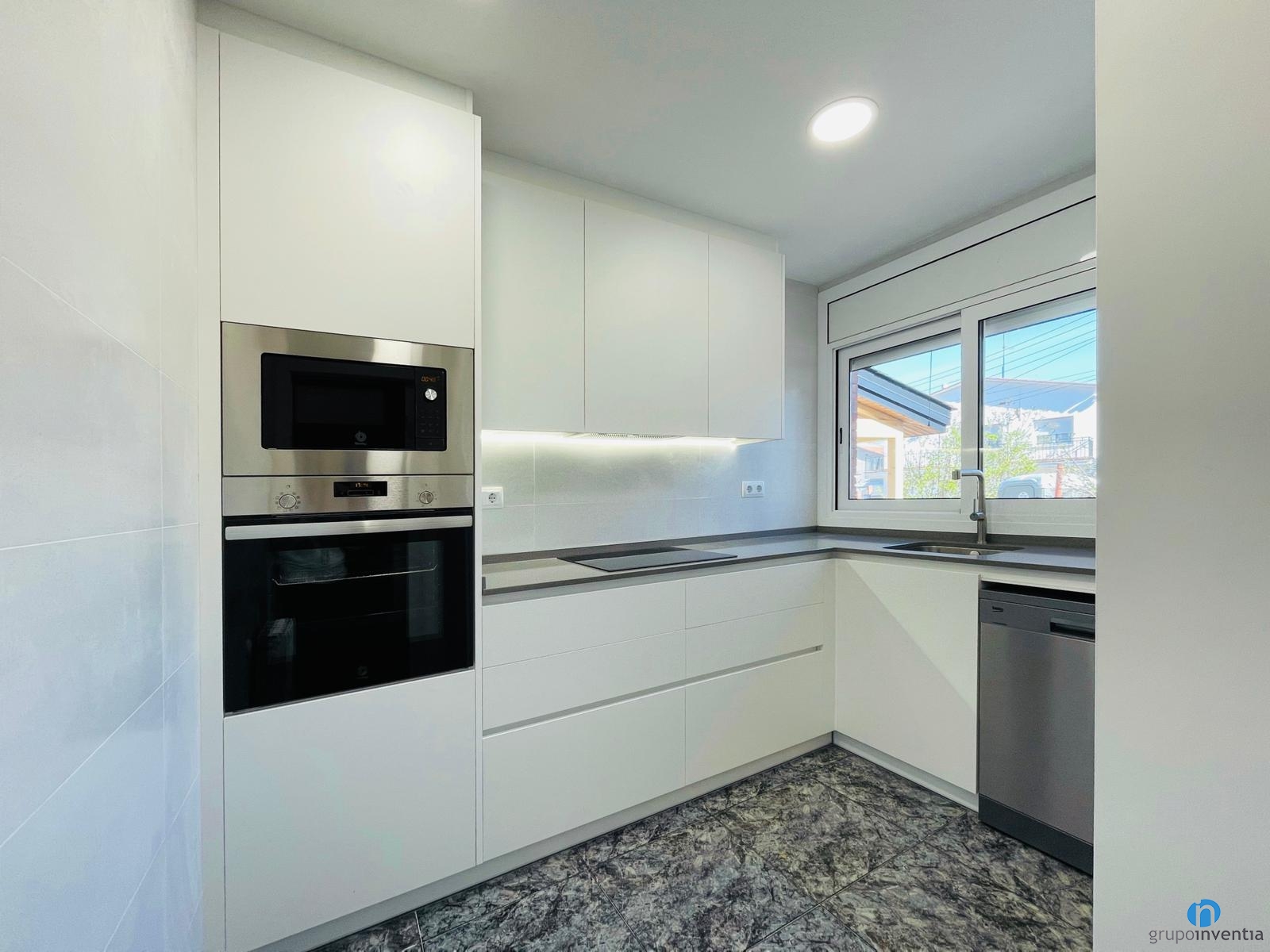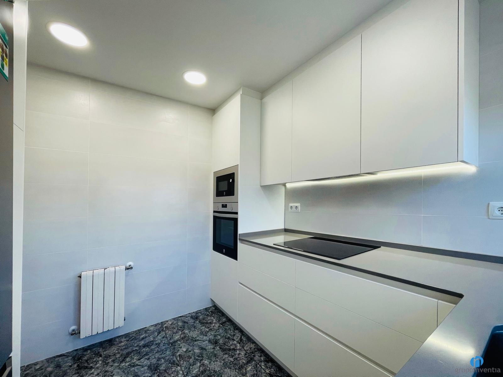 A la part inferior del segon taulell hem integrat un rentaplats. Per la seva banda, al costat de la dreta d´aquesta cuina hi ha espai per col·locar la nevera. D’aquesta manera hem aconseguit una cuina altament funcional i completament equipada. El nostre objectiu és que es pugui utilitzar des del primer dia.