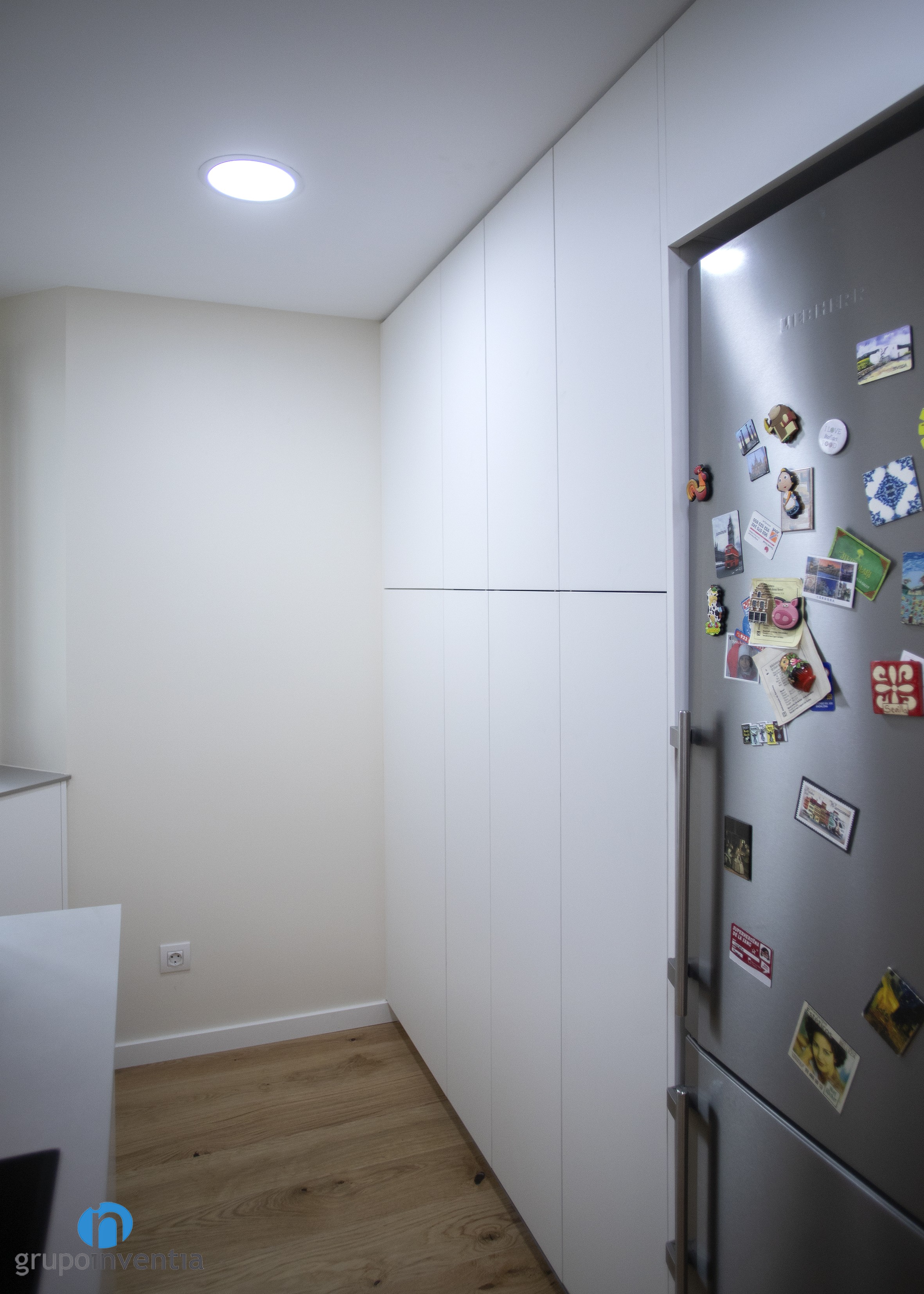 Ja a la paret de la dreta es va col·locar un nou armari que àmplia la capacitat d’emmagatzematge i en el qual es va encastar la nevera. Amb això, es va aconseguir una estança completament equipada i que ofereix les millors prestacions i funcionalitat en el seu ús.