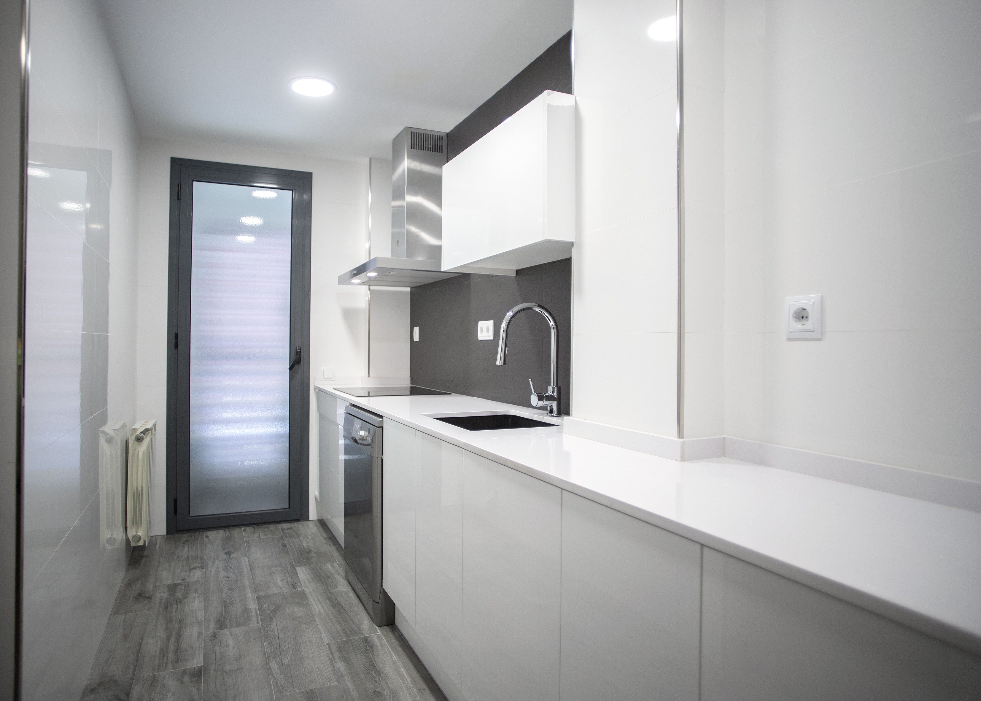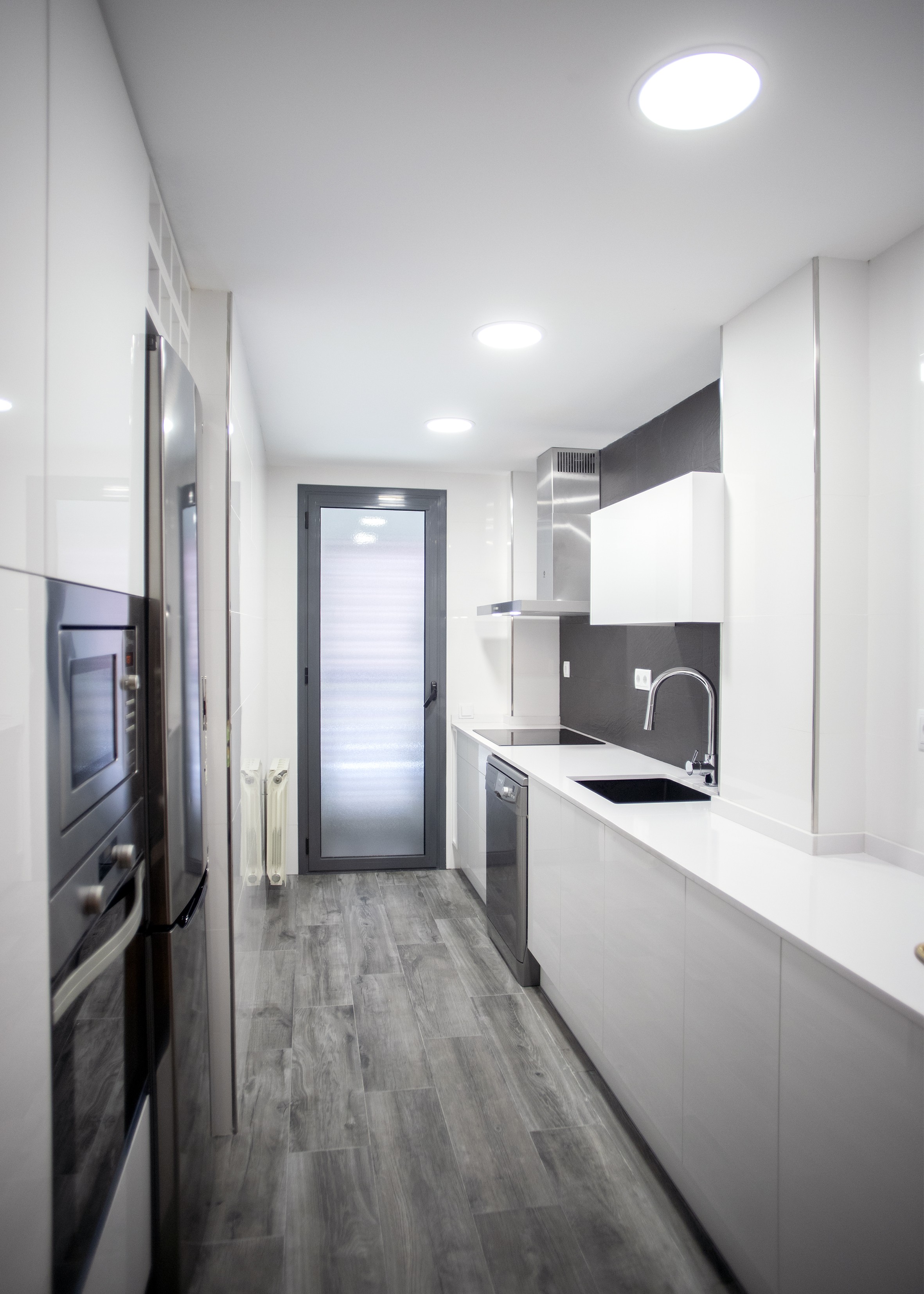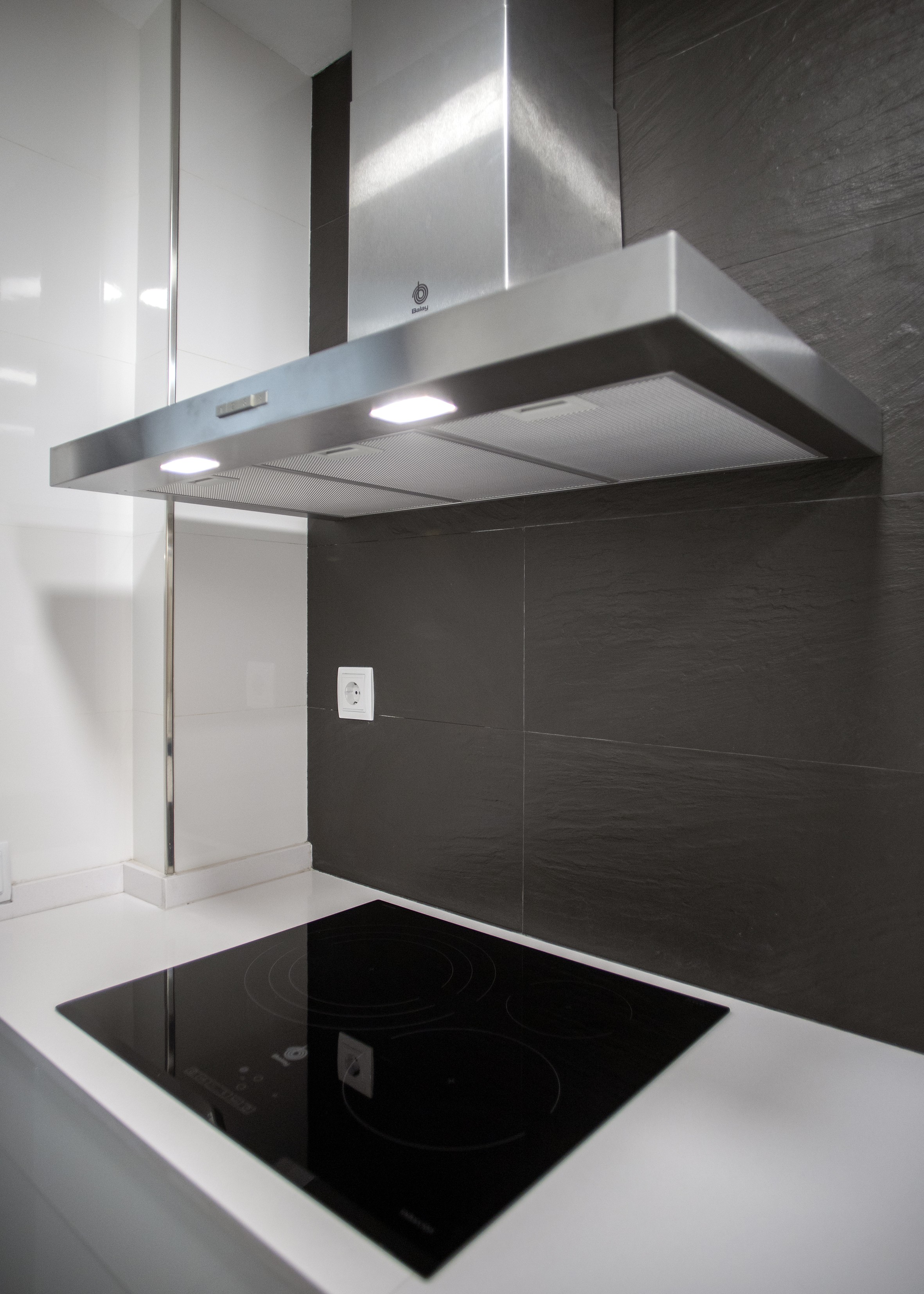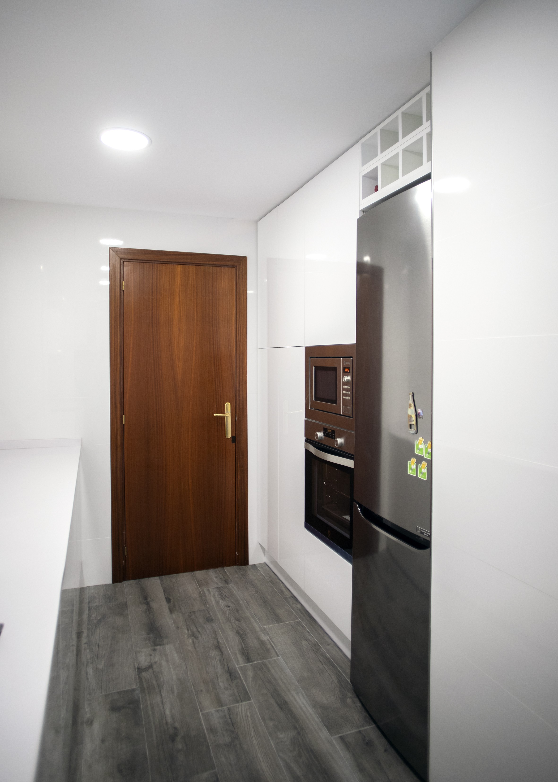 La cuina s’ubica en una estança pròpia i és de superfície rectangular, de manera que per a la disposició dels nous elements es va apostar per una distribució a dos fronts, amb la qual es podia aprofitar el màxim espai possible.