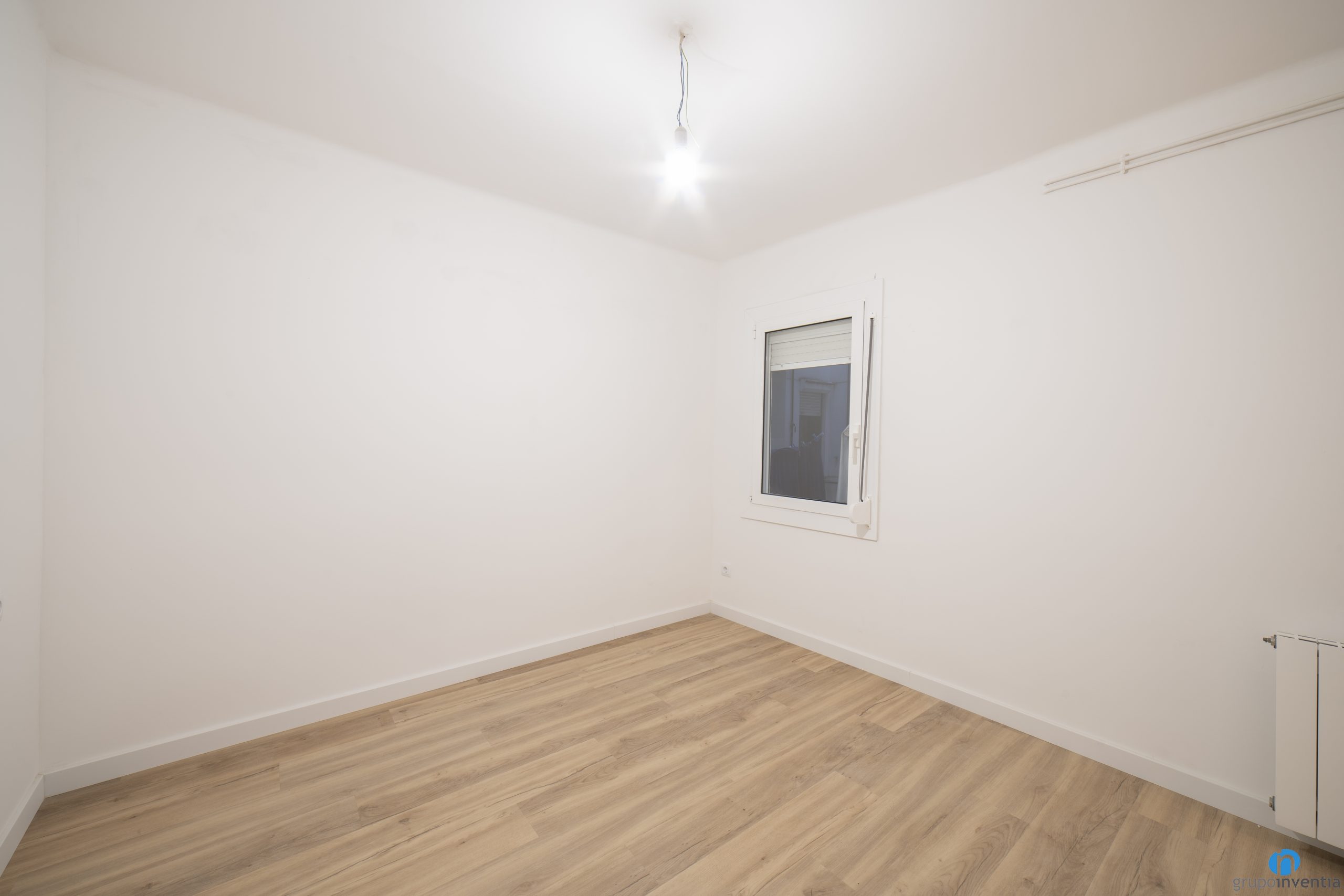 A aquesta reforma de cuina a Sant Adrià del Besòs també hi afegim la millora en disseny interior del dormitori principal. Ens hem encarregat de pintar les parets de color blanc i de col·locar un terra de parquet en tons de fusta natural.