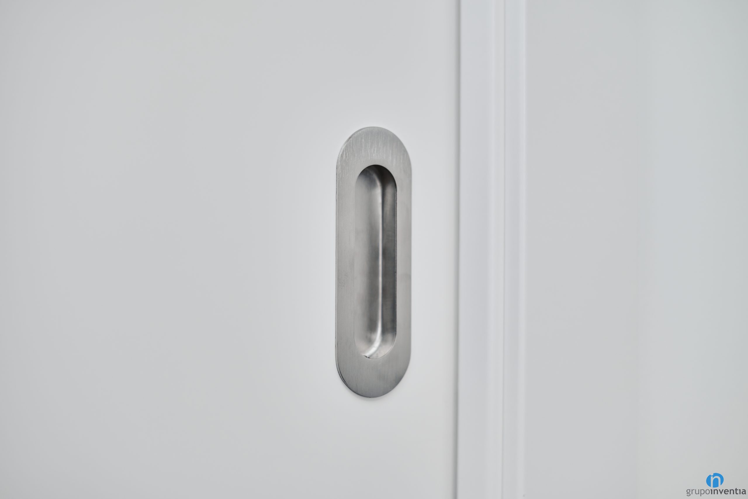La cuina està situada en una estança independent i s’hi accedeix a través d’una porta corredissa. Hem disposat els nous elements en una distribució en forma d’U. Tot plegat agrupat en un moble de cuina fet a mida. A l’extrem esquerre hem integrat els nous electrodomèstics. Concretament un forn, microones i nevera que queda camuflada per les portes de l’armari.