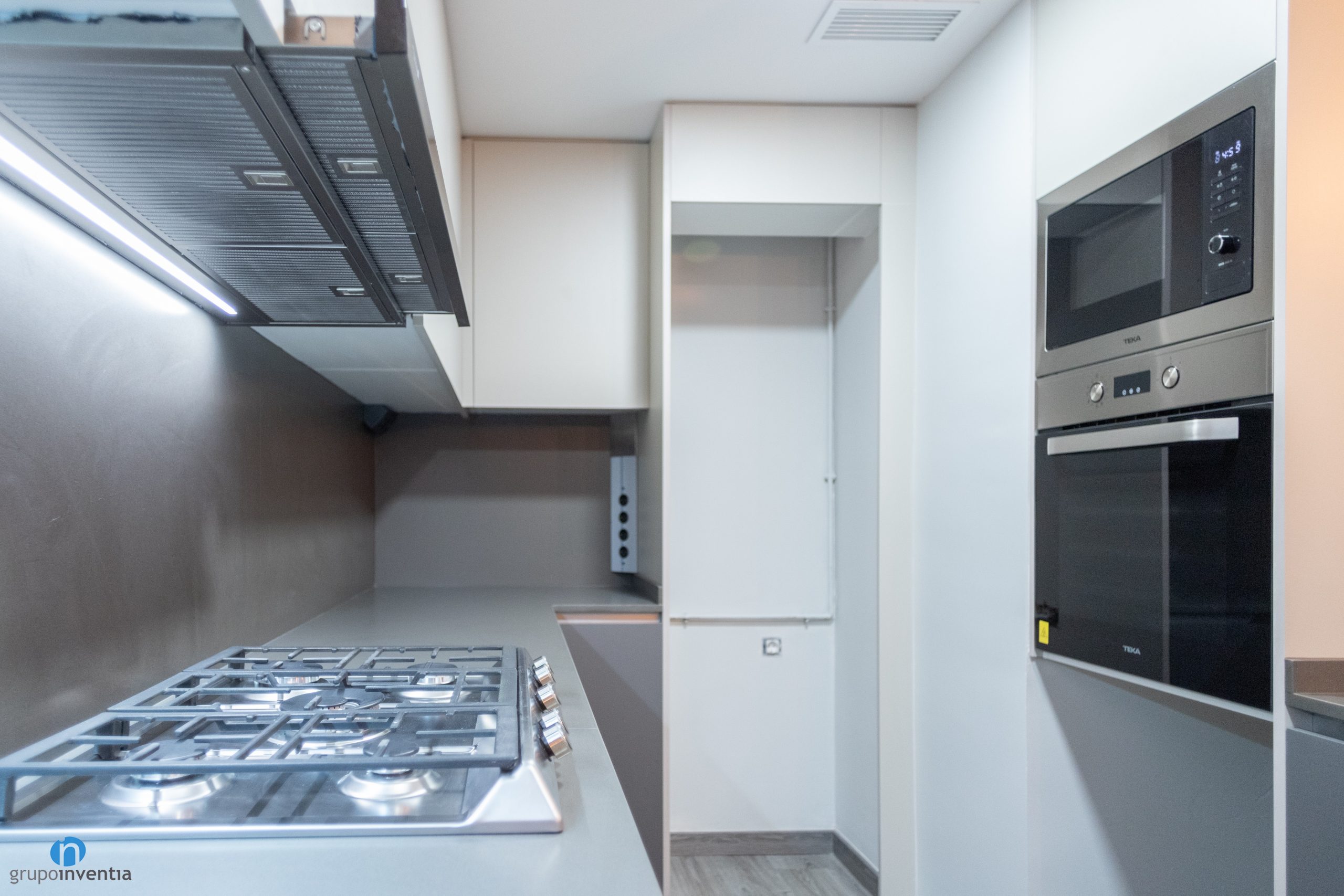 Un dels espais que s’han millorat en aquesta reforma de pis a Barcelona és el de la cuina. És una de les nostres especialitats, ja que disposem de més i millors opcions que altres empreses del sector. Treballem de manera personalitzada i adaptada al que volen els propietaris. En aquest cas, passar d’una cuina independent a una cuina oberta.
