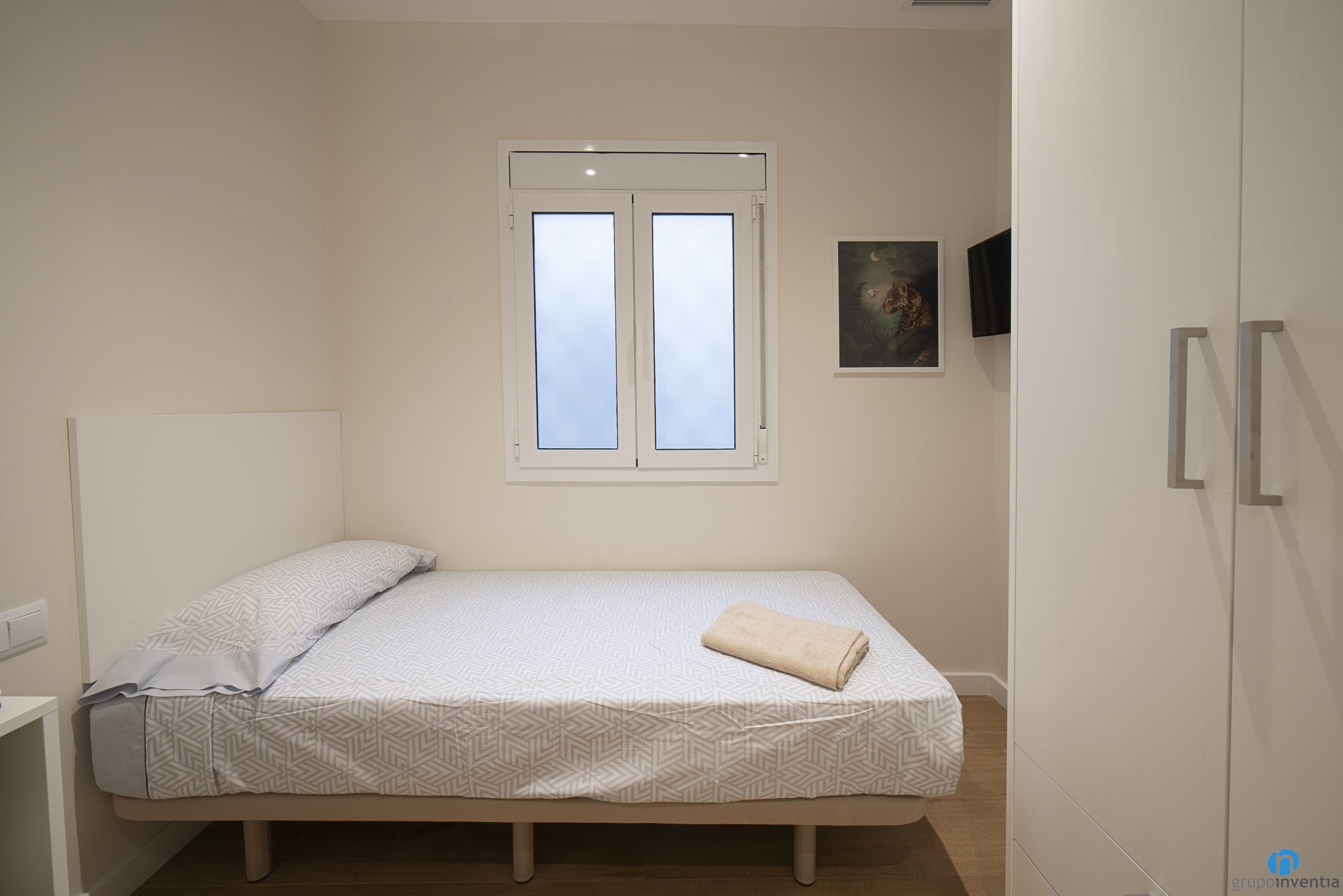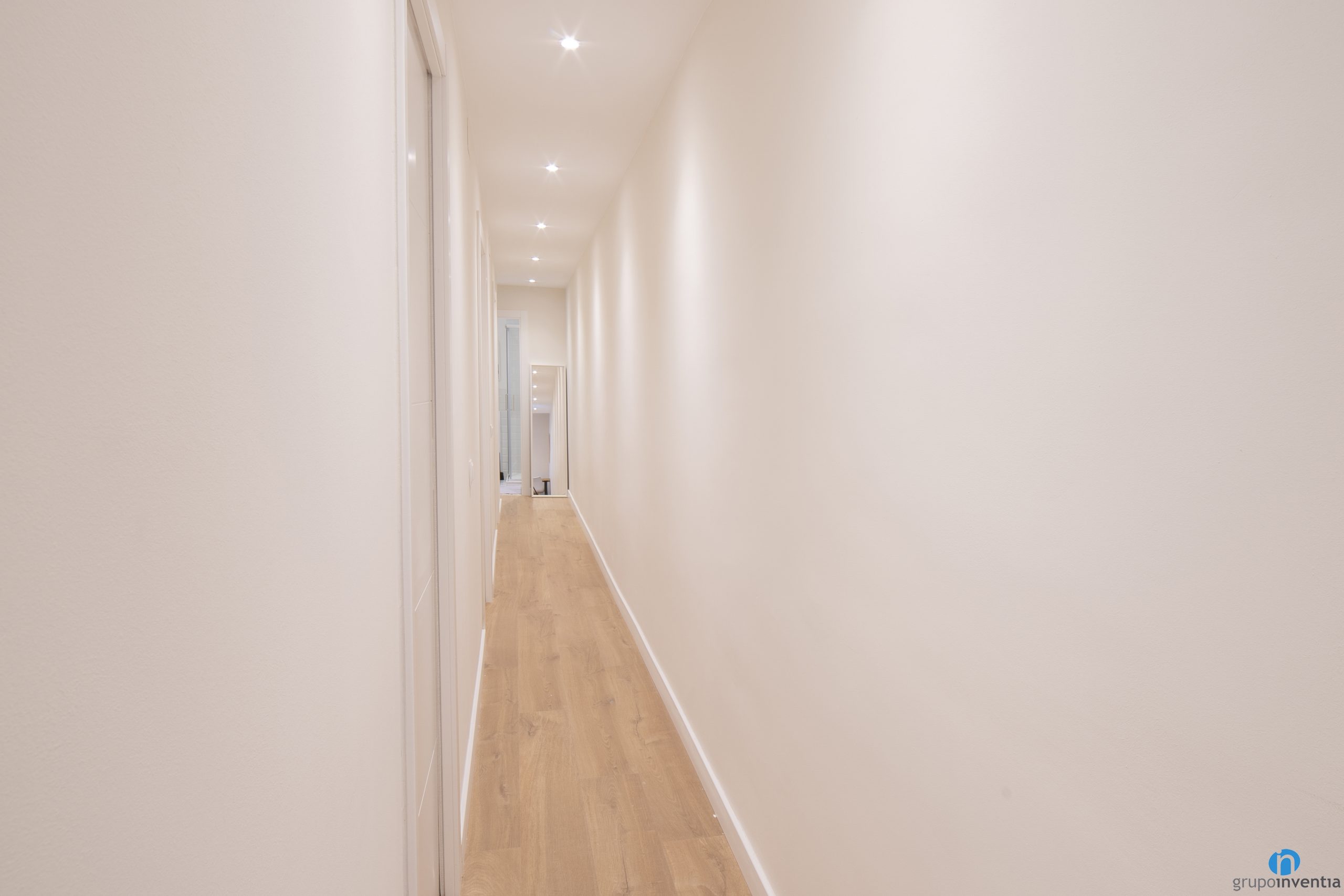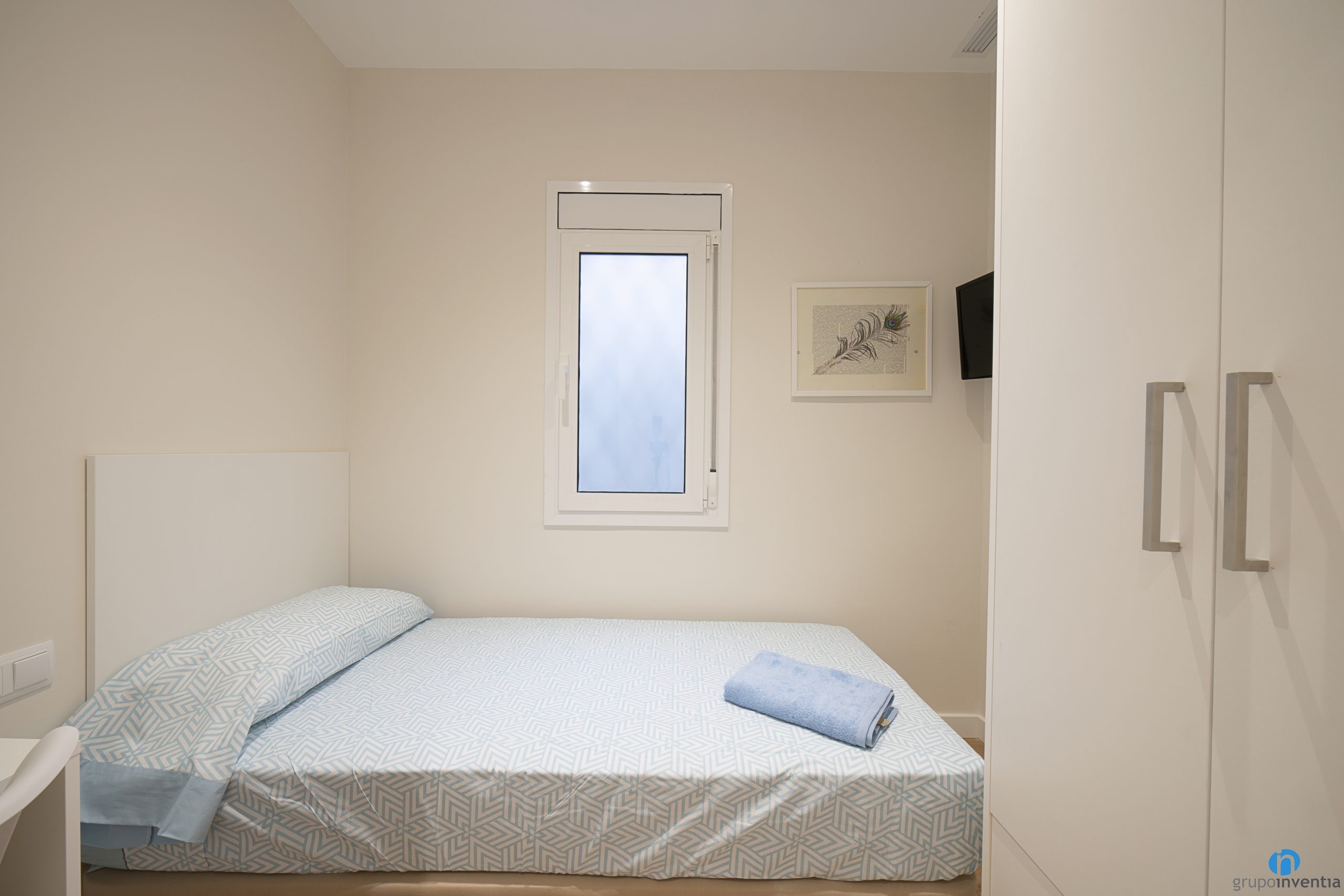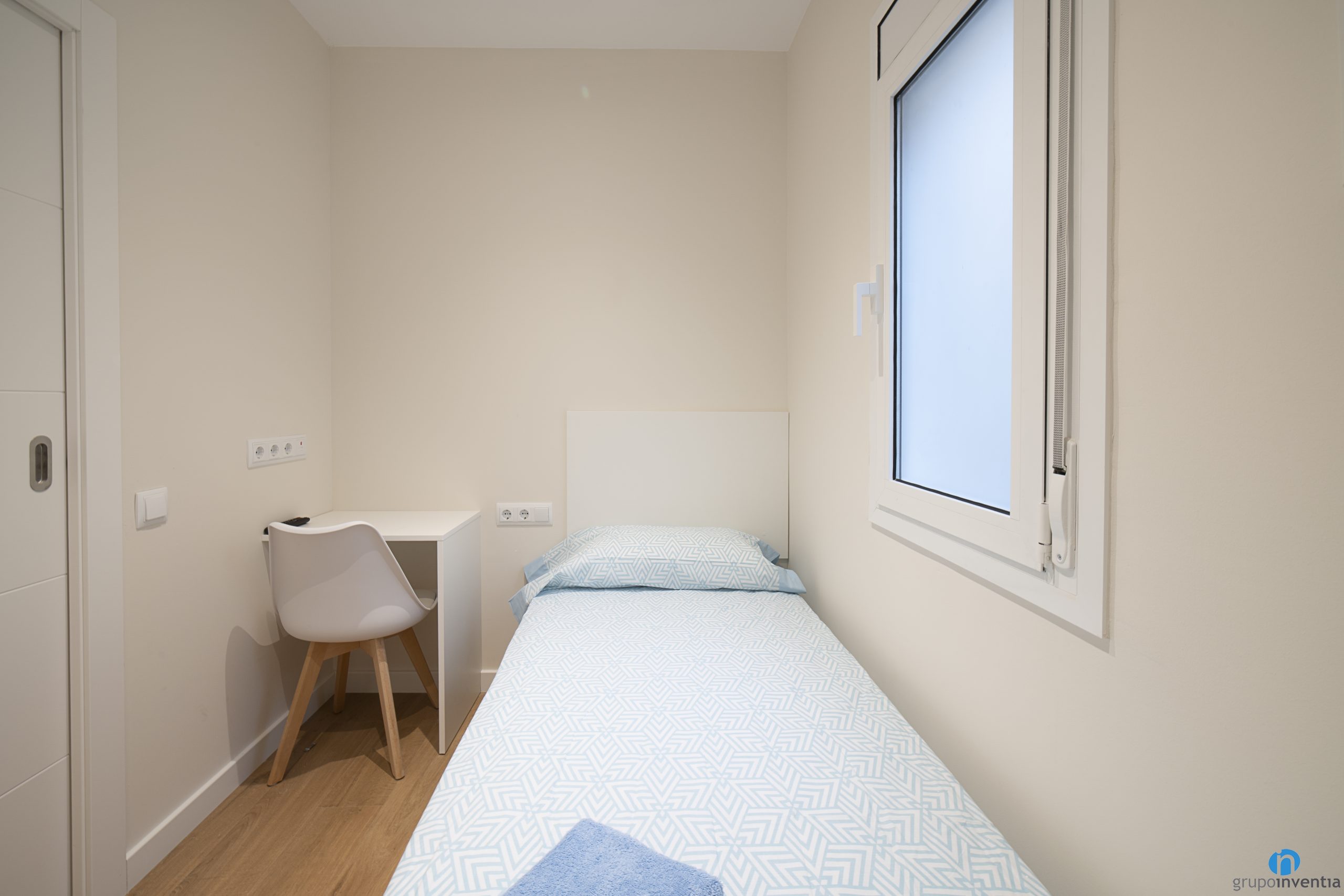 També hem canviat tot el paviment daquest pis. En la seva gran majoria hem col·locat un terra de parquet en tons de fusta natural. Una altra de les millores que hem fet en interiorisme ha estat moblar tots els dormitoris. Cadascun té un llit, un armari i una zona de treball.