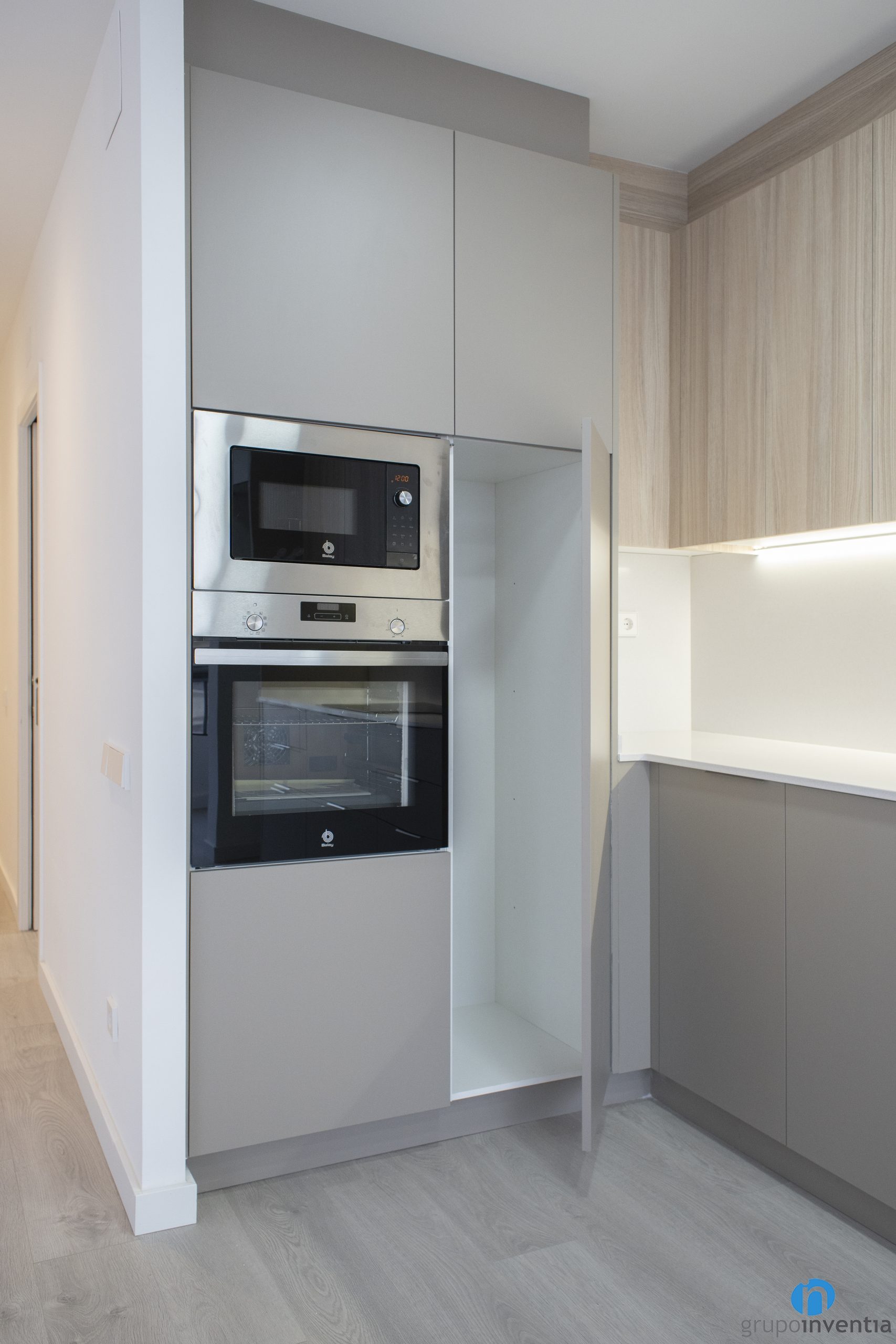 Com que és una reforma de cuina oberta la imatge ha de combinar amb el disseny global de l’habitatge. En aquest cas es tracta d’un interiorisme contemporani amb tons neutres com a protagonistes. La part inferior del moble de cuina i els extrems tenen un acabat en to gris. Per la seva banda, els armaris superiors presenten acabats de fusta natural. Combinen perfectament amb el paviment ceràmic que hem col·locat.