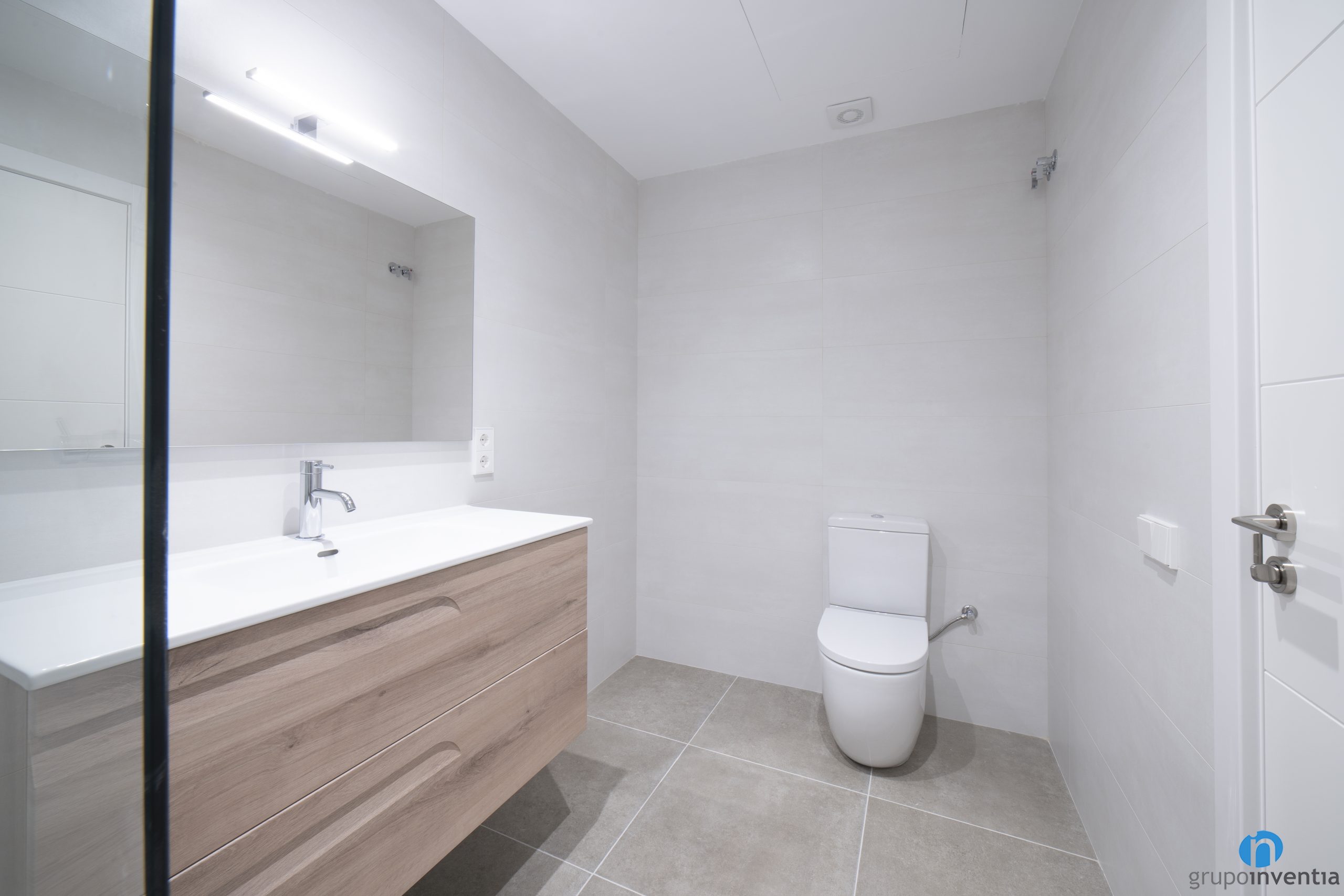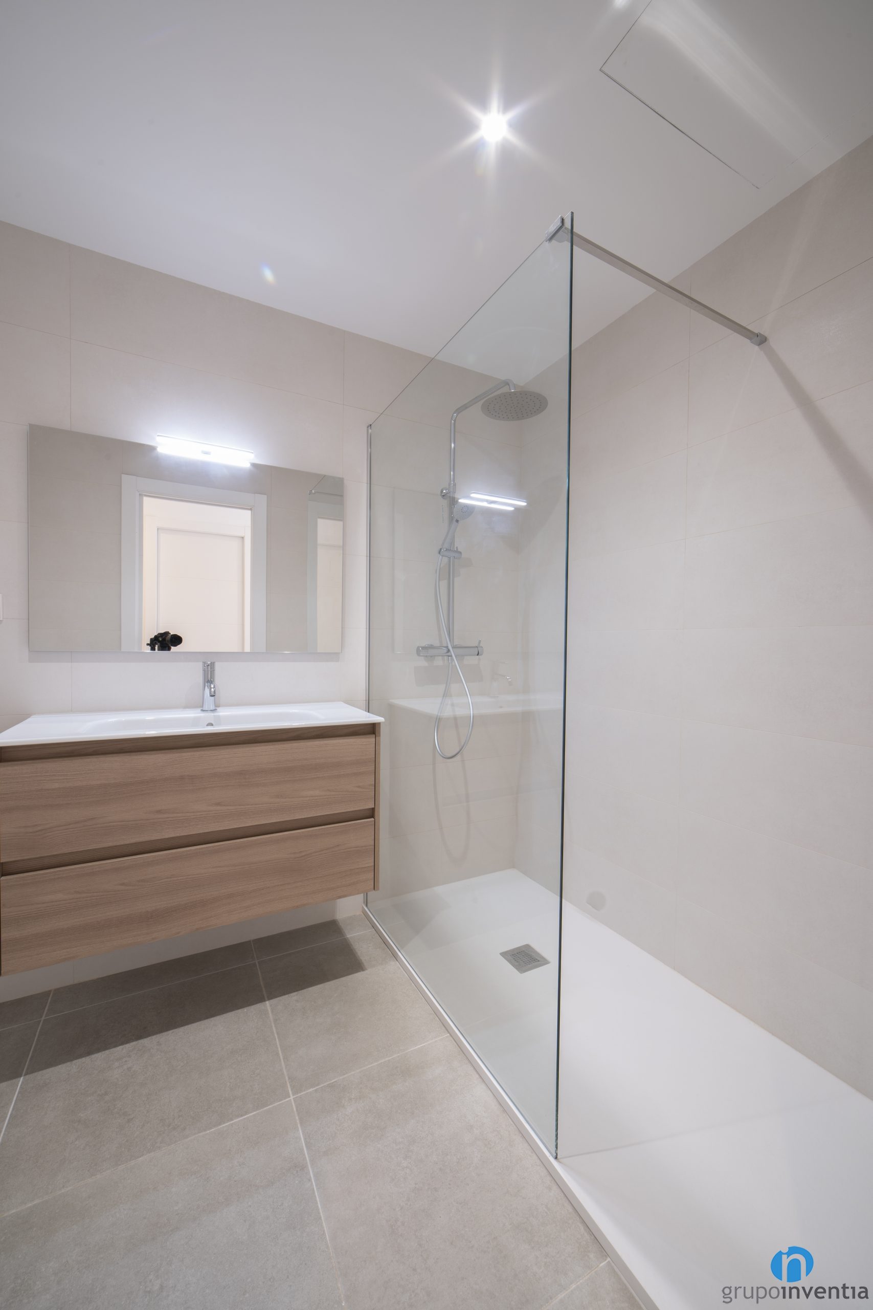 Cada cambra de bany compta amb un lavabo amb moble d’emmagatzematge de dos calaixos incorporat. D’aquesta manera podem garantir una organització correcta de tot tipus de productes d’higiene. L’acompanya un vàter de línies modernes amb les cisternes a l’esquena. També, una zona d’aigües amb un plat de dutxa protegit amb una mampara transparent.