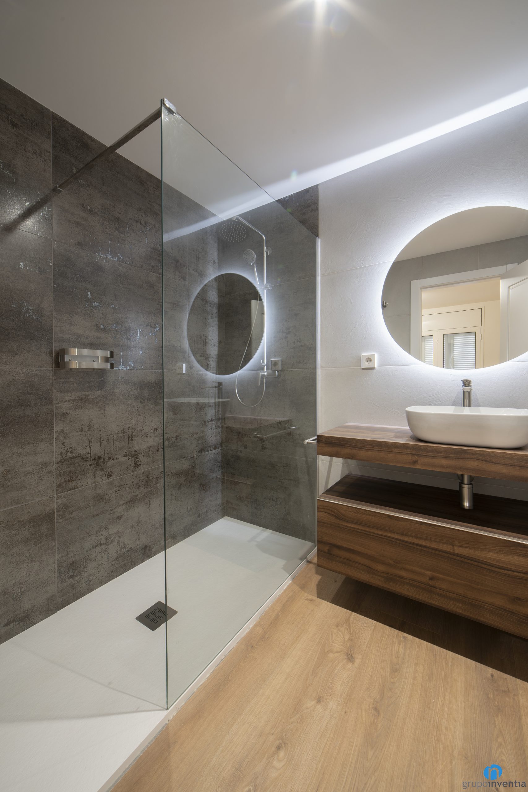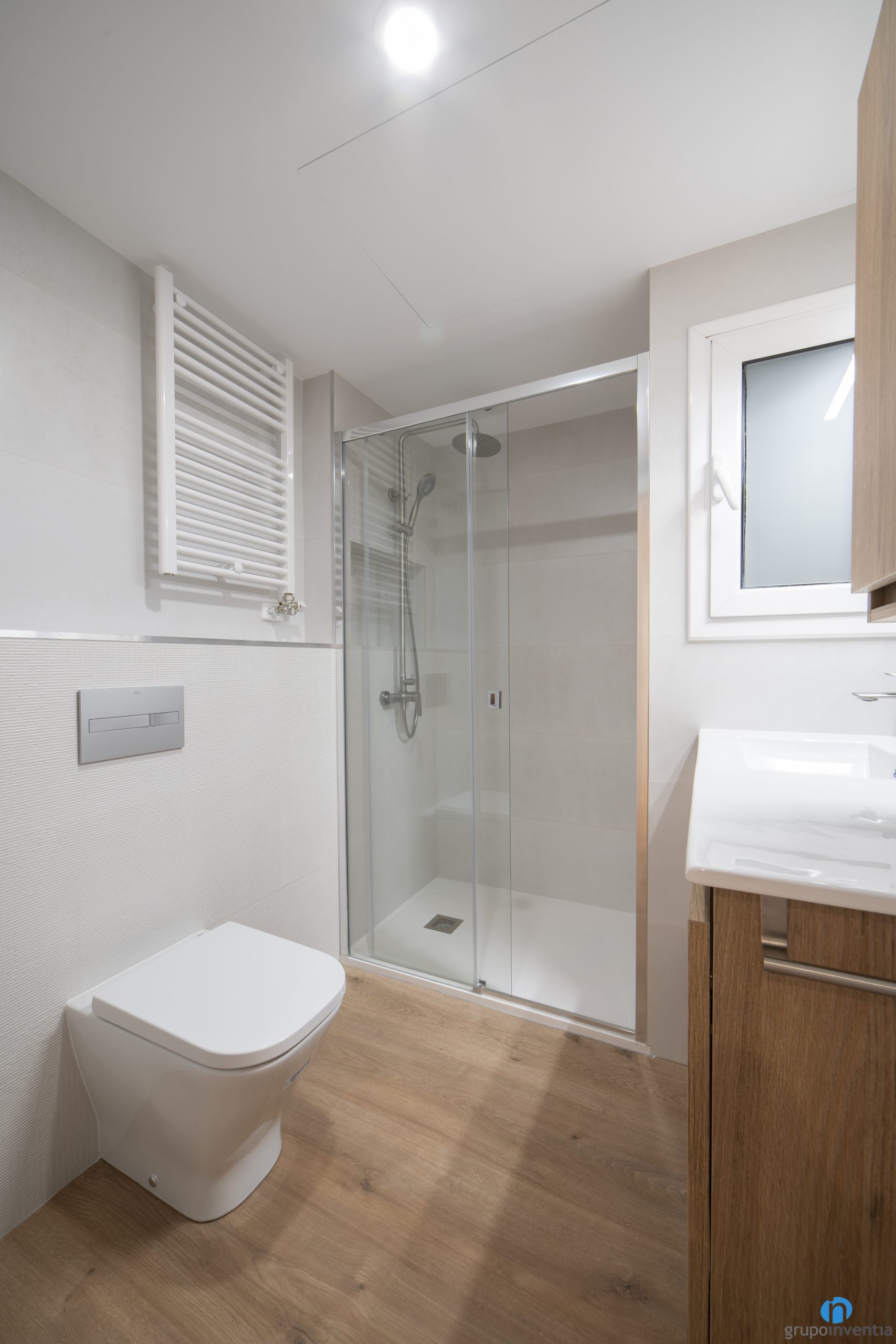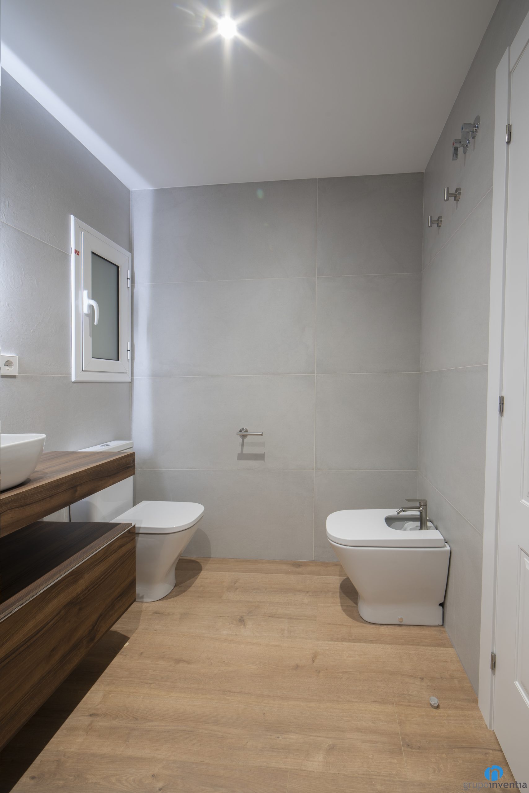 Pel nou disseny hem mantingut la imatge global de la resta del pis. Les parets estan enrajolades amb rajoles de color beix. Així, hem generat dos espais molt lluminosos i d’ambient agradable. Pel paviment ens hem decantat per un terra ceràmic amb acabats en parquet.