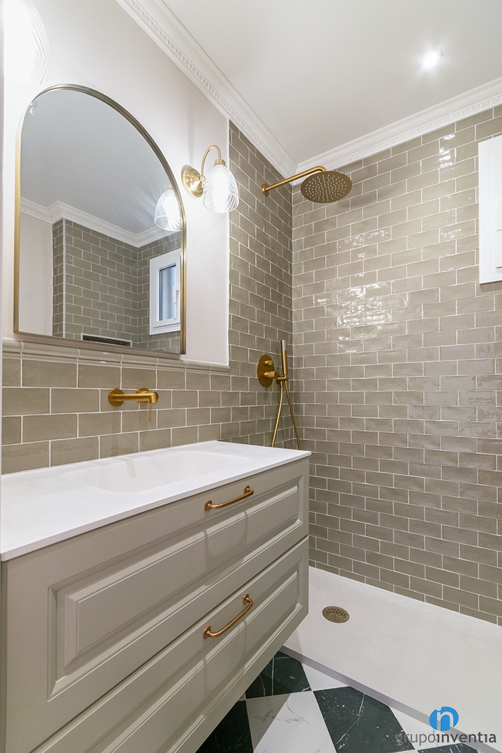 Aquesta reforma integral també compta amb una renovació completa de dues cambres de bany. Cadascun disposa d’un equipament sanitari complet. Es compon d’un lavabo amb moble d’emmagatzematge, un vàter i un plat de dutxa com a zona d´aigües. Entre les reformes de bany hi ha diferències i similituds.