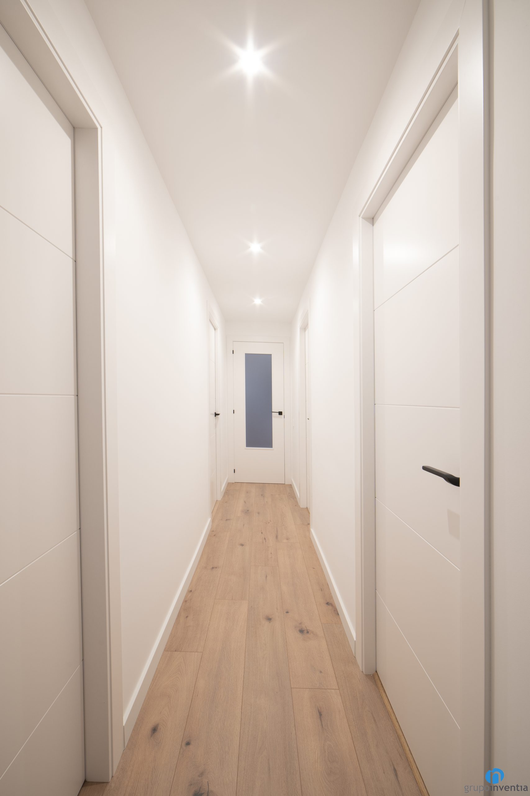 Per això hem pintat les parets de color blanc i hem col·locat un terra de parquet en tons mitjans de fusta. Gràcies a aquesta combinació, hem aconseguit que la llum flueixi amb facilitat per potenciar la sensació d’amplitud i lluminositat. Aquesta nova imatge l’observem al saló, al passadís o als dormitoris.