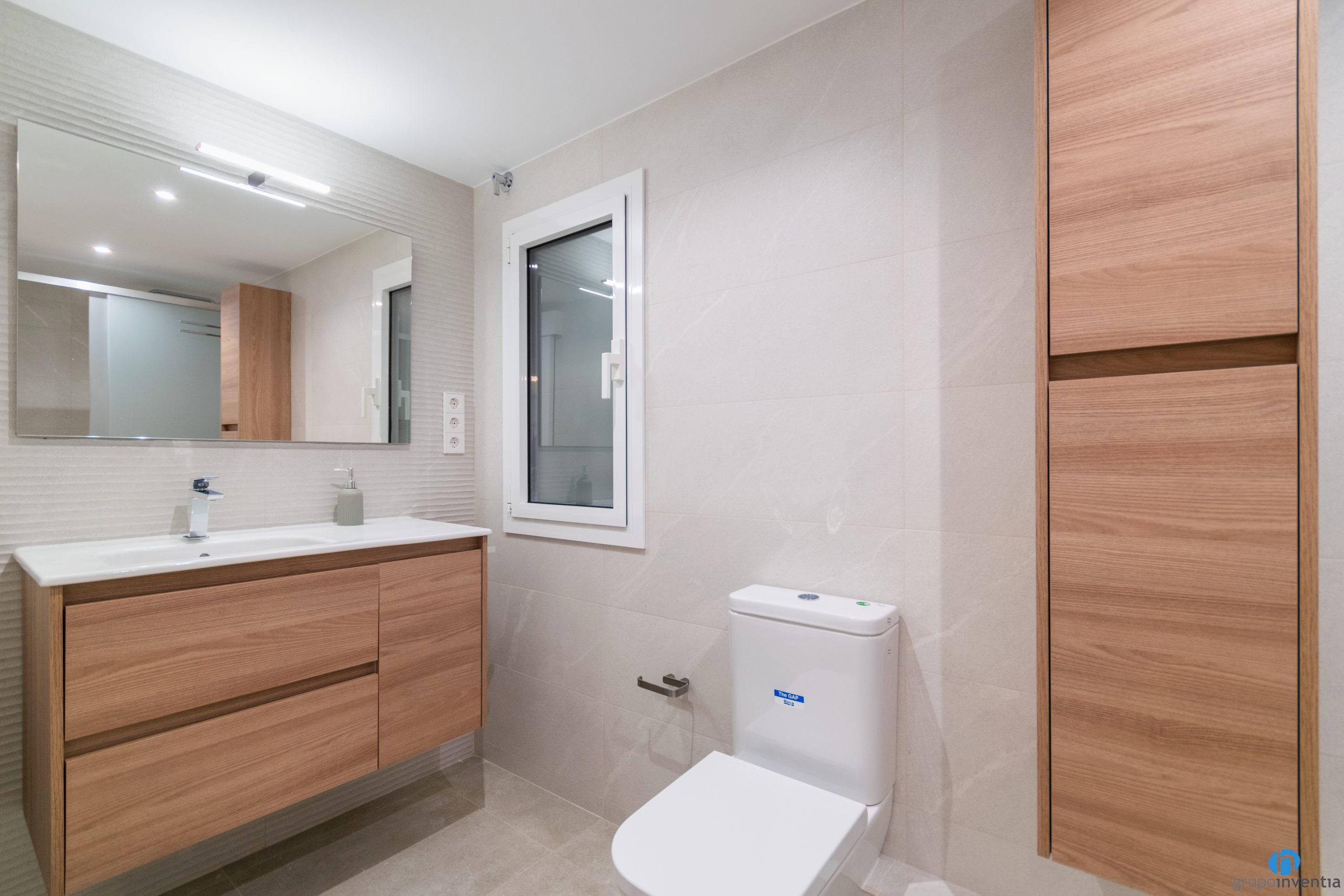 En aquesta reforma integral també ens hem encarregat de millorar la cambra de bany. Es tracta d’un espai de neteja moderna i funcional que en facilita l’ús diari. Compte amb un lavabo ampli acompanyat per un moble amb dos calaixos i un armari. Lespai de magatzematge el complementa un armari vertical.