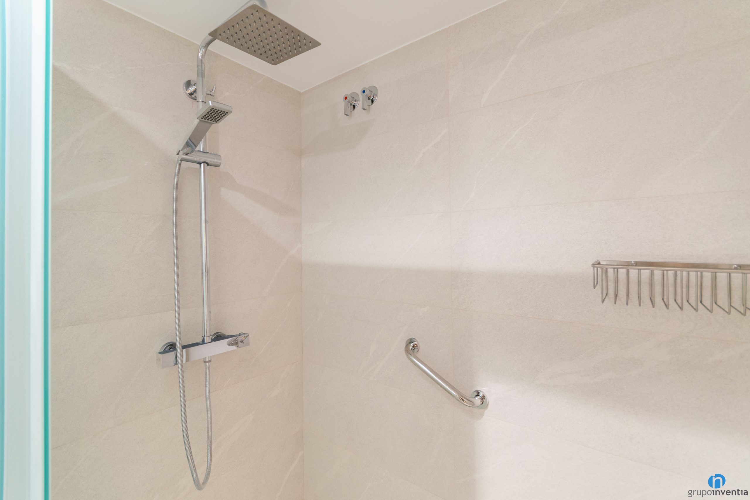 L’acompanya un vàter d’imatge clàssica i una zona d´aigües. Es tracta d’una dutxa àmplia protegida per mampares de portes corredisses opaques. Pel que fa al disseny, en aquesta reforma de bany hem fet servir un estil neutre. Per això hem enrajolat les parets amb rajoles de to beix. D’aquesta manera es potencia la lluminositat i l’amplitud visual.