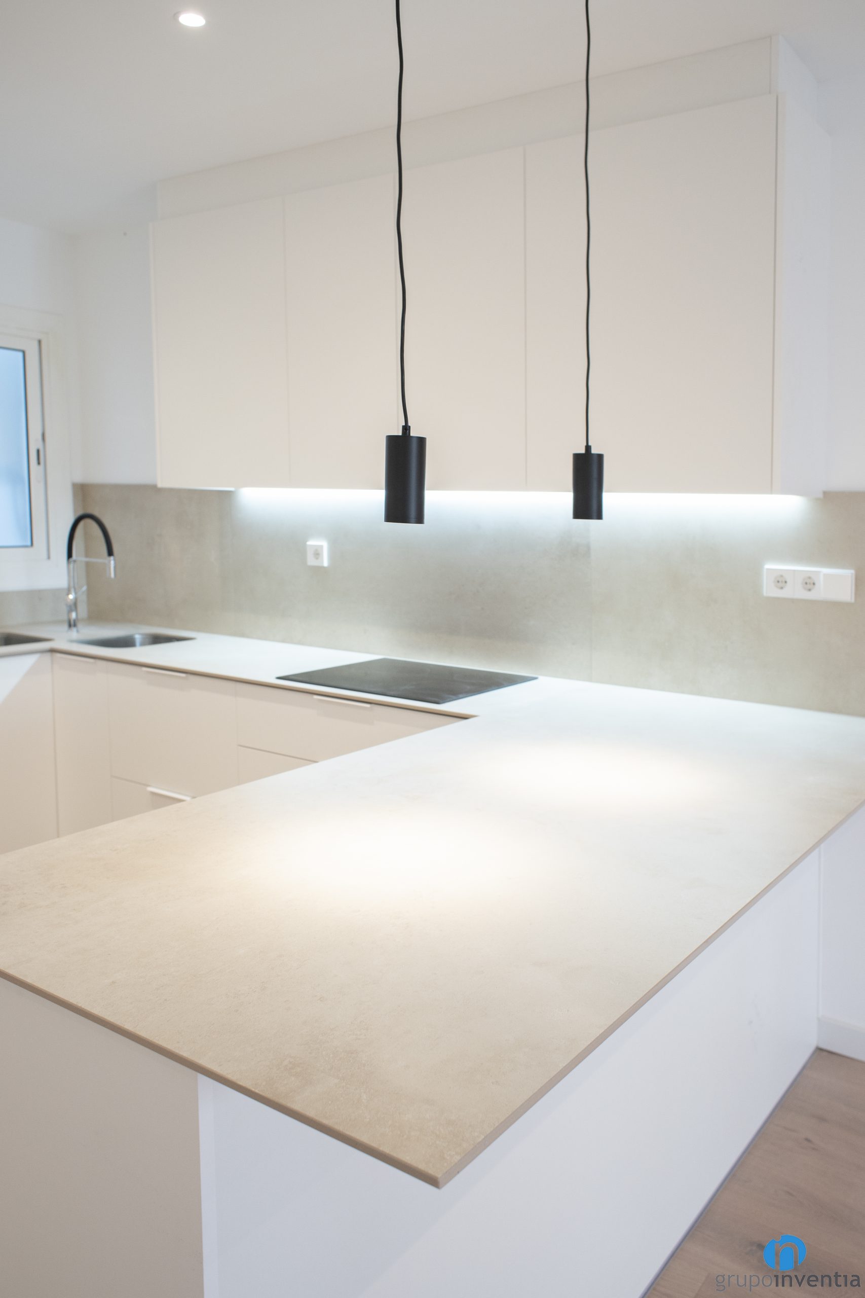 La nova cuina és oberta i està distribuïda en forma de U. Ofereix una mobilitat excel·lent i cada nou element està ubicat al lloc indicat per ser més funcional. Es tracta d´una reforma de cuina completa i que s’integra perfectament a la resta de la vivenda. A més, queda connectada a les zones annexes de manera molt fluida.