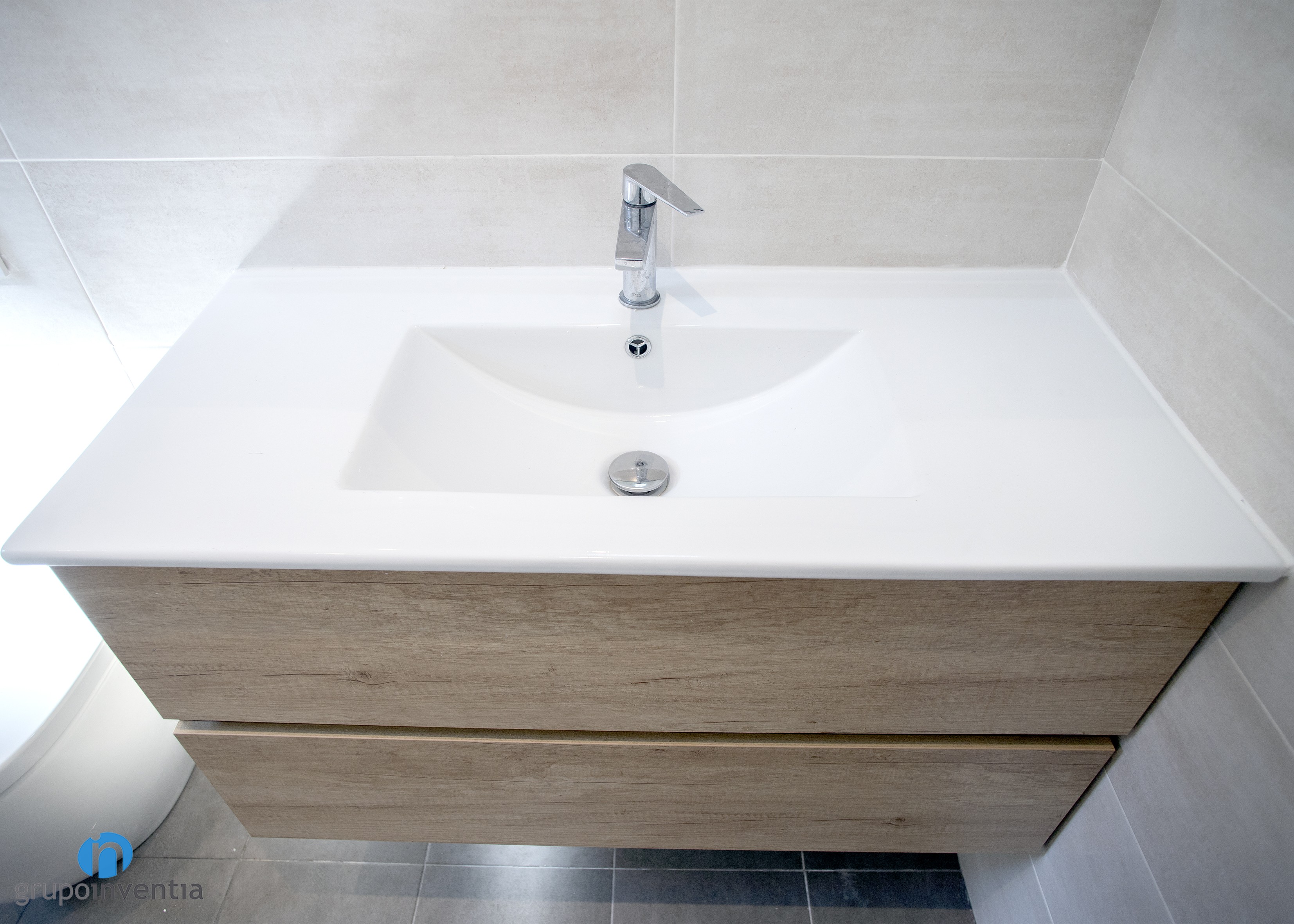 Quant a l’equipament sanitari, es tracta d’un bany de tres peces compost per un lavabo amb moble d’emmagatzematge incorporat, un vàter i una àmplia dutxa. En definitiva, un equip que ofereix les millors prestacions i funcionalitat en el seu ús.