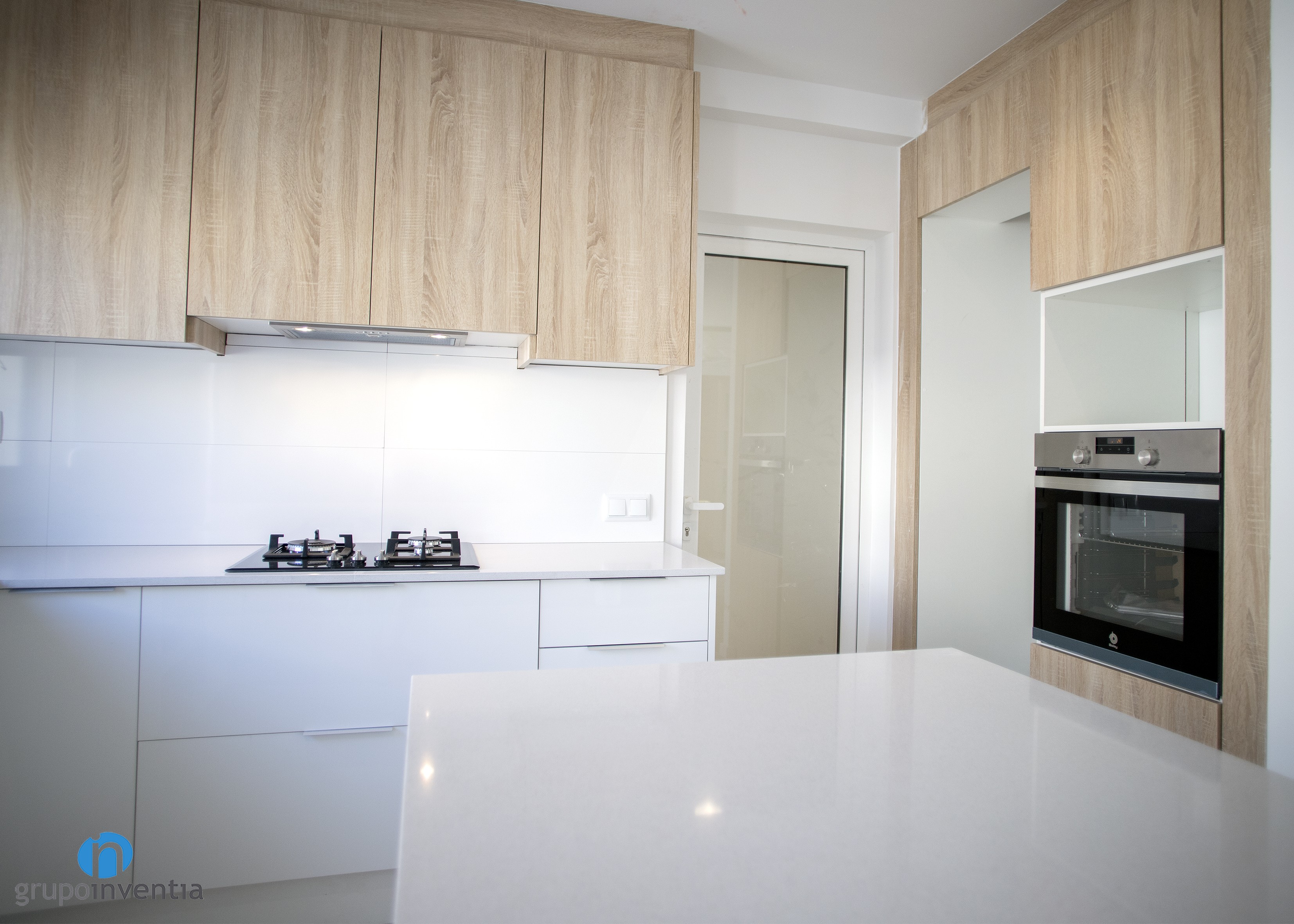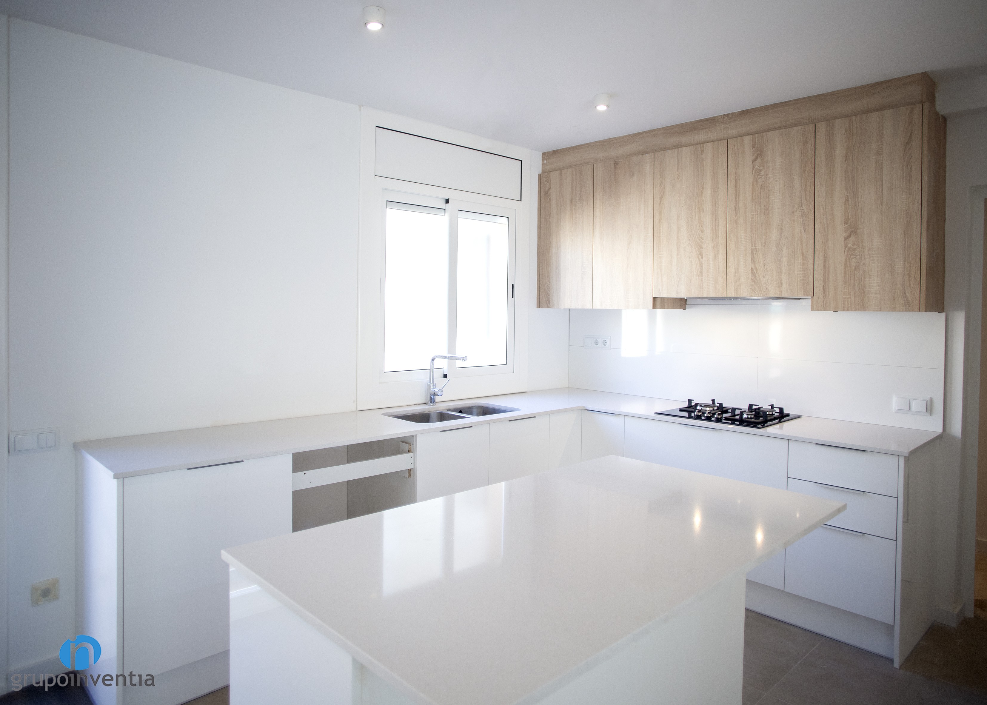 La cuina és oberta, està distribuïda en forma de L i compta amb una illa de cuina. El moble de cuina comença a la part dreta oferint capacitat d’emmagatzematge tant en la part inferior com superior d’un taulell que es va equipar amb una cuina de tres fogons. Aquesta torça cap a l’esquerra per donar pas a un segon tram que, a més d’oferir una àmplia superfície de suport i de treball, es va equipar amb una pica doble. Aquest es situa sota d’una finestra que inunda de llum natural totes les nits.