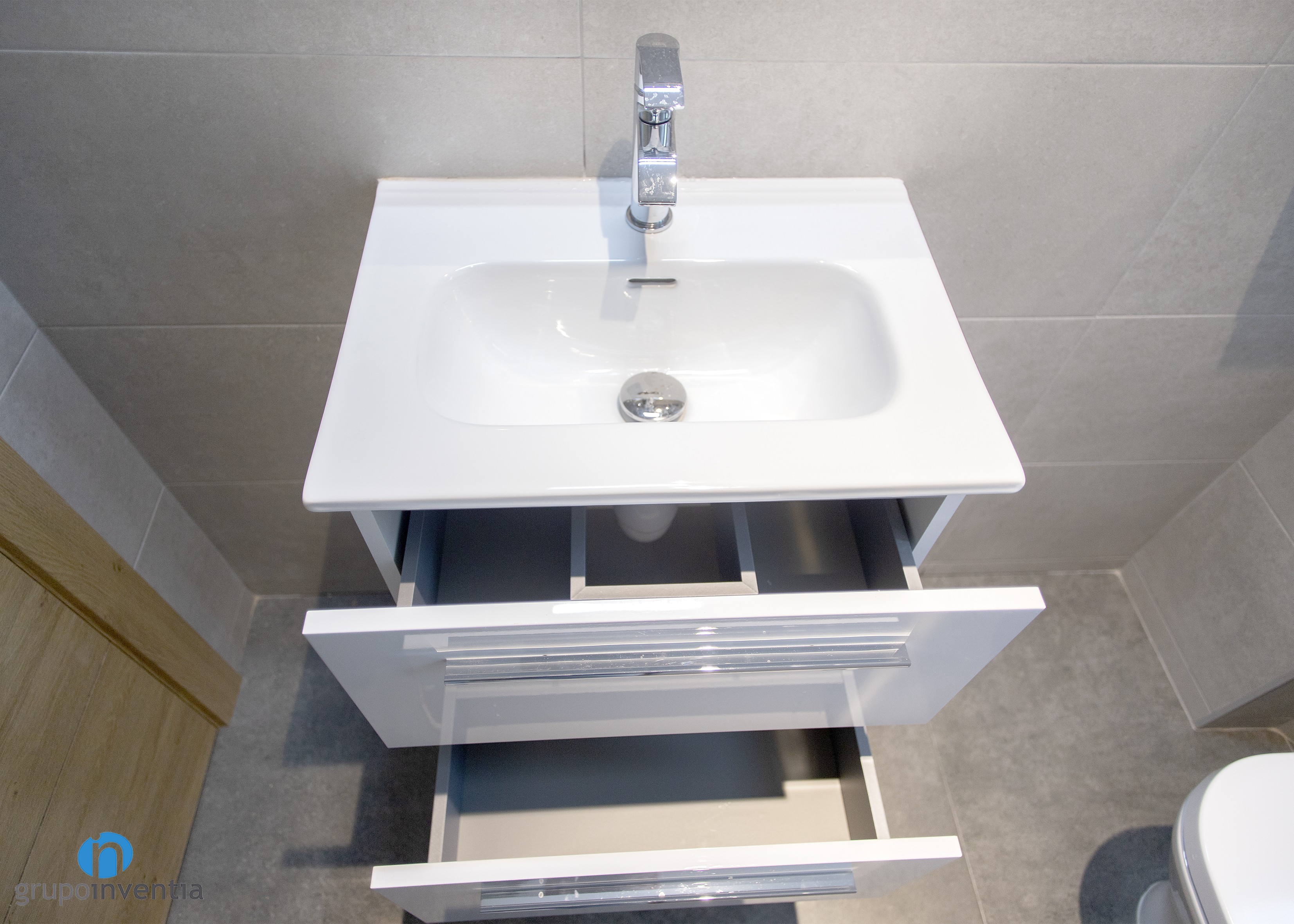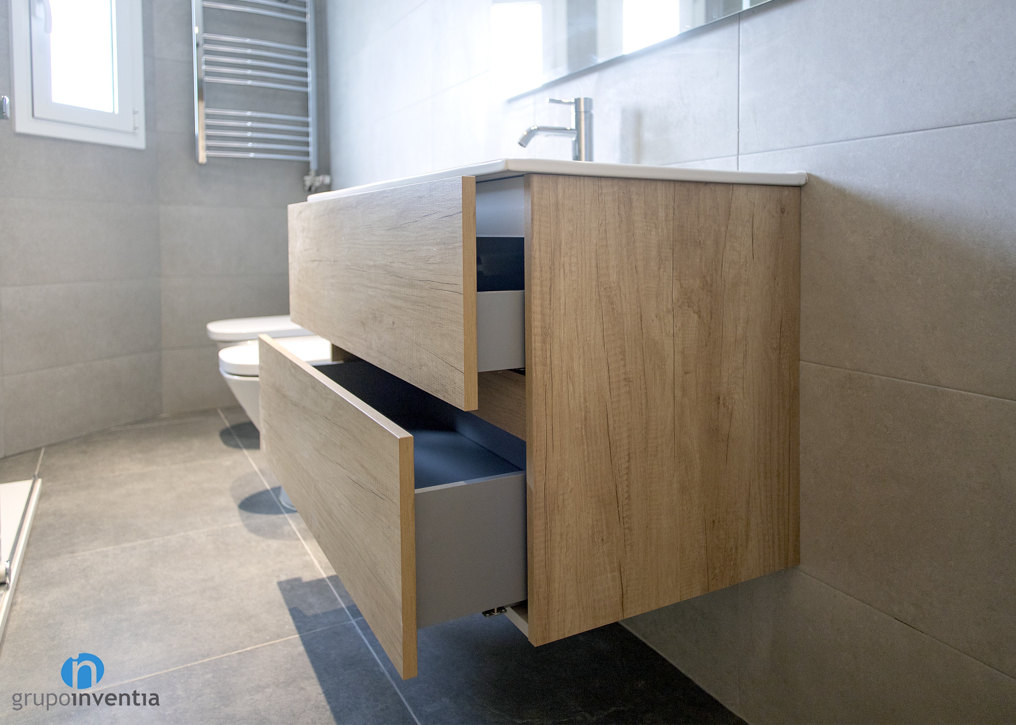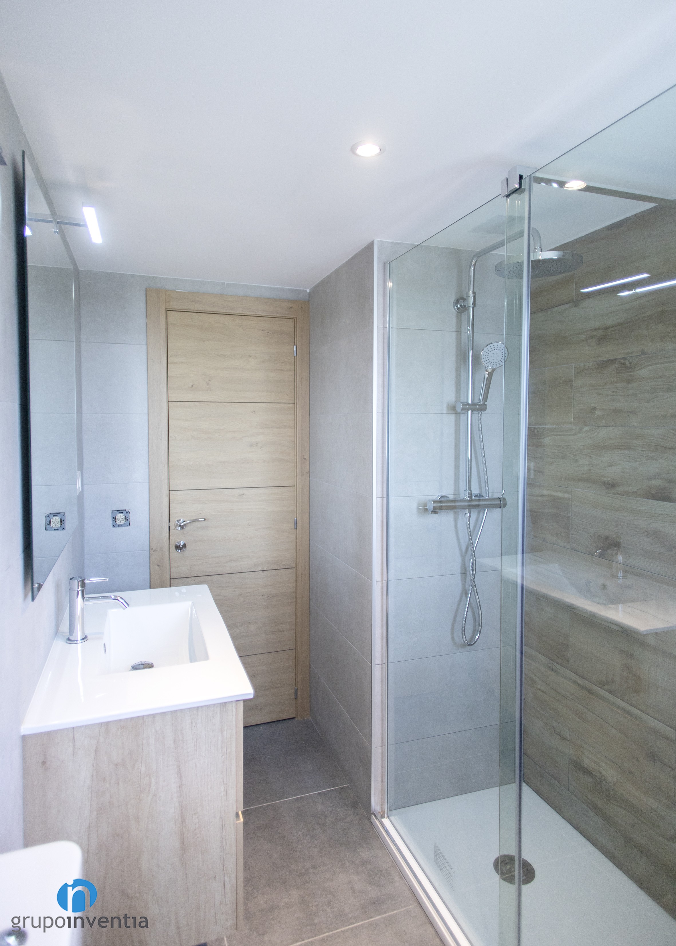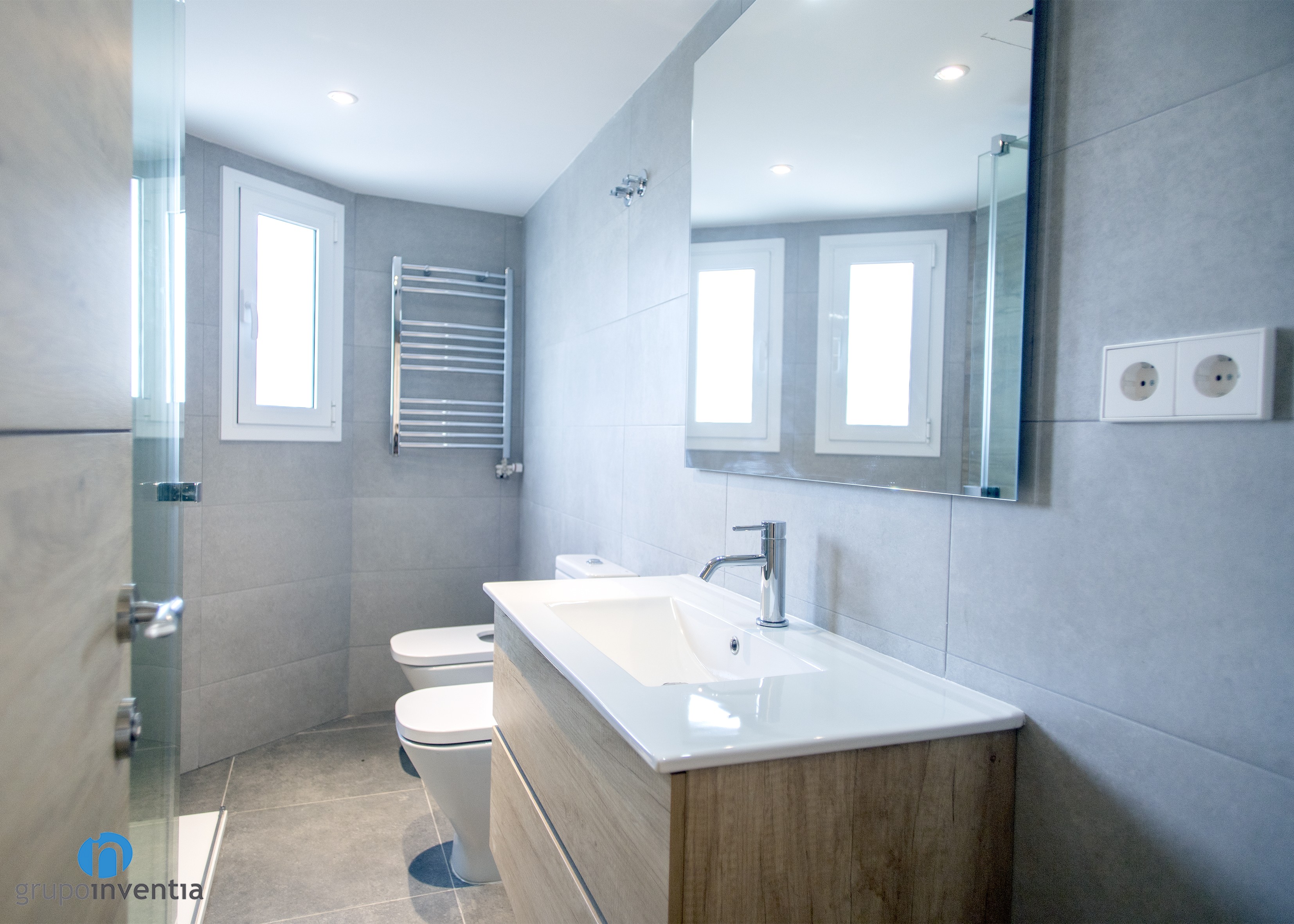En aquest nou treball de Grupo Inventia també ens vam encarregar de dur a terme la reforma de banys. Es tracta d’un bany principal i un de cortesia i tots dos estan equipats per complet. A cada reforma de bany es va instal·lar un lavabo amb moble d’emmagatzematge incorporat, un vàter i una dutxa protegida amb mampares. A més, a la cambra de bany principal es va afegir un bidet.