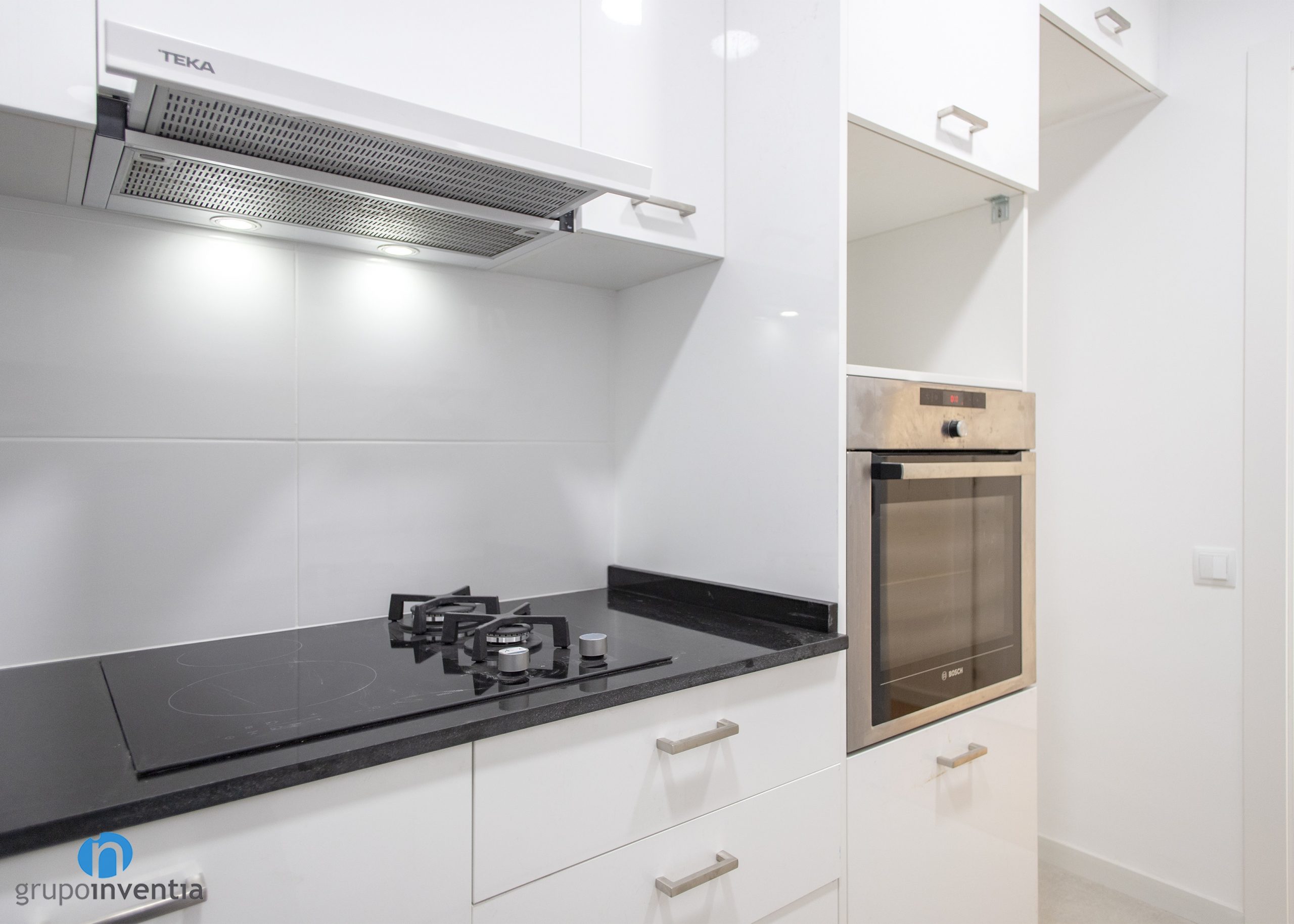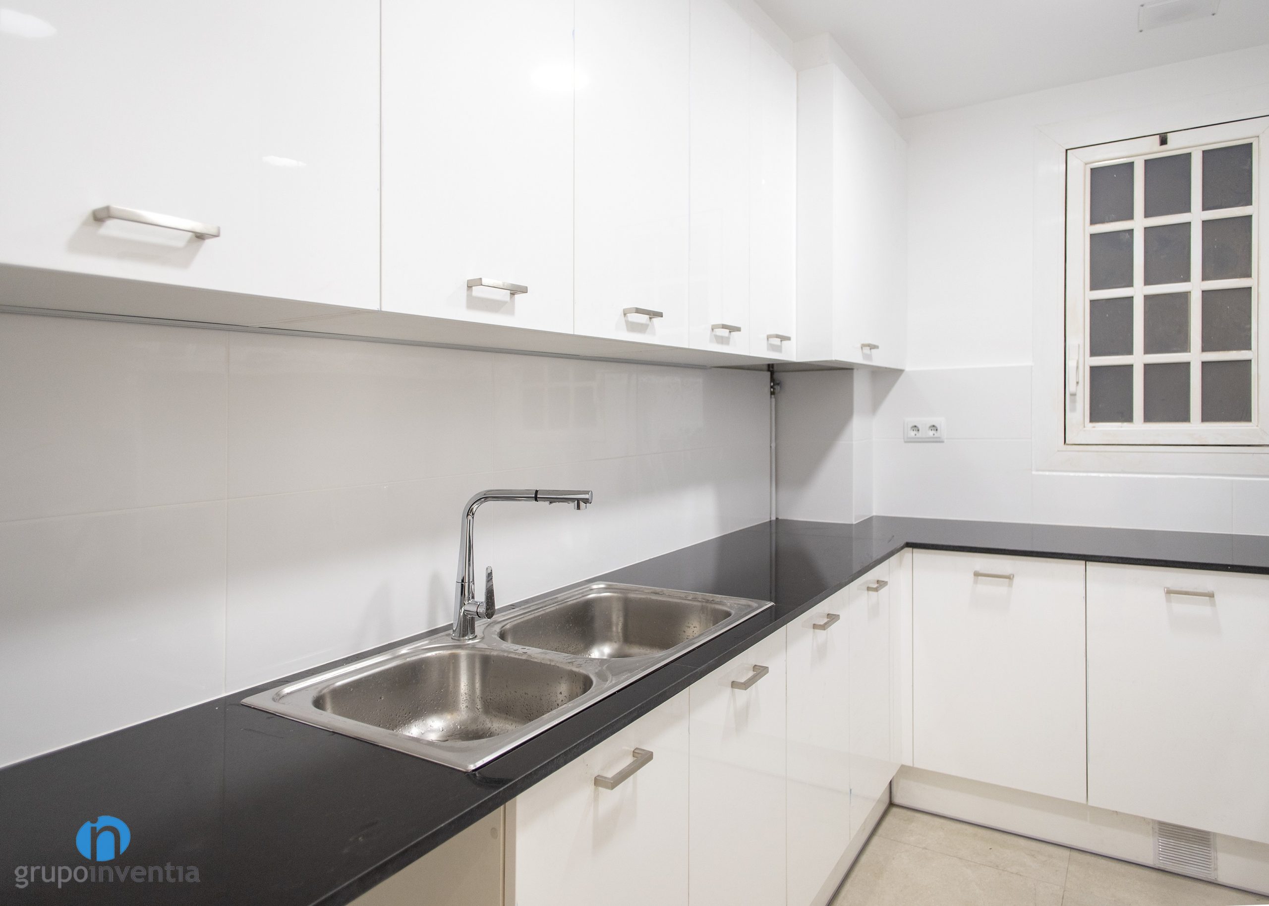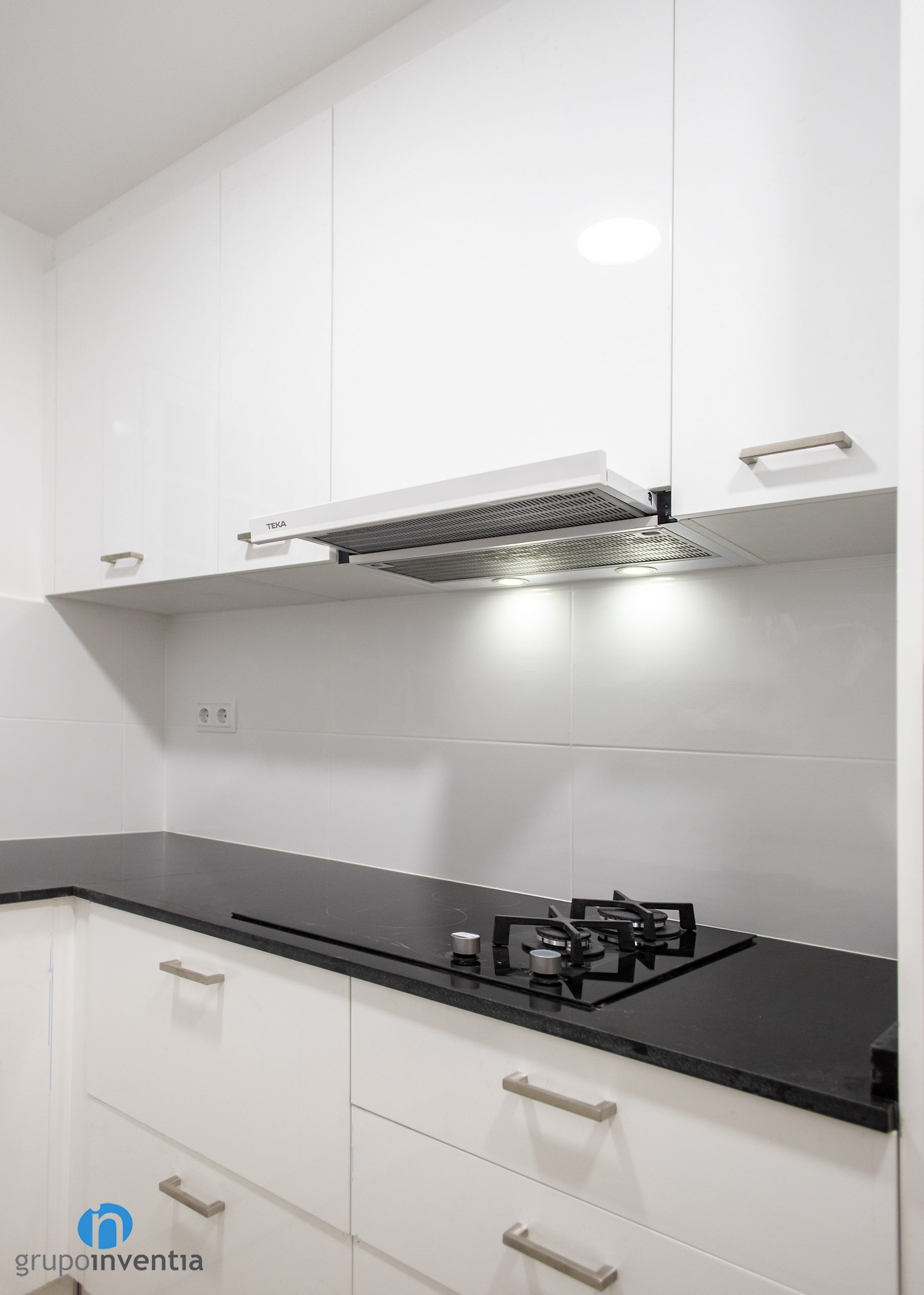La cuina és una de les parts més importants de qualsevol casa i a Grupo Inventia ens hem encarregat d’aconseguir un espai equipat i funcional. S’ha utilitzat una distribució de cuina en forma d’U, aportant molta mobilitat a l’espai i dotant-lo d’una bona capacitat d’emmagatzematge. Tant en la part inferior com superior de les taulells s’han col·locat diversos calaixos i armaris.