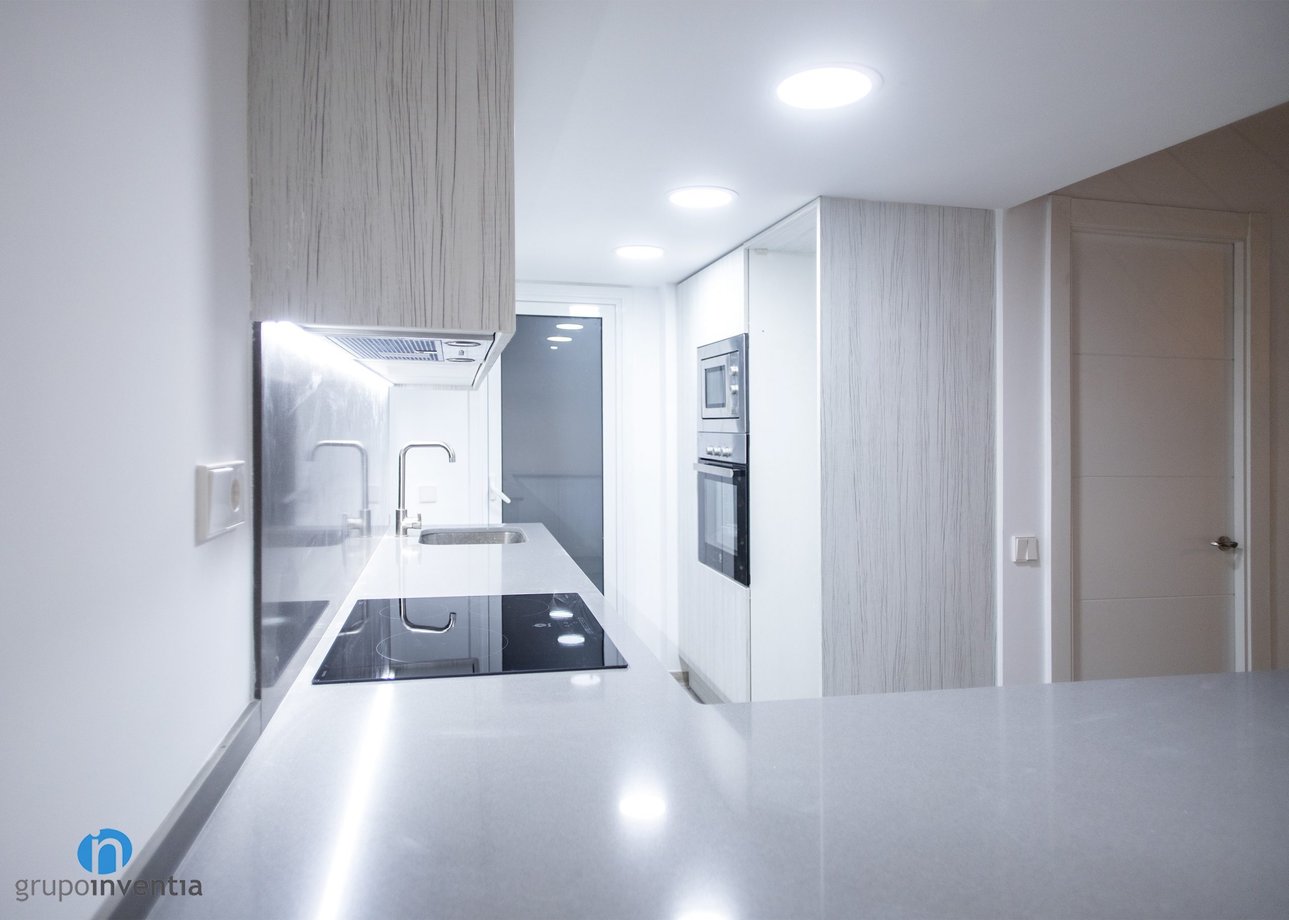 Com s’ha esmentat, la cuina és oberta i compta amb una ampli taulell de cuina en forma de L. Ofereix una àmplia superfície de suport i de treball i està equipat amb una placa vitroceràmica i una pica. Tant en la seva zona inferior com superior compta amb diversos calaixos i armaris que ofereixen una àmplia capacitat d’emmagatzematge.