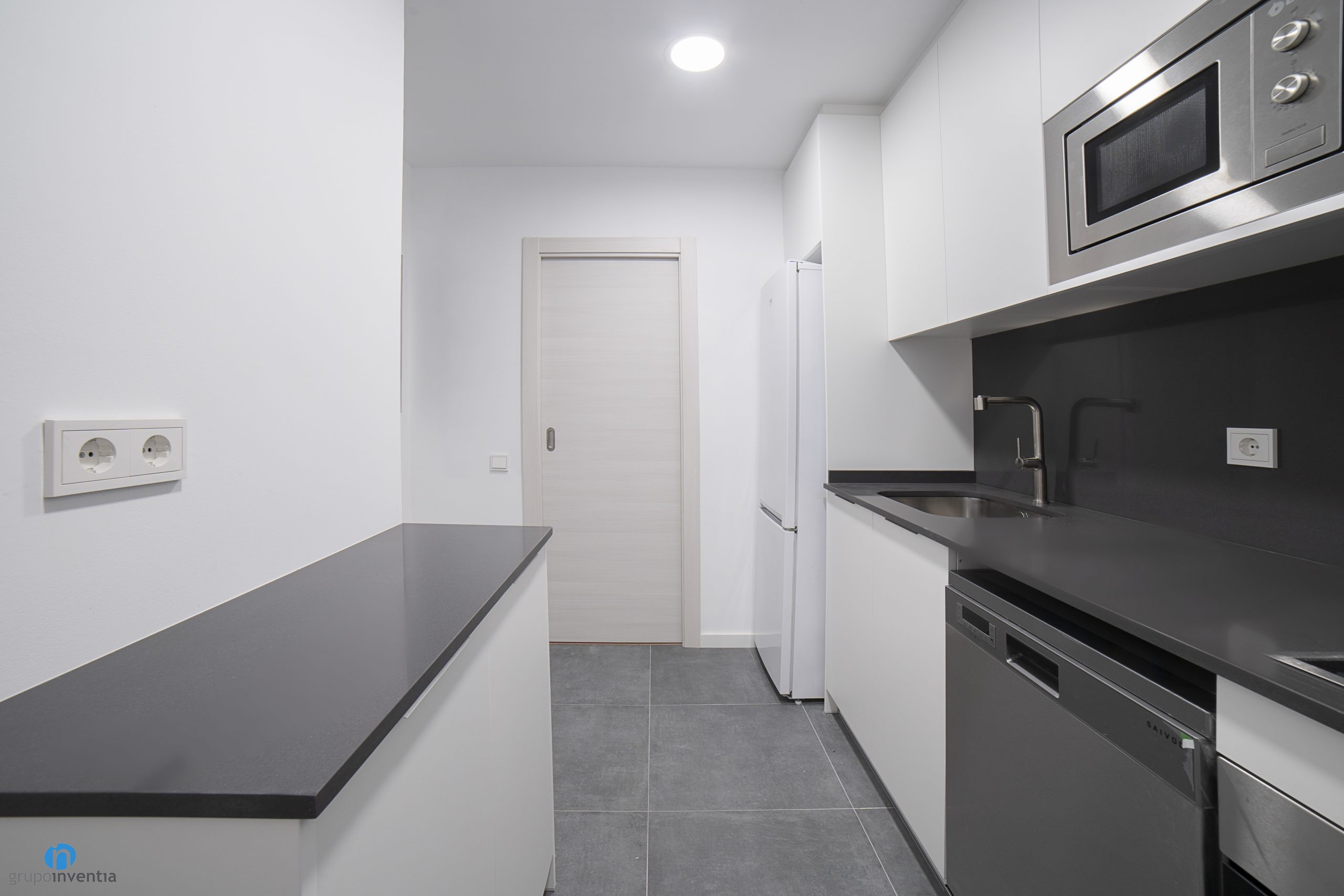 Un dels espais que ens hem encarregat de renovar a aquest pis de Barcelona és la cuina. Se situa en una estança pròpia i independent, encara que llueix un disseny similar al de la resta de la vivenda. Encara que hi hagi separació despais és recomanable que es mantingui un interiorisme homogeni entre ells.