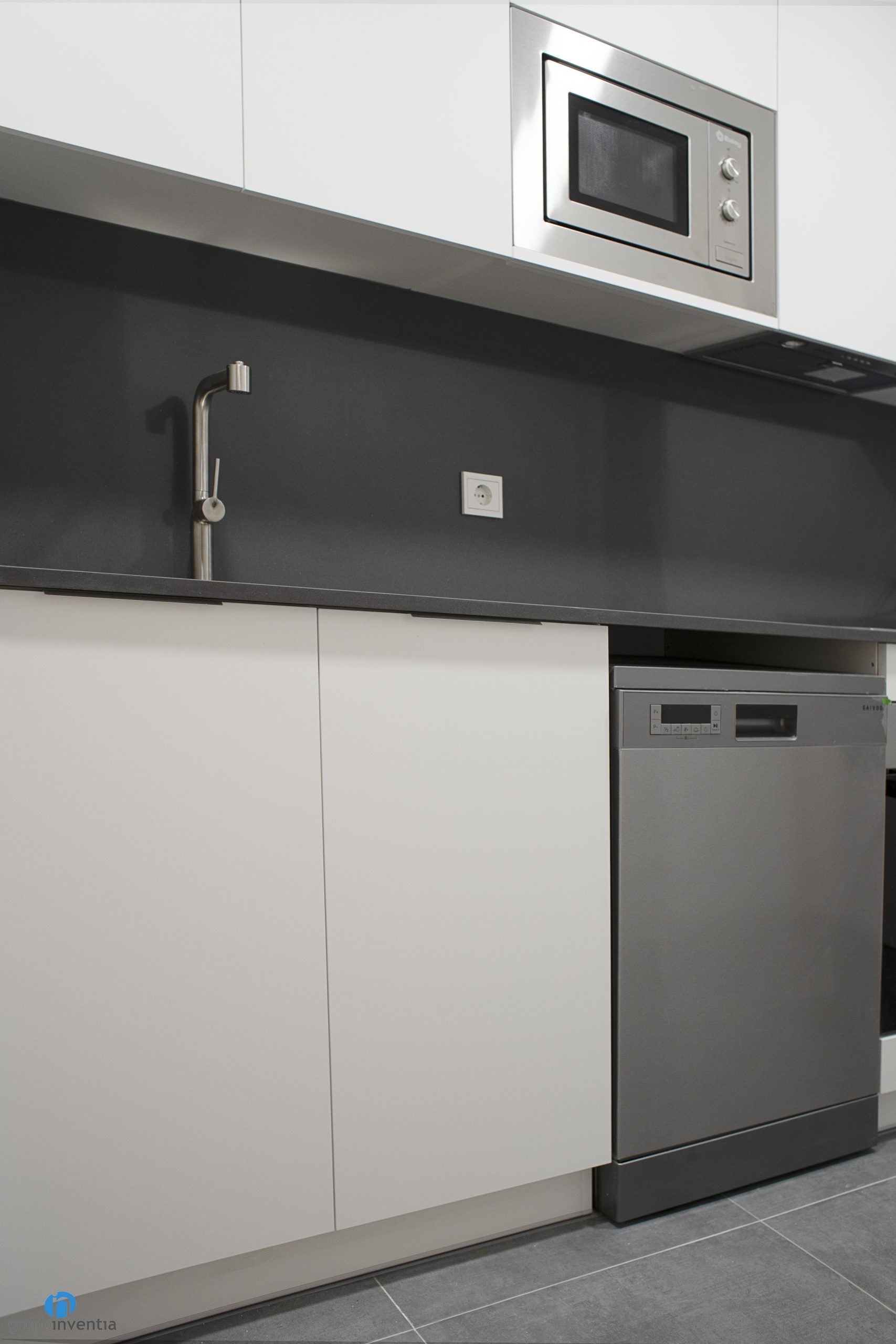 Tot plegat embolicat en un disseny de cuina contemporani amb colors neutres. Els armaris són de color blanc, mentre que els taulells i el paviment es presenten en color gris. Es tracta d´una combinació molt efectiva per a la nova imatge d´una cuina moderna.