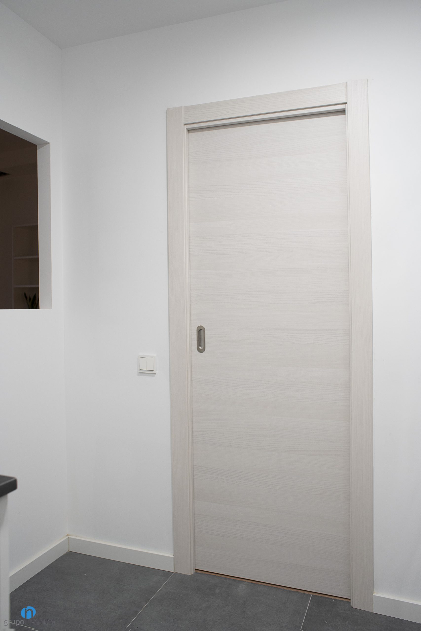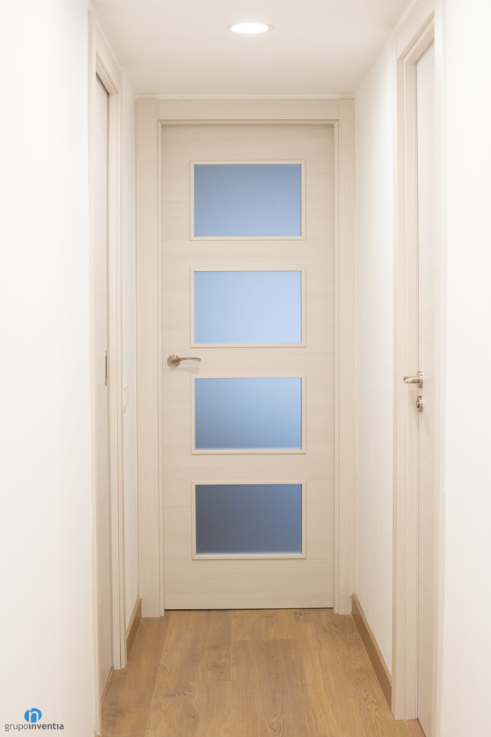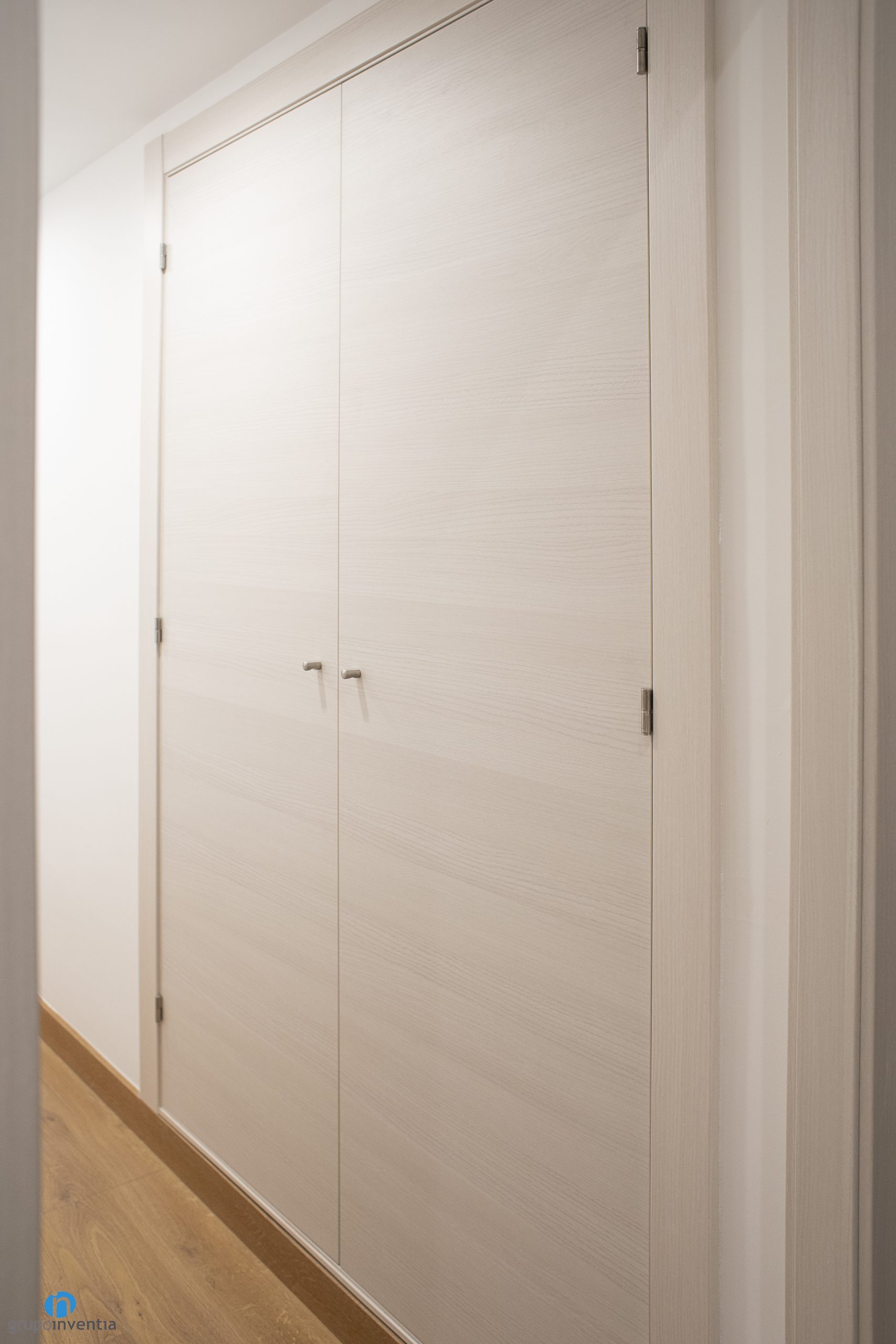 Alhora també s’han canviat totes les portes. Ja siguin amb frontissa o portes corredisses es presenten en un suau acabat de fusta. Per al nou paviment s’ha apostat per un terra de parquet amb tons mitjans de fusta. En línies generals una imatge ideal per generar la calidesa que es presumeix a una llar.
