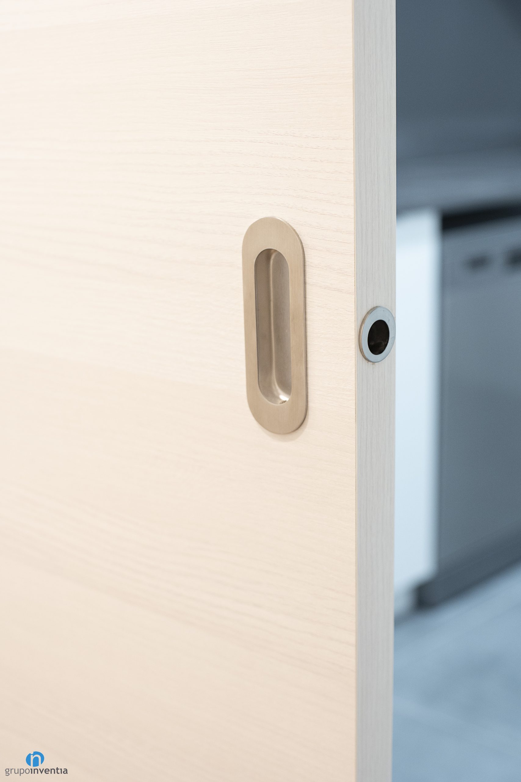 Donada l’àmplia superfície de què es disposa s’ha utilitzat una distribució de cuina a dos fronts. El costat dret ho ocupa una parra de cuina que funciona com a espai extra de suport i de treball. Alhora compta amb uns armaris a la part inferior que amplien la capacitat d’emmagatzematge a la cuina. Un altre element destacat en aquesta reforma de cuina és la porta corredissa de la entrada. D’aquesta manera s’aconsegueix aprofitar al màxim l’espai disponible a l’estança.