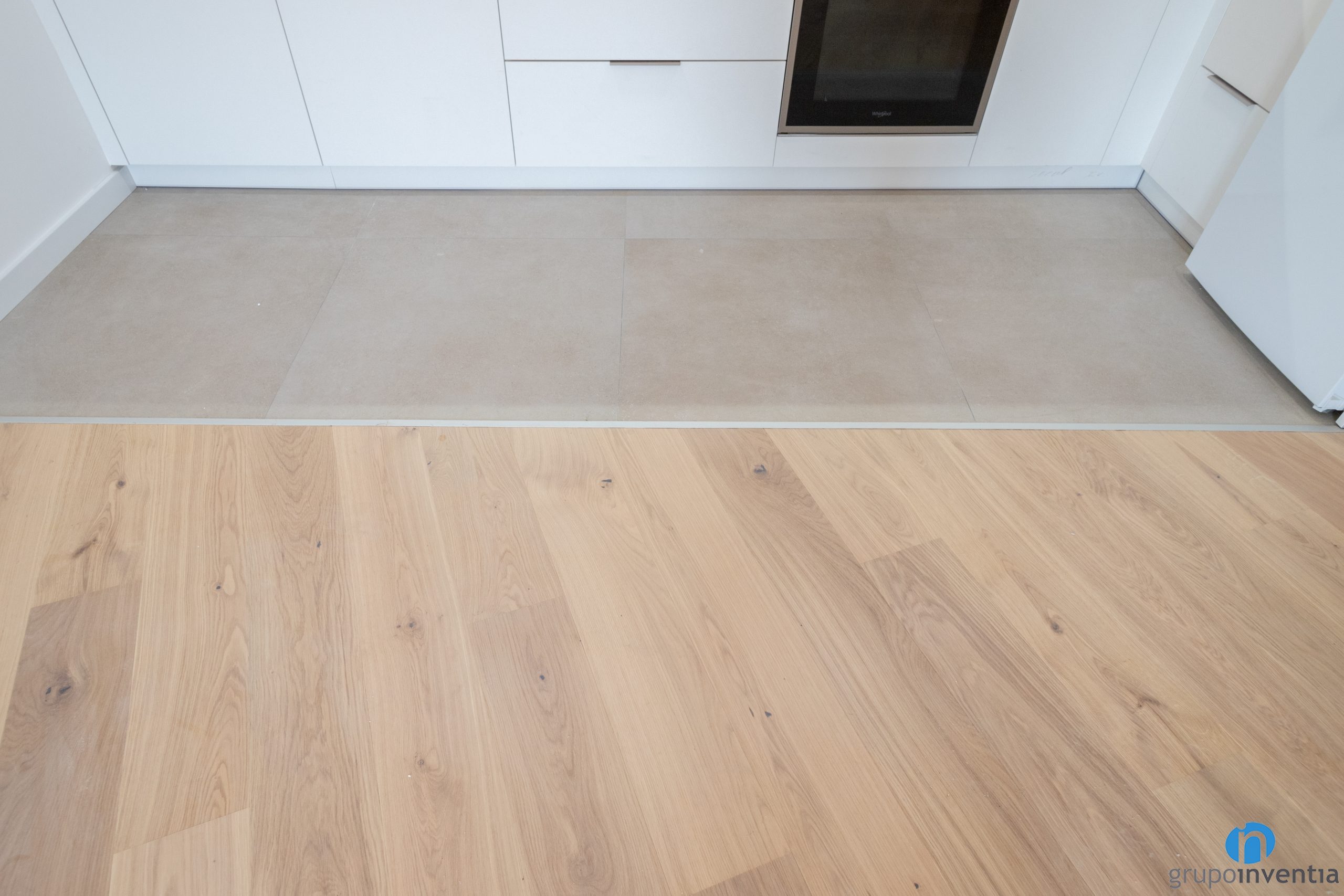 Per la seva banda, la nevera s’ha col·locat al costat dret i també queda integrada al mateix moble de cuina de color blanc. El disseny de la reforma de cuina encaixa amb la nova imatge global que s’ha aplicat a la vivenda. Es combina amb un taulell de color beix i un terra de gres de tonalitat grisa.