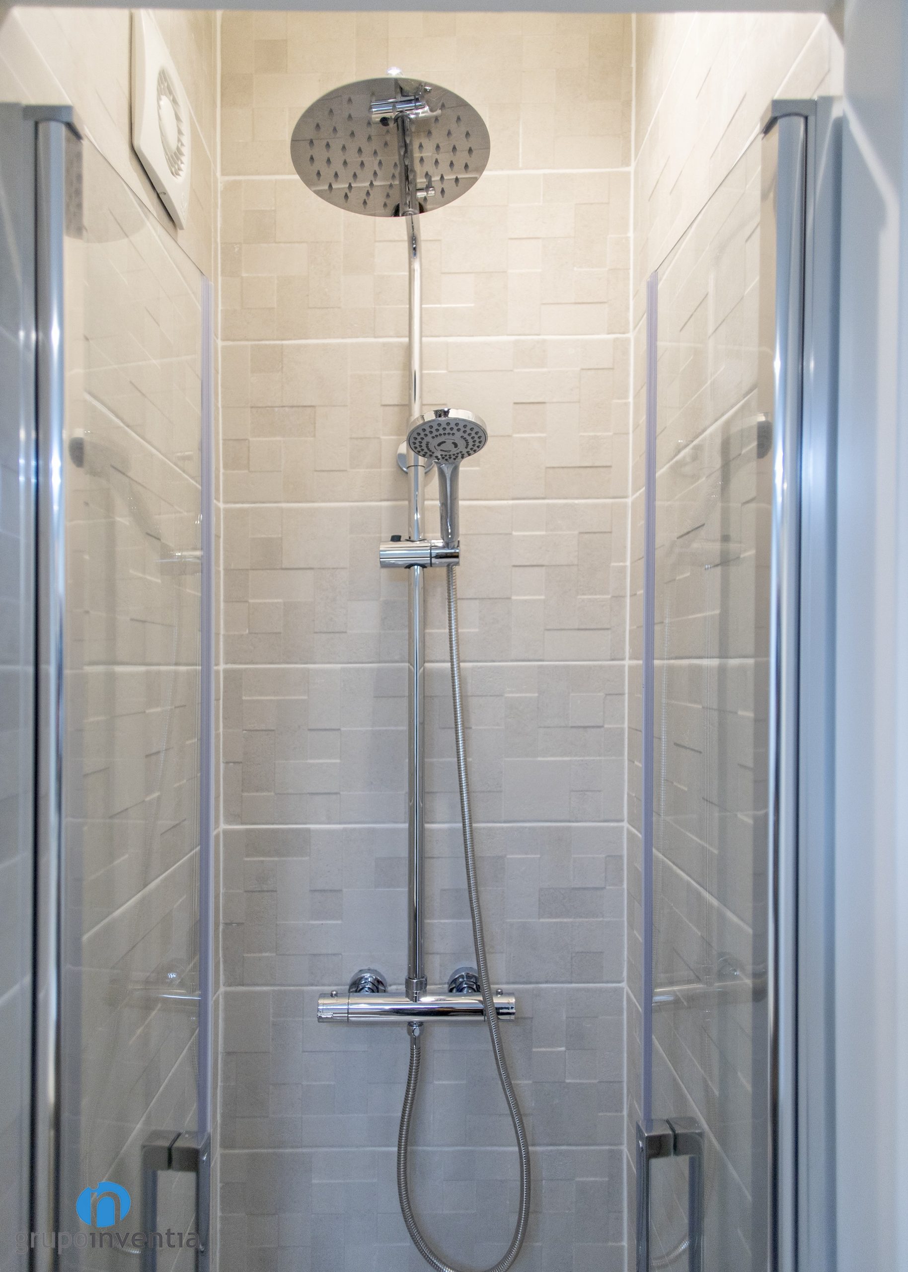 En ambdues reformes de bany s’ha optat per un equipament de tres peces. Un lavabo amb moble d’emmagatzematge, un vàter i una dutxa amb mampares de portes corredisses componen aquestes cambres de bany. Amb això les dues estances estan llisten per oferir les millors prestacions des del primer dia.