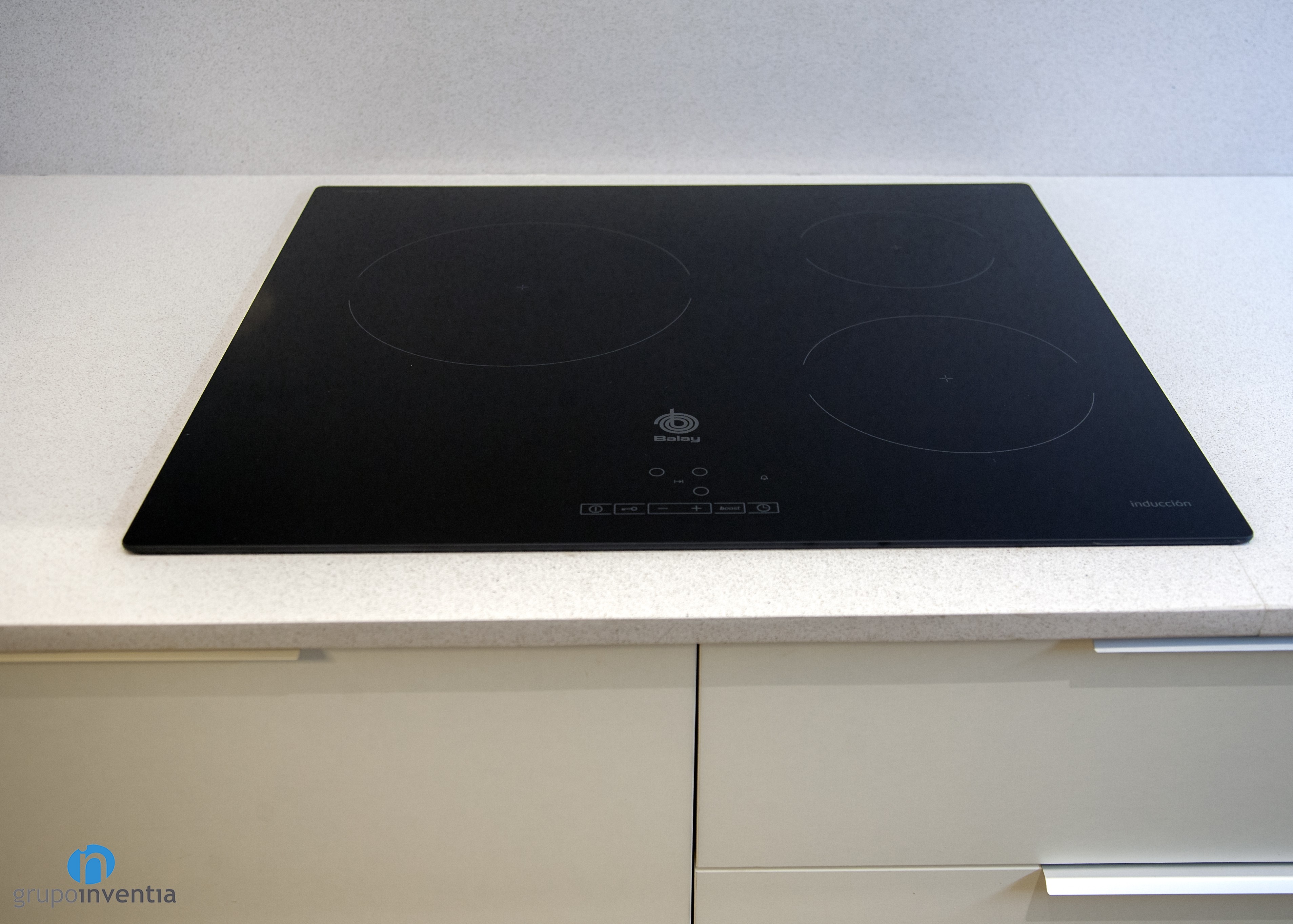 A l’extrem de l’esquerra es vann encastar els electrodomèstics, amb un buit a mida per a la nevera més el forn i el microones. Seguidament neix el primer tram de placa de cuina equipat amb una placa vitroceràmica. El taulell torça cap a la dreta per donar pas a un segon tram que compta amb una pica individual. Aquesta zona compta amb capacitat d’emmagatzematge tant en la part inferior com superior.