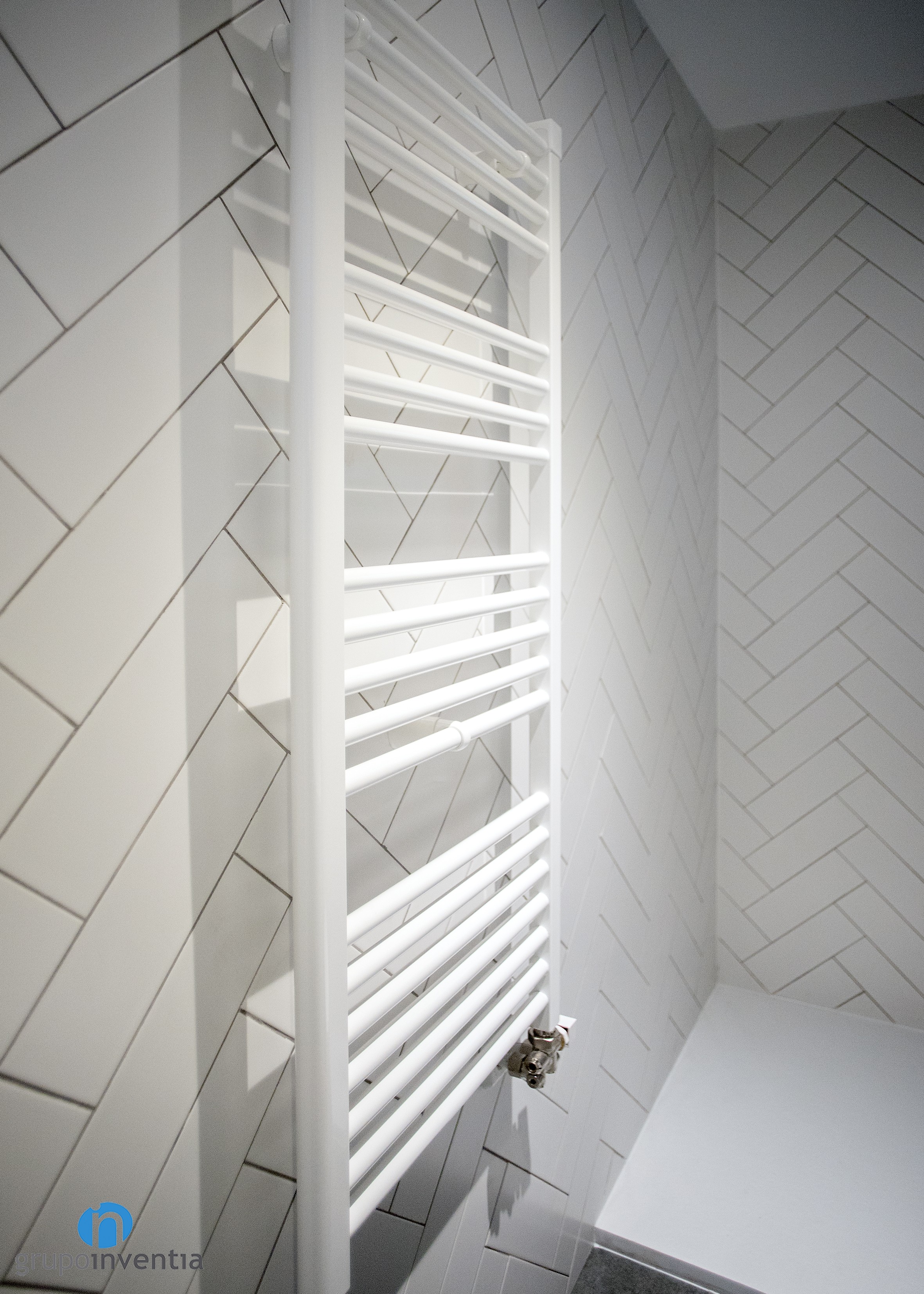 El treball d’interiorisme en aquesta reforma de bany és excel·lent i el resultat va ser molt satisfactori. Les parets es van enrajolar amb rajoles blanques col·locades en forma diagonal, a més d’utilitzar-se altres de color gris a la paret de la dutxa. Amb això es va aconseguir una estança d’ambient acollidor i d’imatge actual.