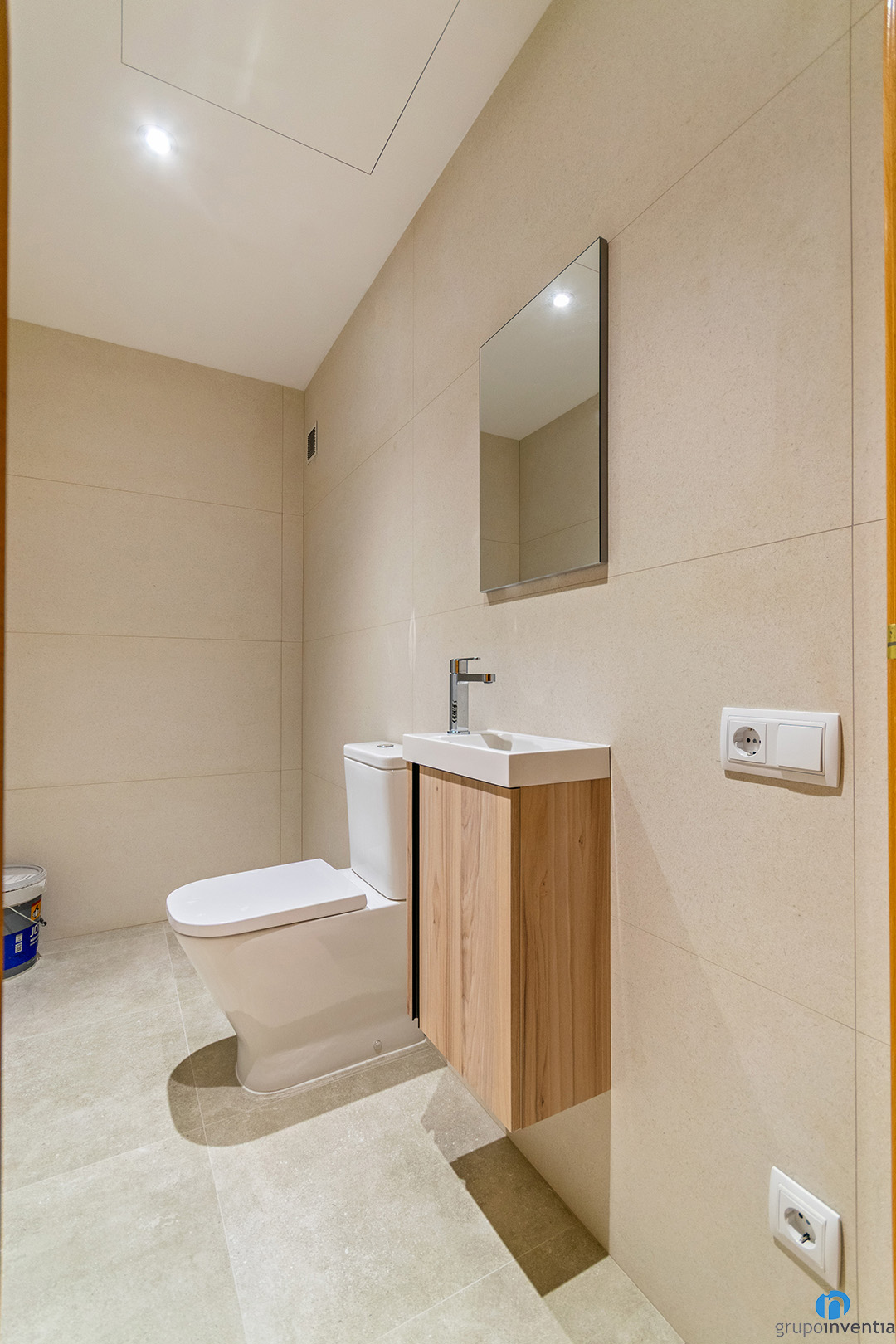 La reforma integral a Barcelona també ha inclòs la renovació dels espais de bany. L’habitatge disposa d’un bany complet i d’un lavabo que, a més, funciona com a zona de bugaderia. Ambdós espais s’han dissenyat prioritzant la comoditat, la funcionalitat i una estètica actual.