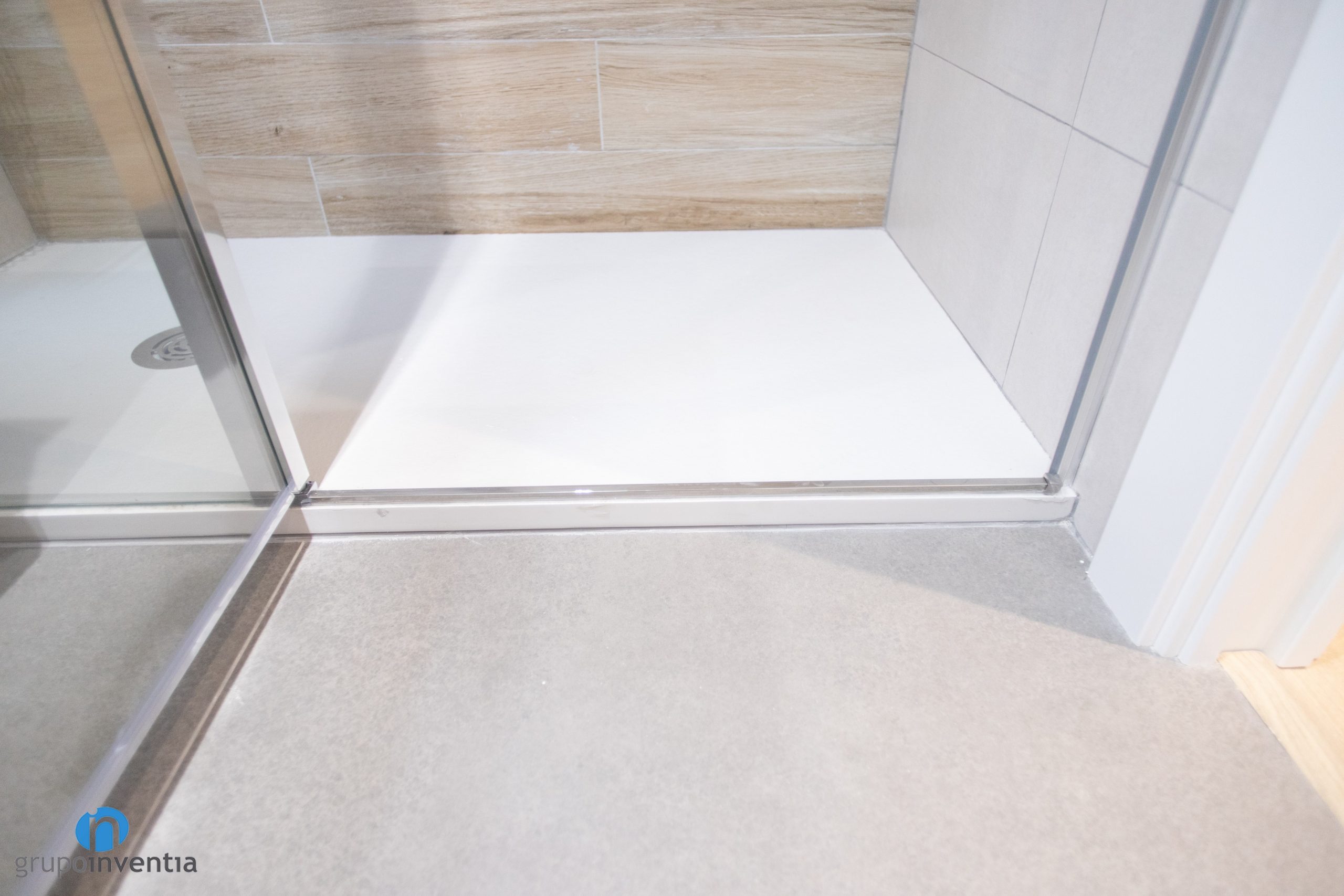 Altres espais renovats en aquesta reforma integral a Barcelona són les cambres de bany. Ara els dues compten amb un disseny renovat i molt adequat per a unes estances d’ús diari. En ambdues reformes de bany les parets s’han enrajolat amb rajoles beige i s’ha aconseguit un ambient fresc i agradable. Al bany principal la paret de la dutxa s’ha enrajolat amb rajoles imitació fusta.