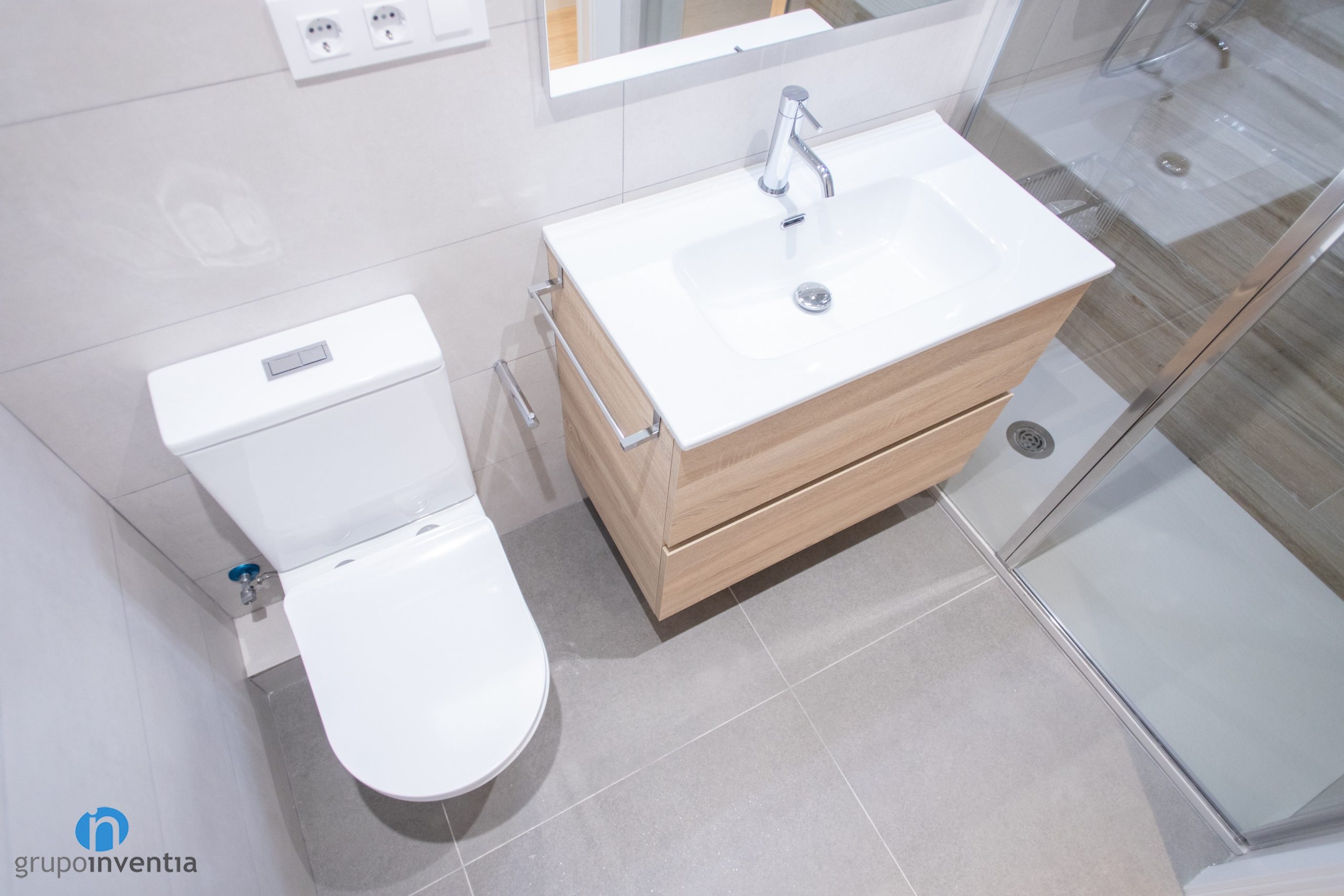 S’ha apostat per un equipament sanitari modern i funcional. Disposen de lavabo amb moble de bany incorporat i un vàter. En el cas del bany principal també s’ha renovat el citat plat de dutxa que queda protegit amb mampares de portes corredisses. El bany de cortesia s’ha pensat com un espai extra d’higiene diària.