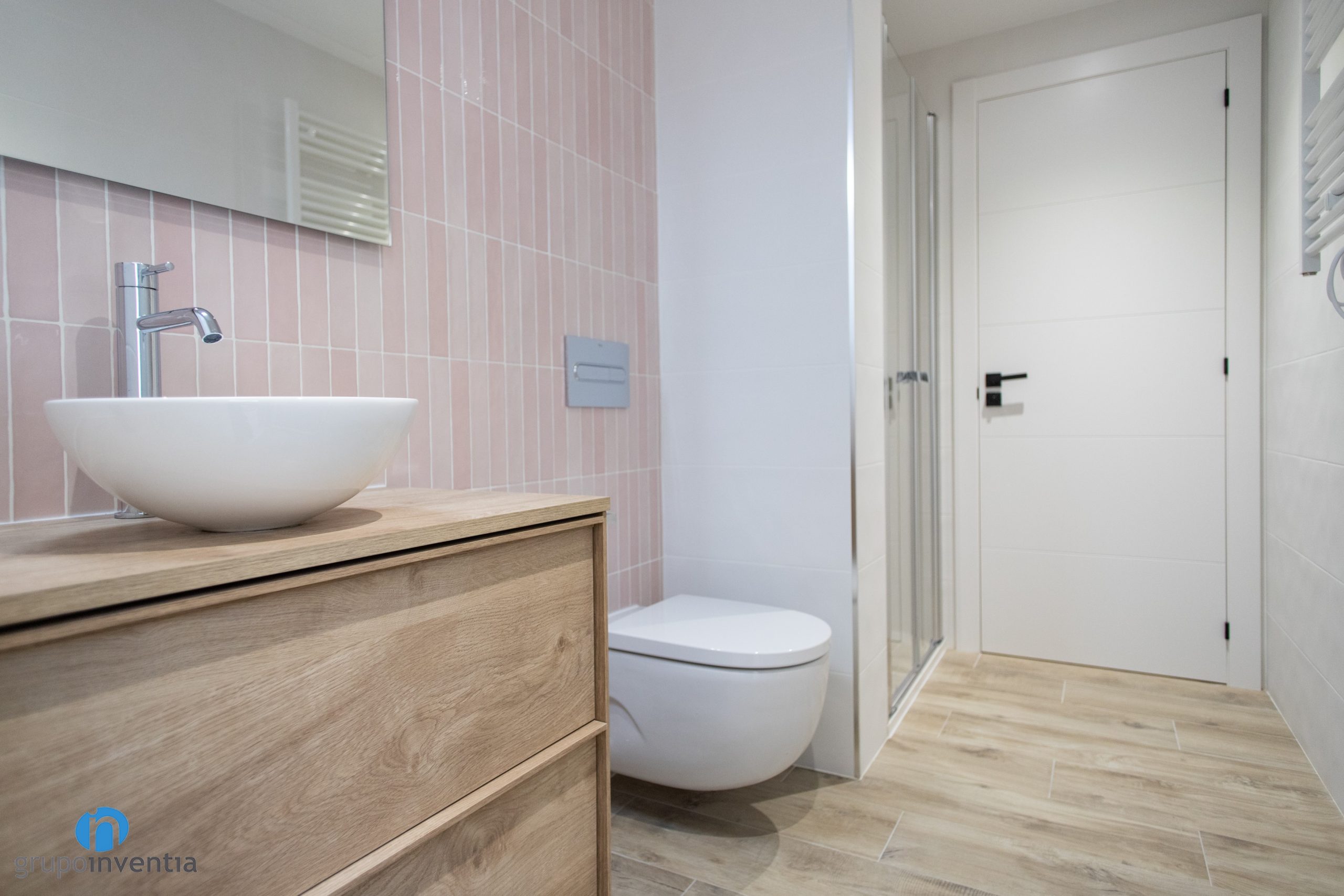 En aquesta reforma integral també s’ha realitzat una completa renovació de quarts de bany. Ara tant el bany suite com el de cortesia compten amb un equipament sanitari complet i funcional. Cada cambra de bany s’ha equipat amb un lavabo amb moble d’emmagatzematge incorporat, un vàter flotant i una dutxa protegida amb mampares de portes corredisses.