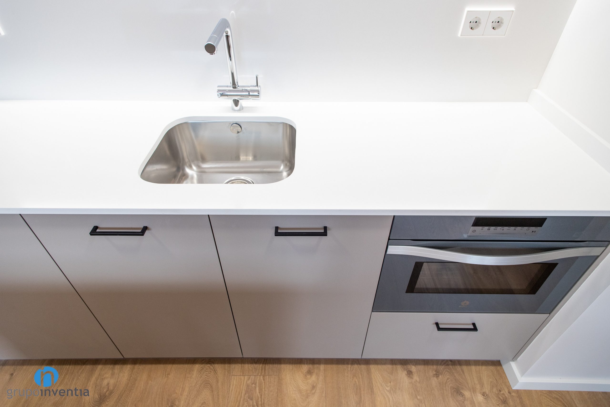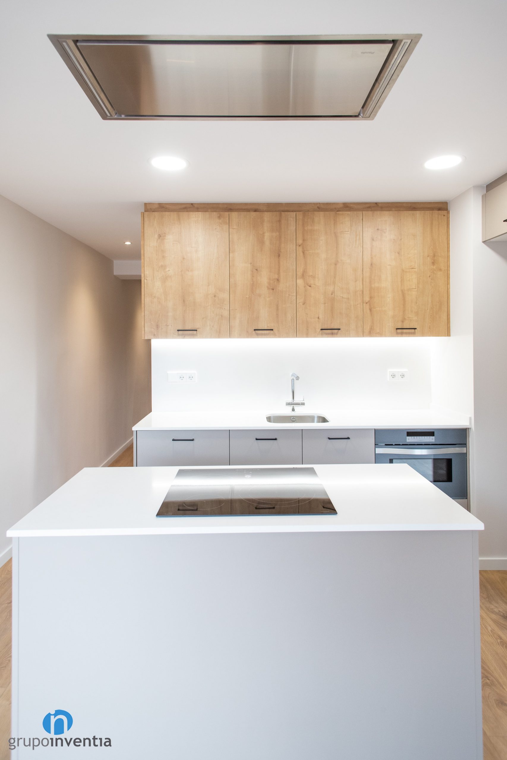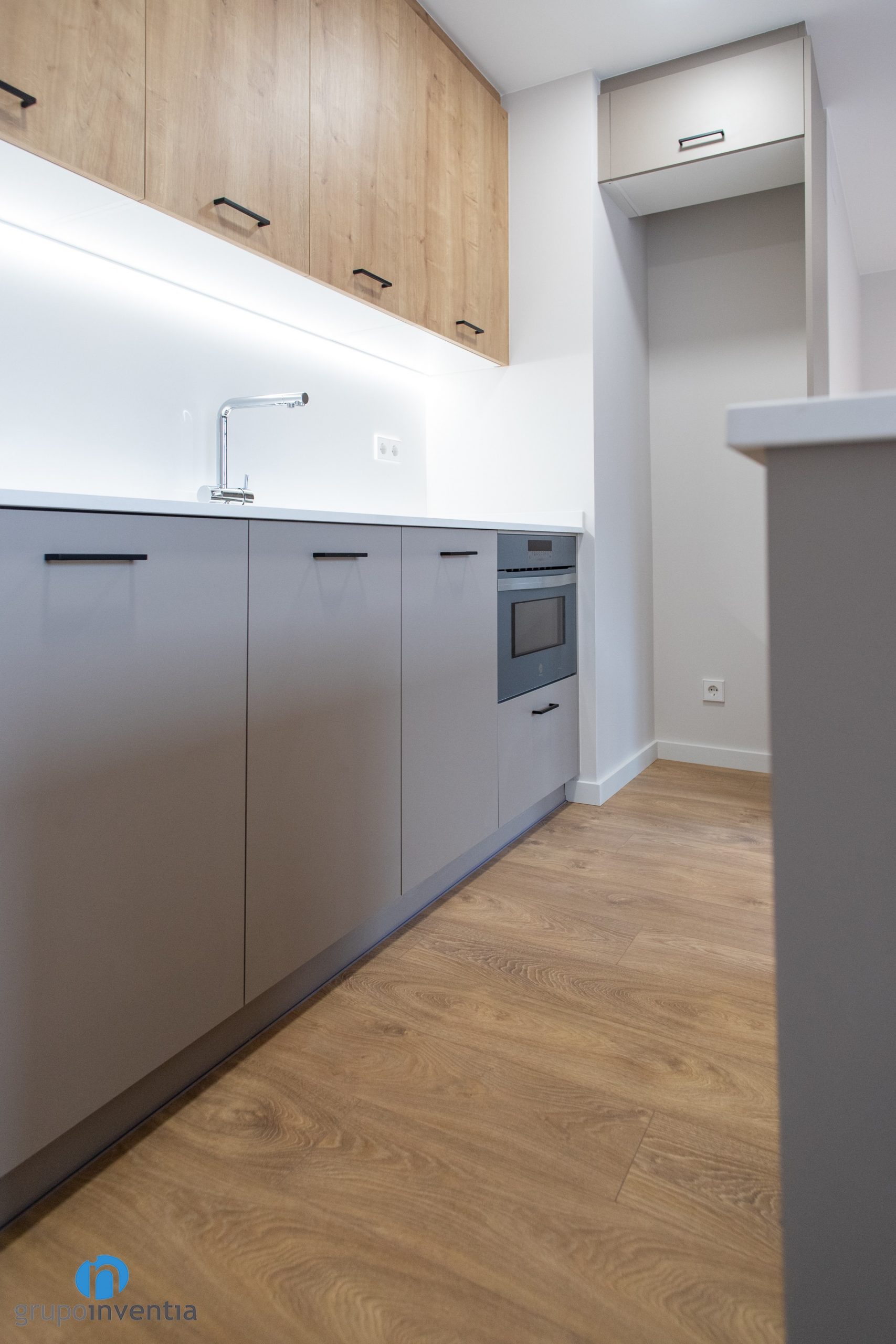 S’han col·locat calaixos i armaris per a l’emmagatzematge tant en la seva zona inferior com superior. En la seva part baixa també s’han integrat al rentavaixelles i el forn. A la part dreta s’ha disposat un buit a mida per posar la nevera. En línies generals es tracta d’una cuina molt funcional i llista per oferir les millors prestacions.