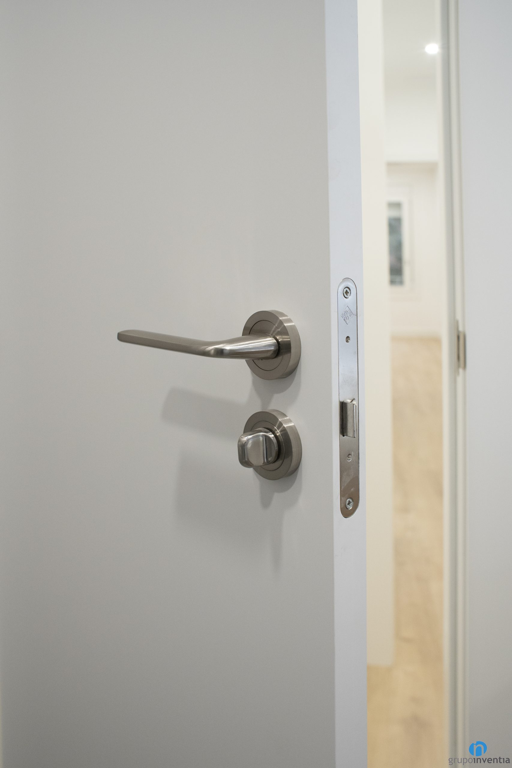 Les parets s’han pintat de color blanc, ideal perquè la llum flueixi correctament a tots els racons. De la mateixa manera, hem col·locat noves portes de color blanc, acompanyades per marcs i sòcols també en blanc. Ara les finestres noves són de fusteria d’alumini amb doble vidre.