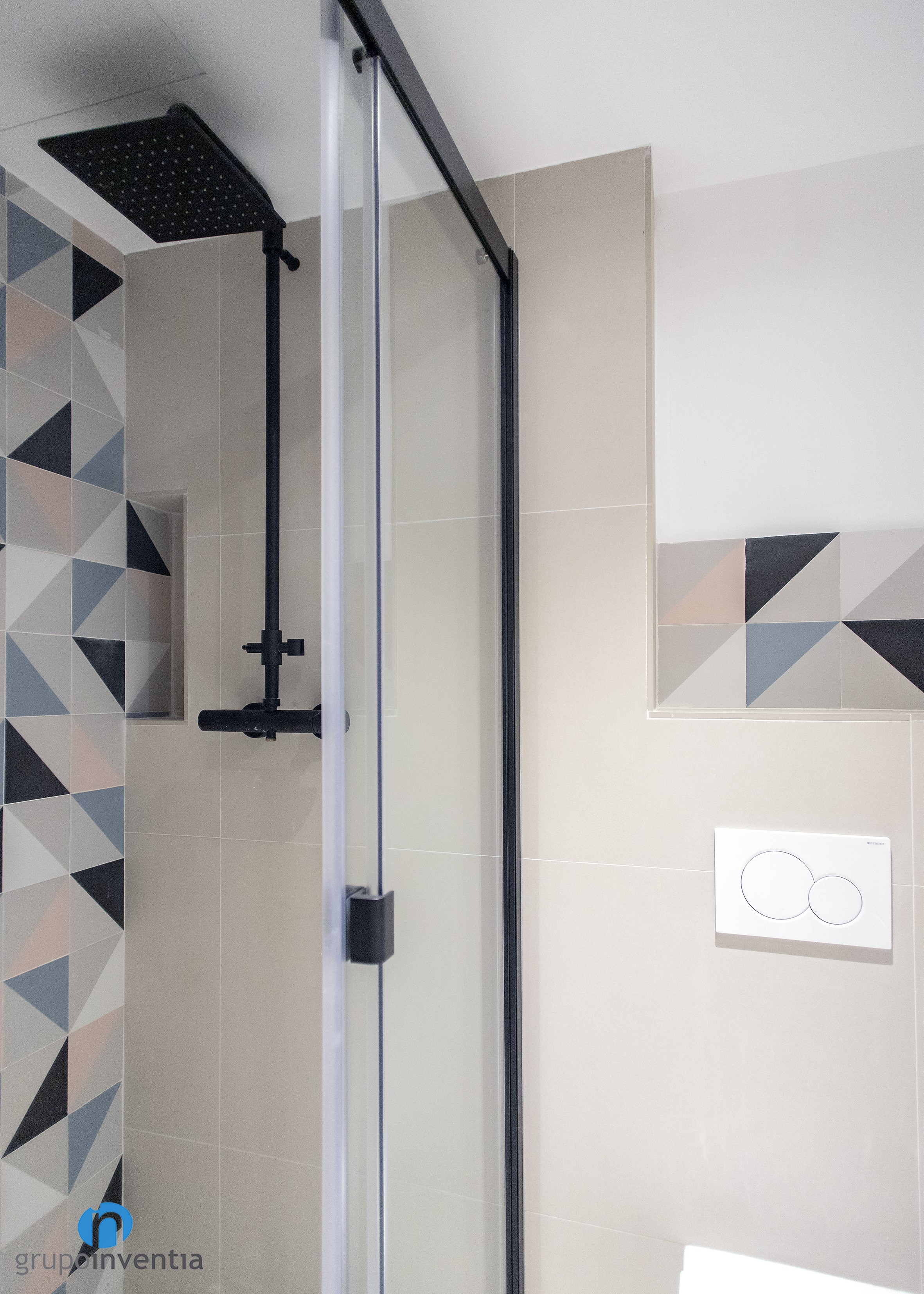 La cambra de bany també es va modernitzar tant en la seva imatge com en el seu equipament sanitari. Després dels treballs de reforma l’estança està llesta per oferir les millors prestacions i funcionalitat en el seu ús. Per això compta amb un lavabo amb moble d’emmagatzematge incorporat, un vàter suspès i una dutxa protegida amb mampares de portes corredisses.