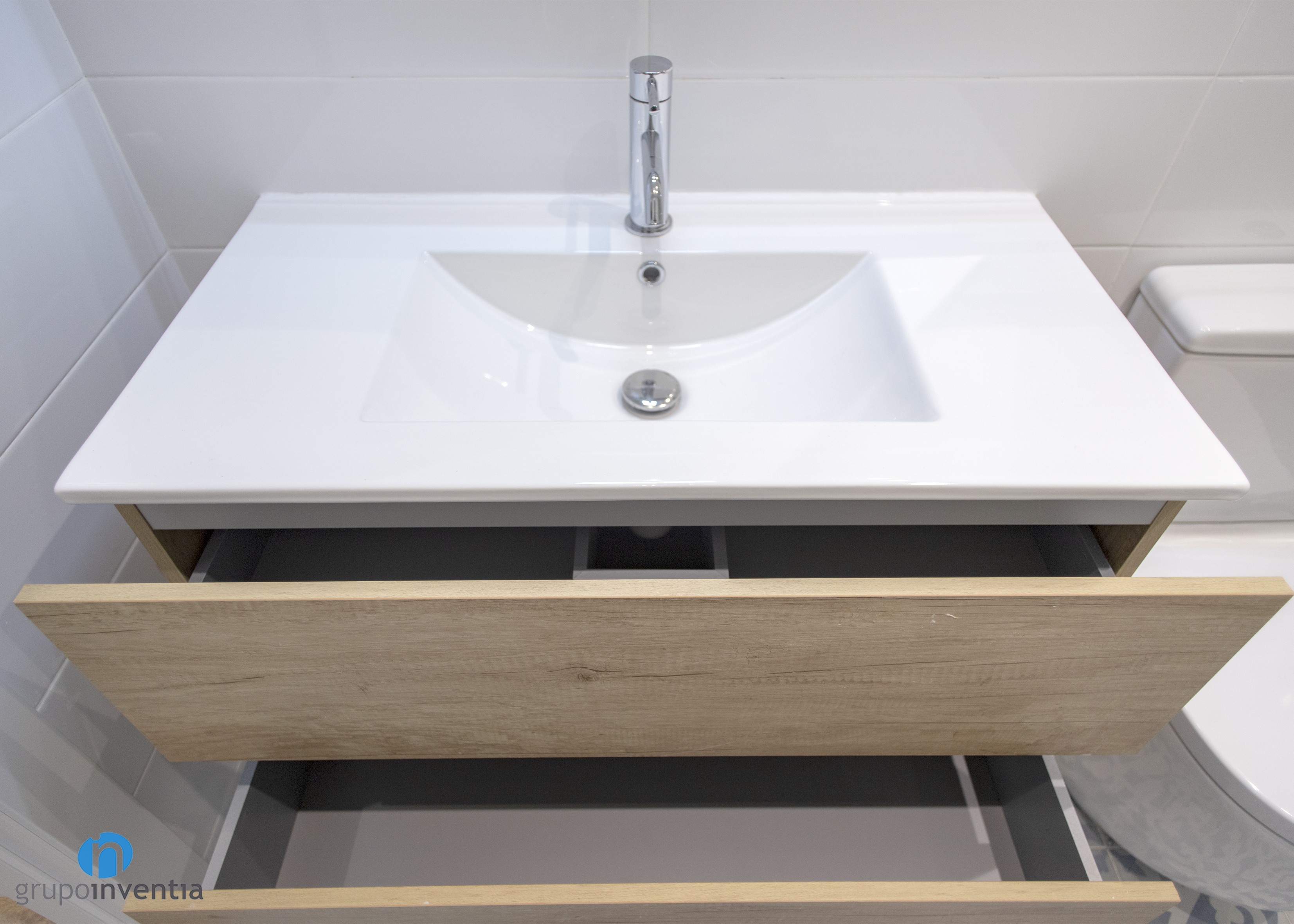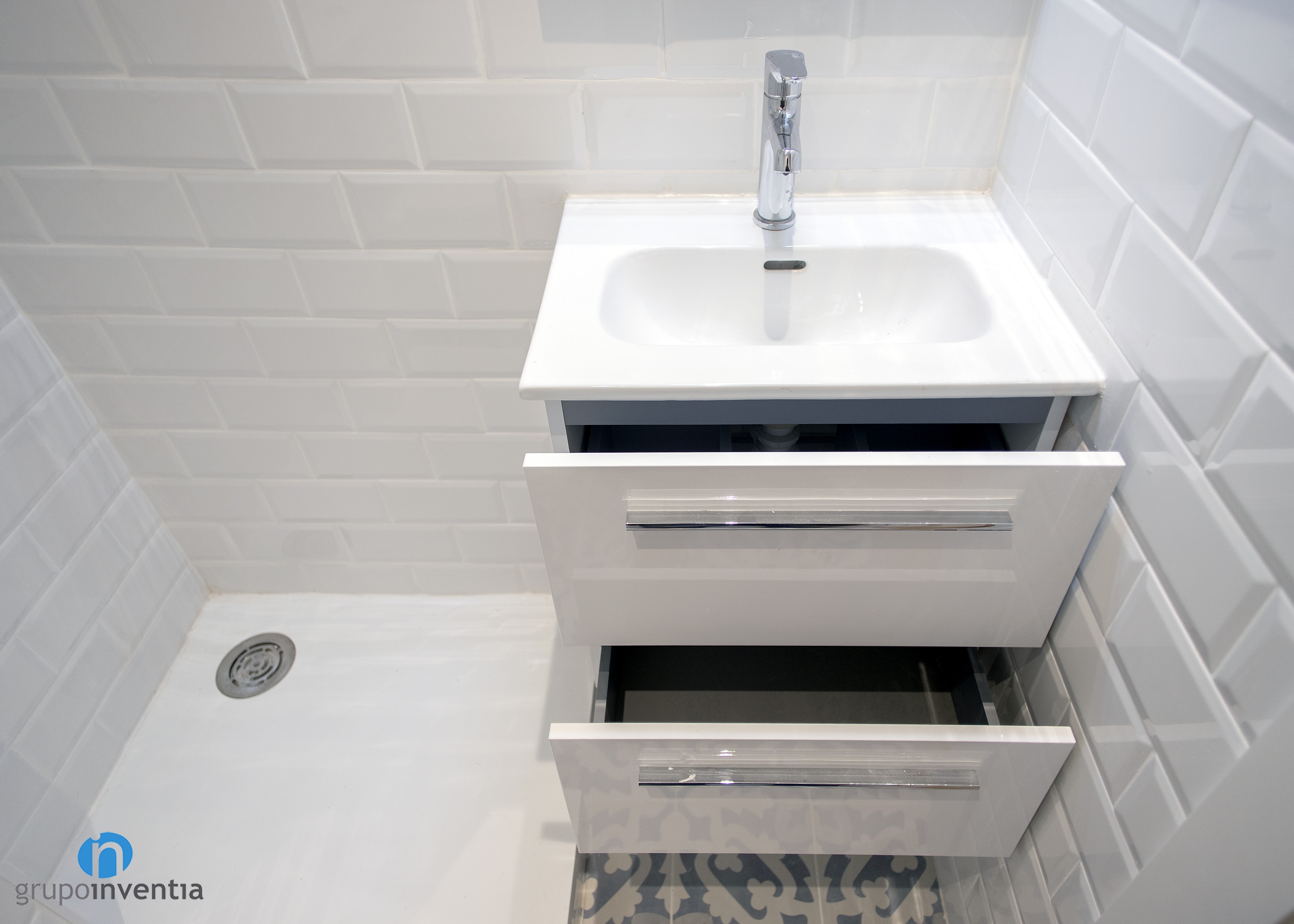 En aquesta ocasió es van dur a terme dues reformes de bany: el principal i el de cortesia. Les dues estances es van equipar amb les mateixes peces sanitàries. Per a això es va col·locar un lavabo amb moble d’emmagatzematge incorporat, un vàter i una dutxa. La diferència més notable és que les del bany principal són més grans, ja que la superfície disponible així ho permetia.