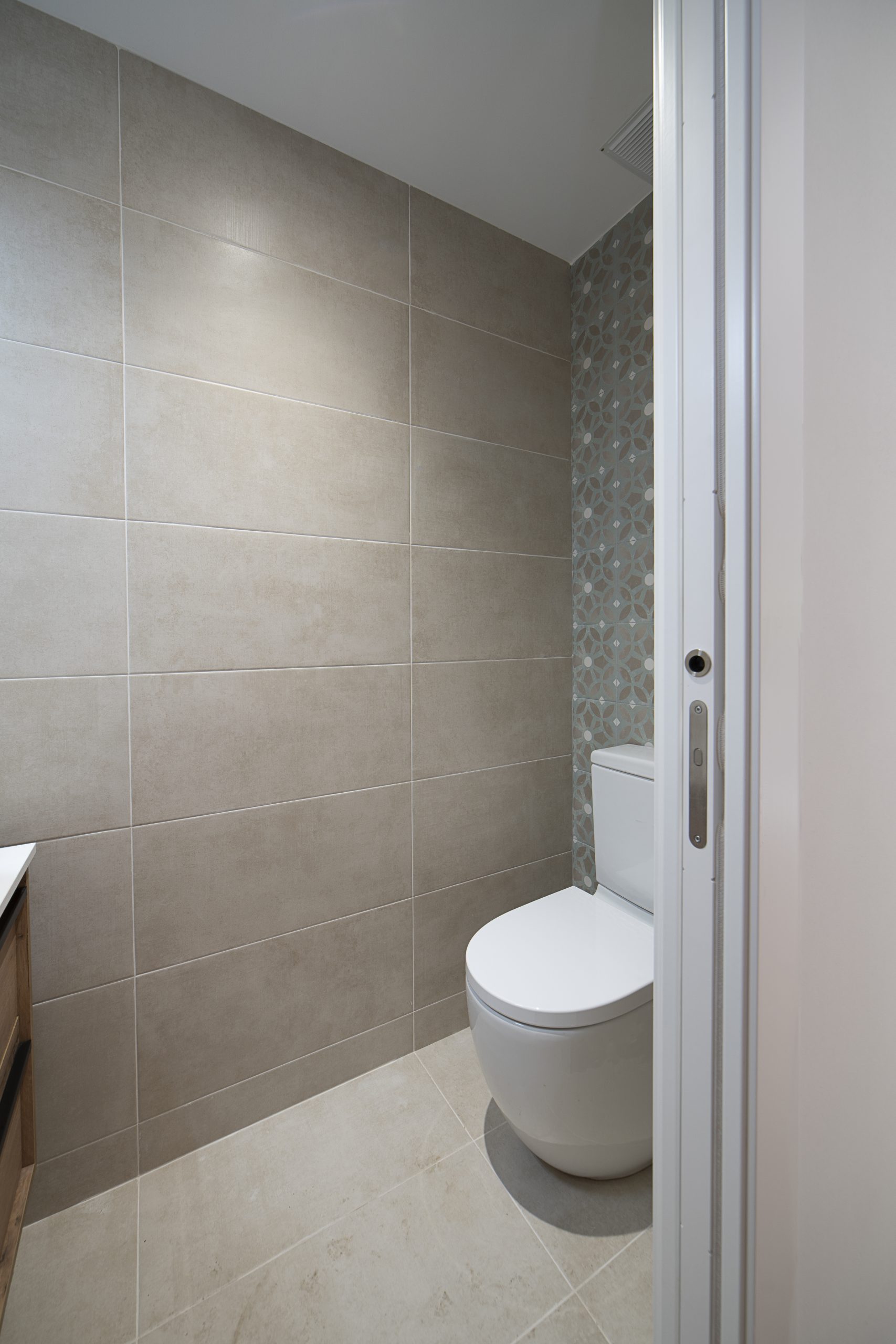 Per a la nova imatge d’aquestes reformes de banys s’ha utilitzat un interiorisme contemporani molt similar. Les parets s’han enrajolat completament amb rajoles de color beige. Per la seva banda, el nou terra també és de rajoles en to beige i s’aconsegueix homogeneïtzar la imatge de les estances.