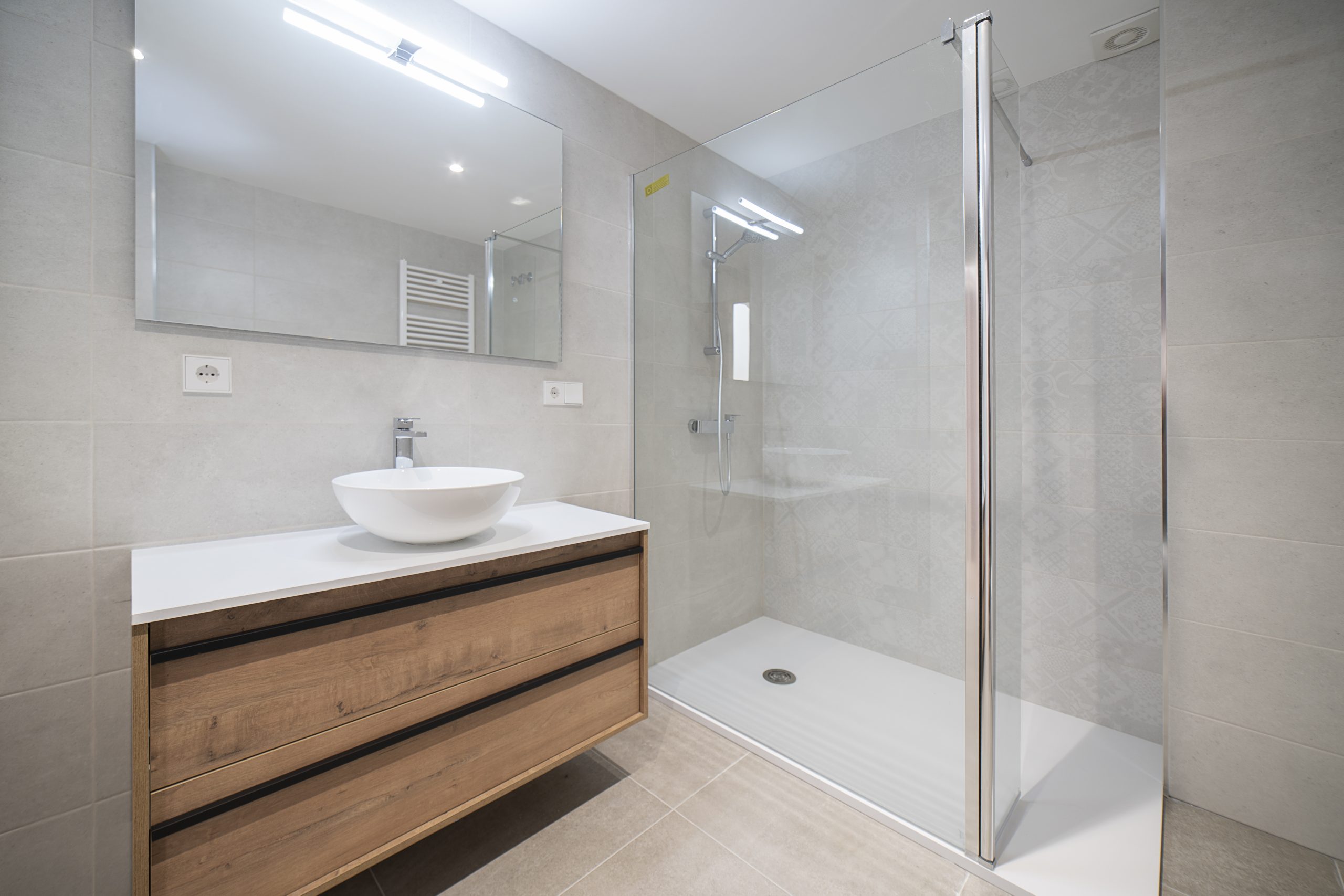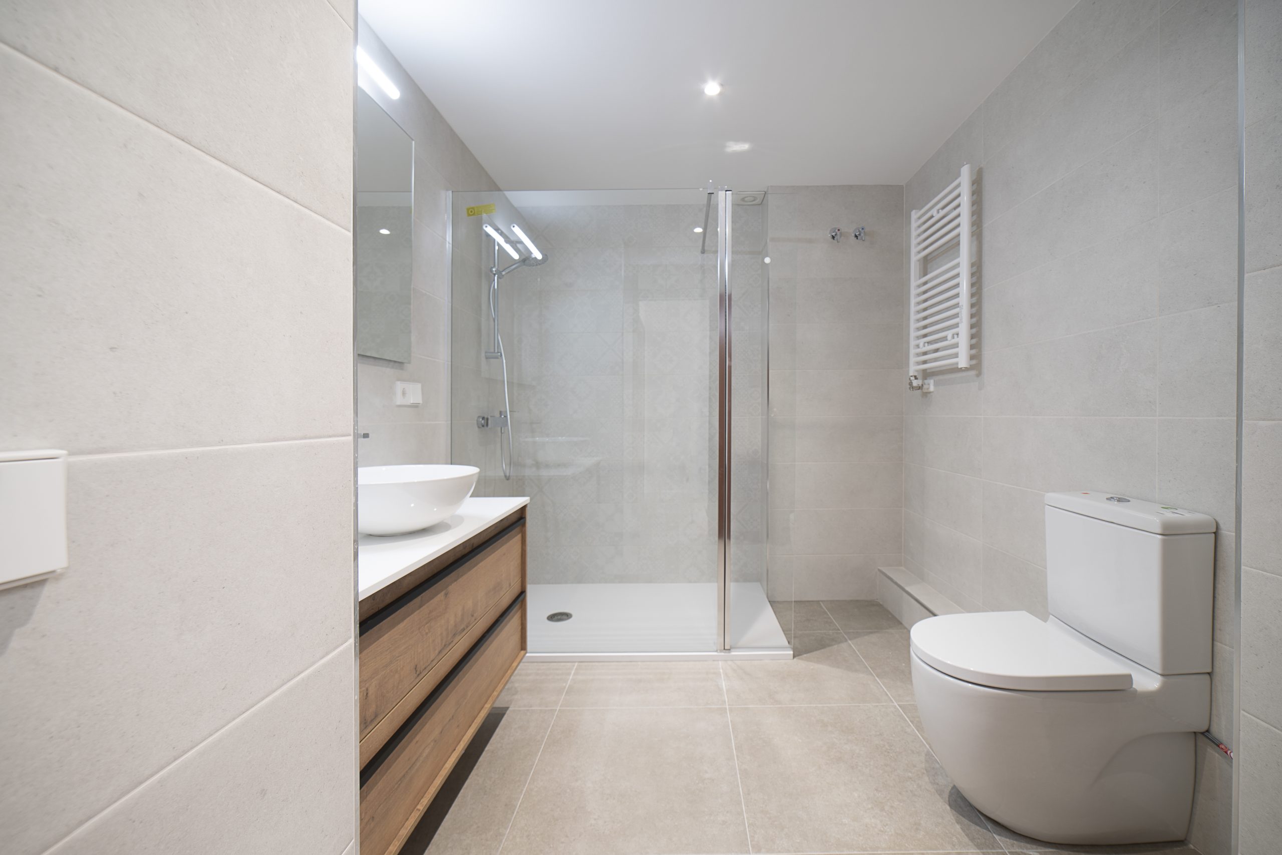 En aquesta reforma integral a Sant Boi també ens hem encarregat de renovar dues cambres de bany. La nostra empresa de reformes també disposa de tot allò necessari per aconseguir reformes de banys adaptades a tot tipus de necessitats. Disposem d´un catàleg ampli amb una gran varietat d’elements decoratius i d´equipament sanitari.