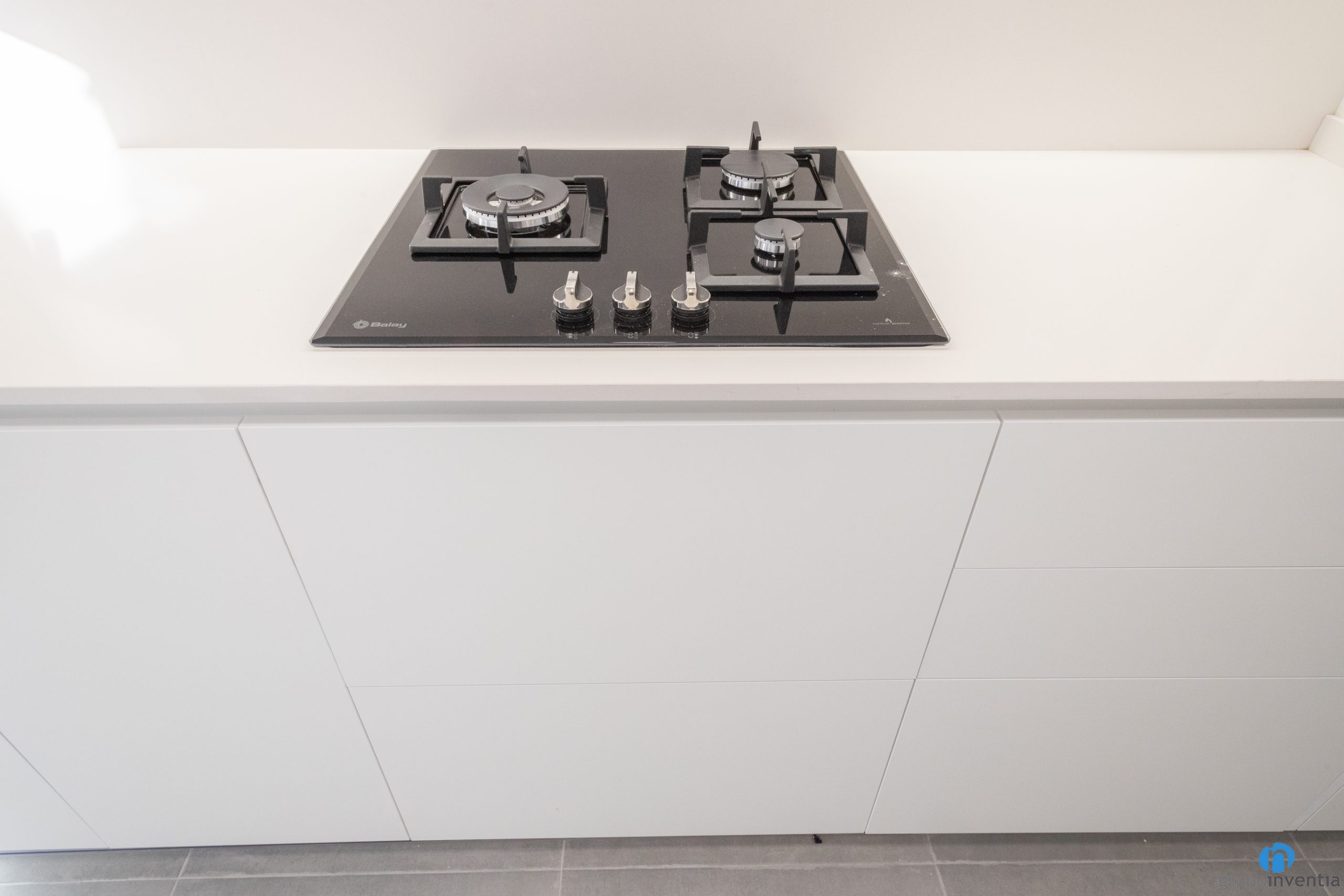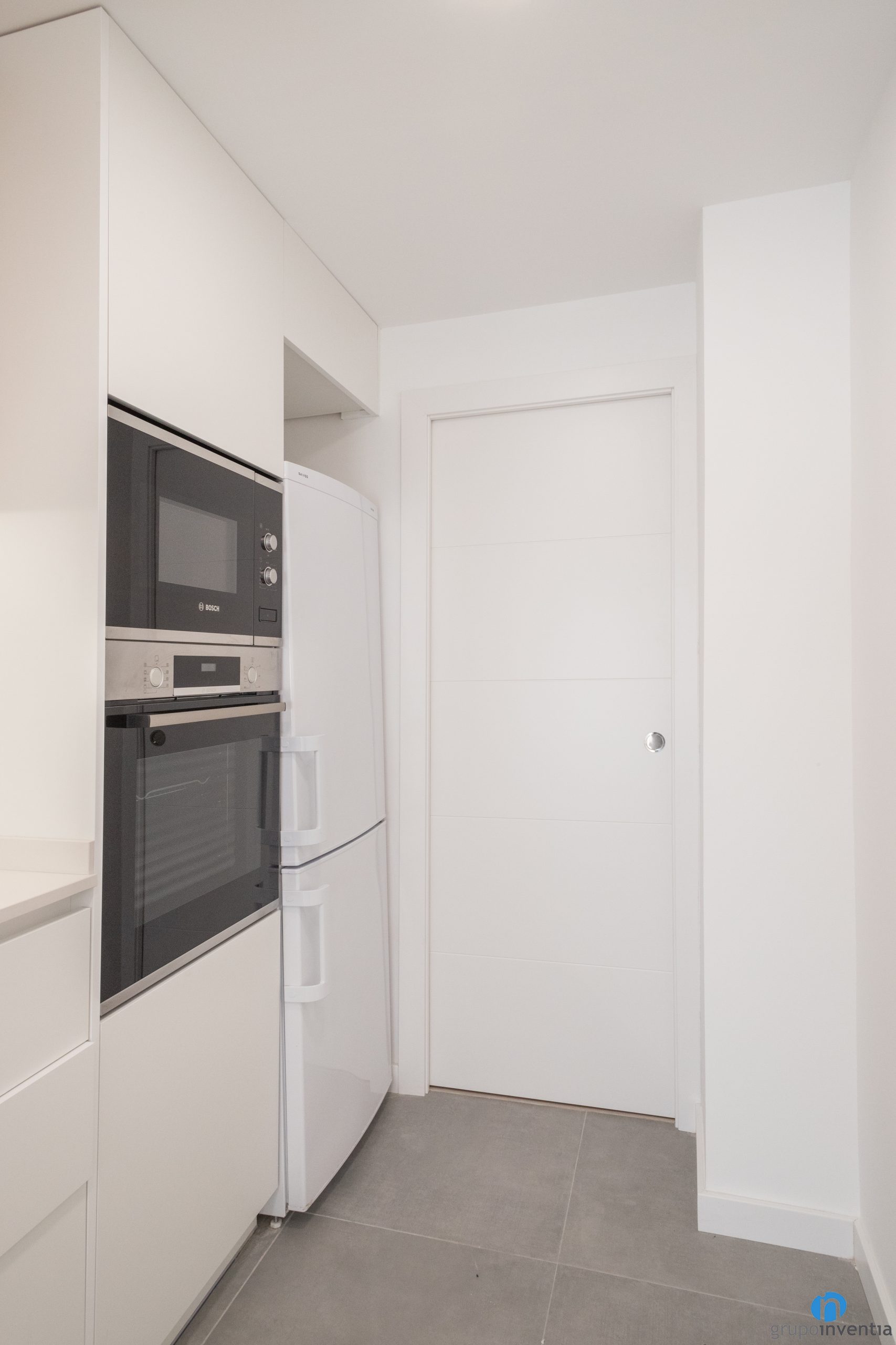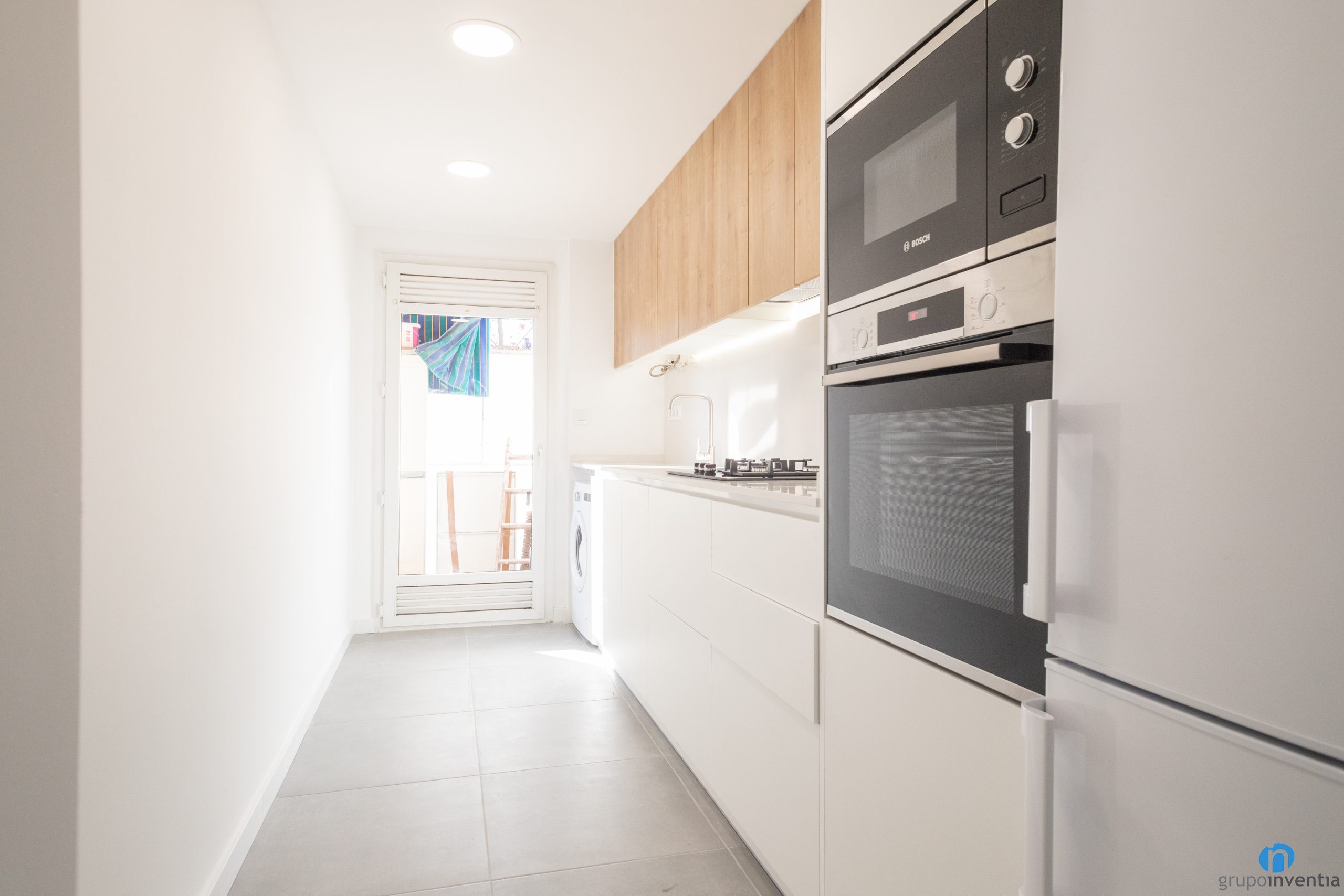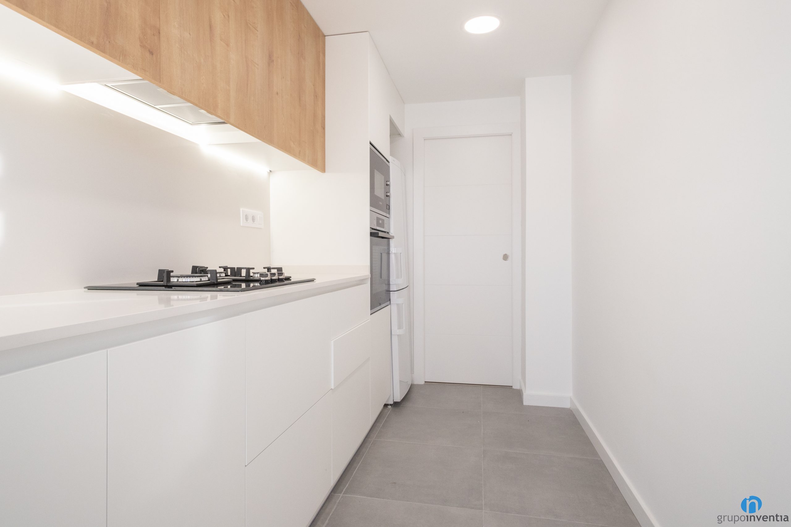 Tant a la part inferior com a superior hi ha capacitat d’emmagatzematge per a la cuina. La part baixa del moble és de color blanc i té un forat a mida per integrar la rentadora. Els armaris superiors es presenten amb un acabat de fusta i amplien la capacitat d’emmagatzematge.