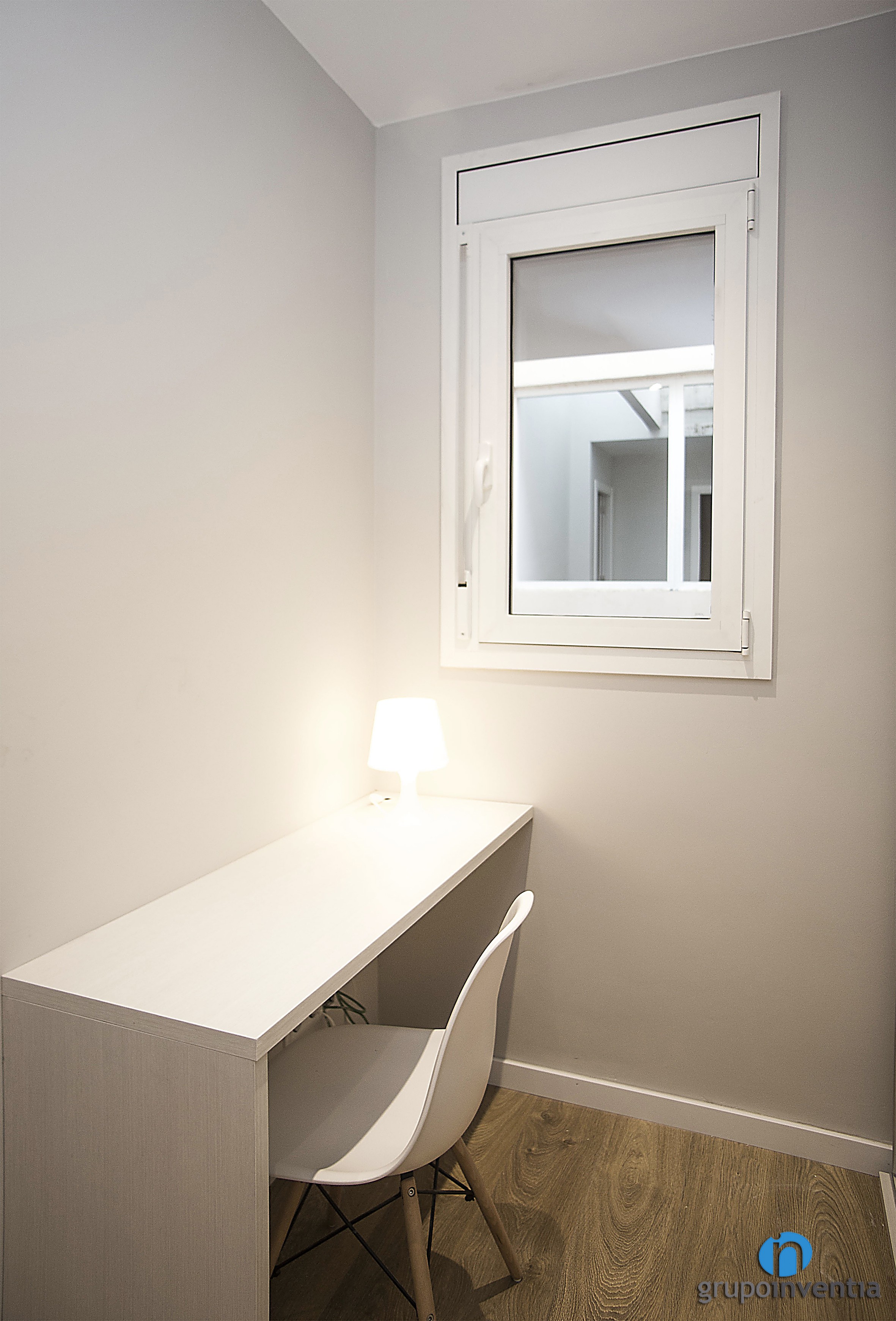 El dormitori també es van reformar i rehabilitar. D’aquesta manera, l’alcova compta amb un llit doble acompanyat per les seves respectives tauletes de nit, a més d’un ampli armari. També es va crear un espai de treball compost per un escriptori i una cadira, un lloc perfecte per a dur a terme tasques personals amb més tranquil·litat.