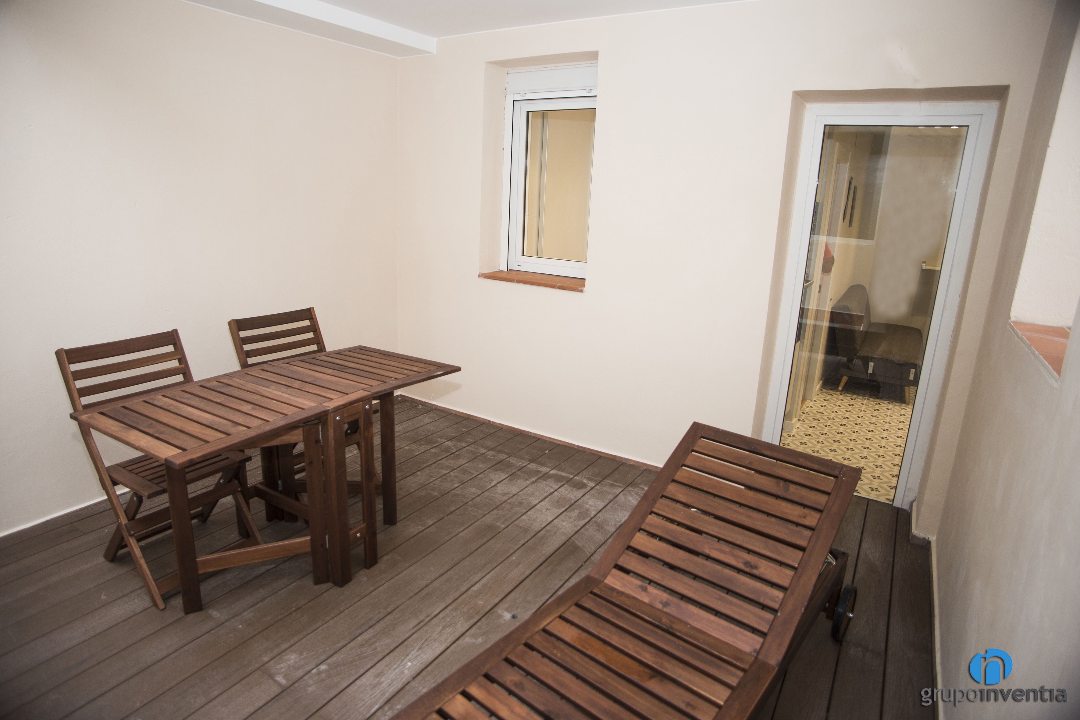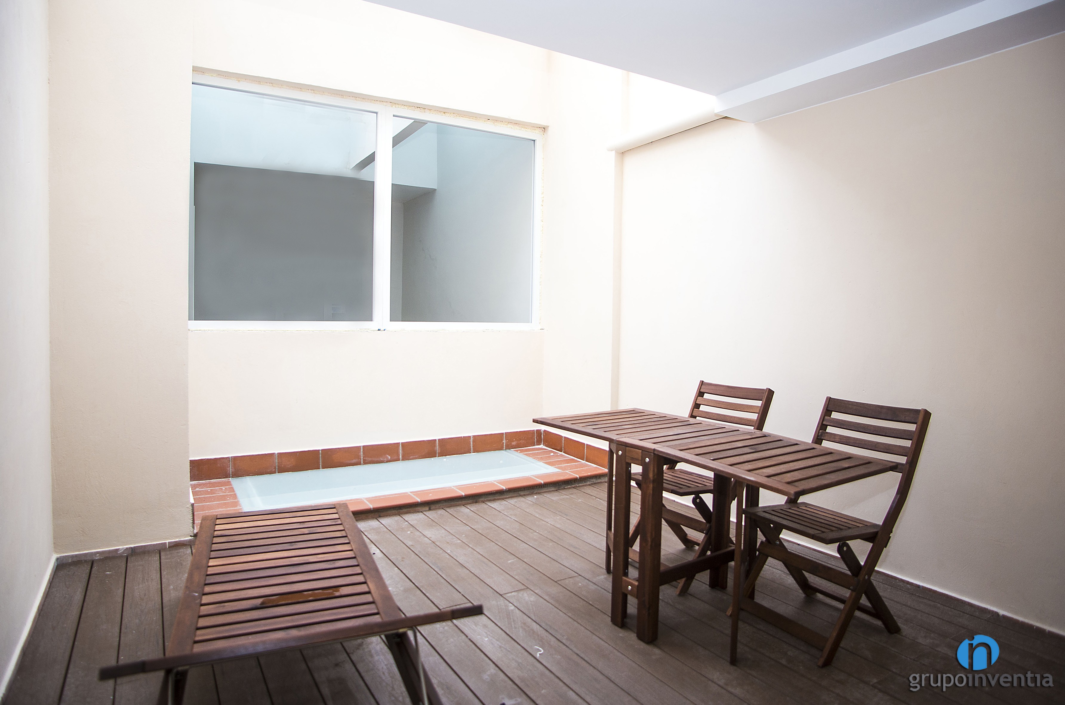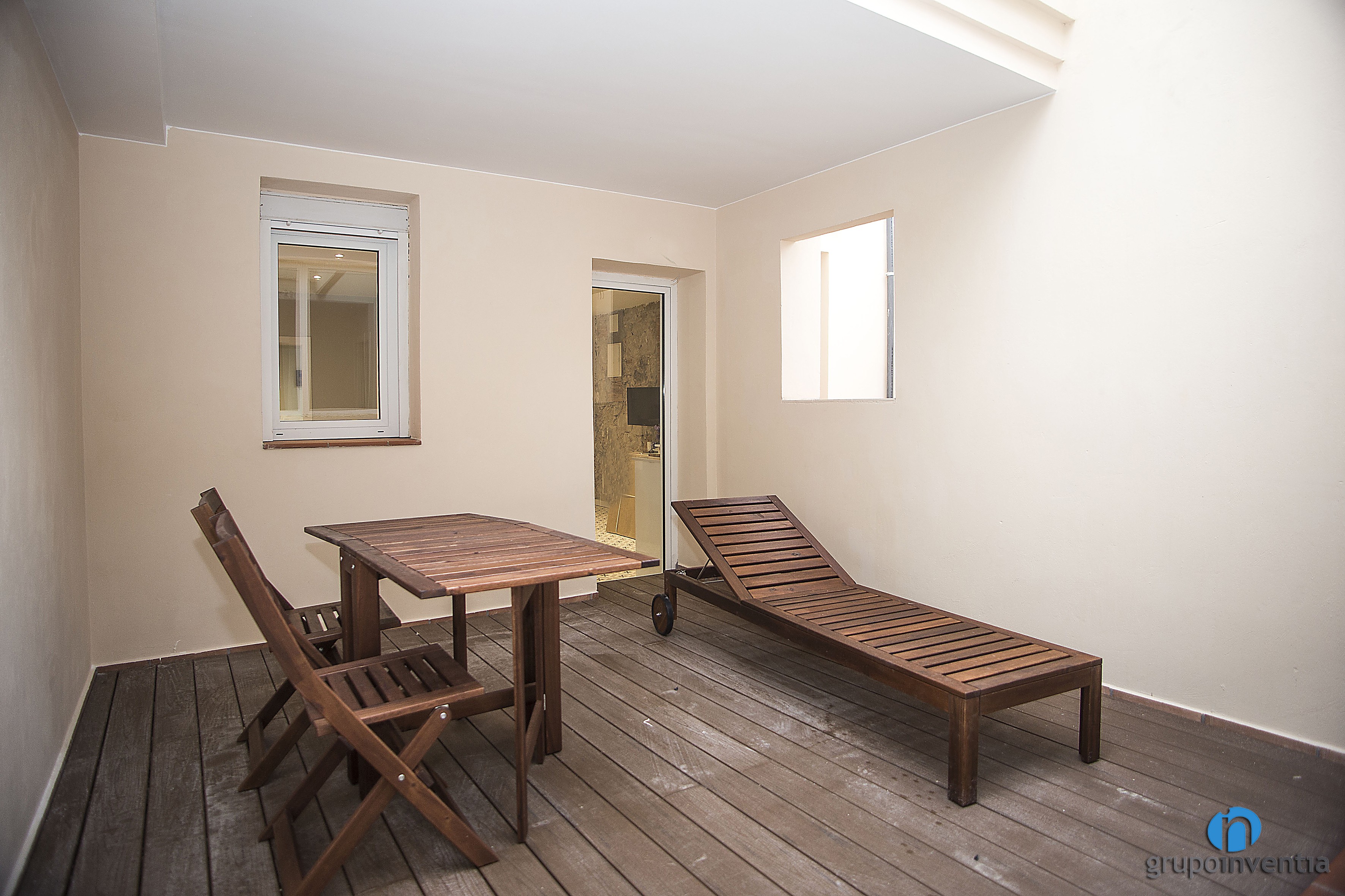 Un dels aspectes més especials d’aquesta reforma integral de vivenda és que compta amb terrassa. Es tracta d’un espai exterior ampli i que s’ha moblat amb una taula i diverses gandules. Destaca la tarima de fusta amb la qual s’ha recobert el terra, creant una imatge perfecta per a la terrassa.