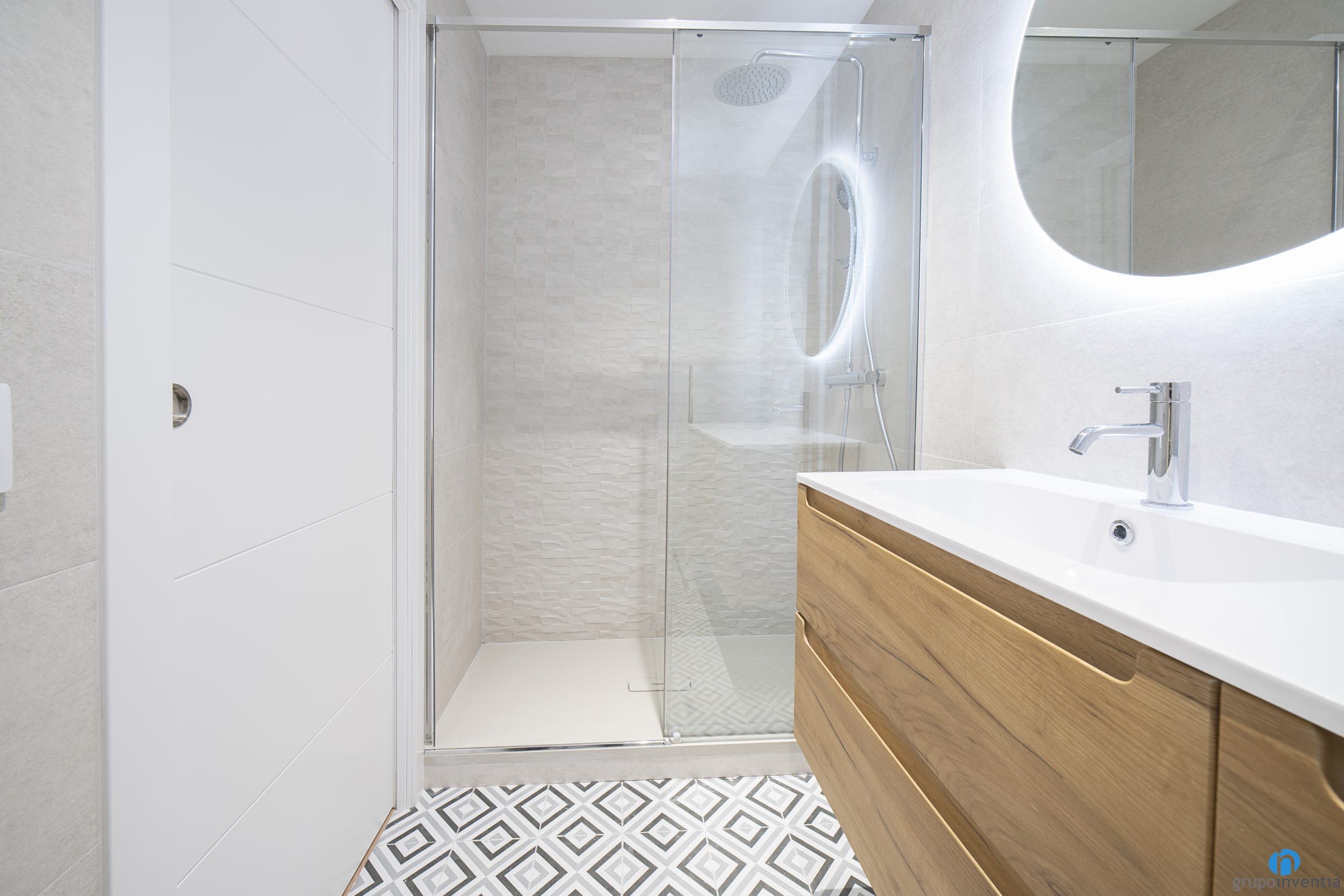 Aquesta cambra de bany s’ha completat amb tres peces sanitàries. Disposa d´un lavabo amb moble d´emmagatzematge incorporat, d´un vàter i d´un plat de dutxa protegit per unes mampares. Ara està llest per oferir les millors prestacions en tot moment, tant diàriament com els dies més relaxats.