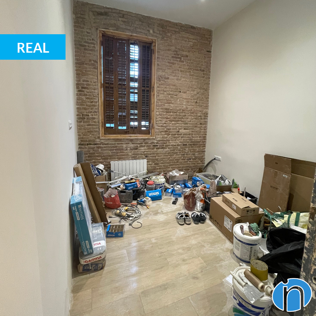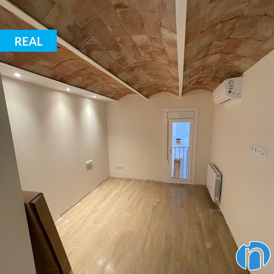 Hi ha parets pintades amb color beige i altres parets de maó vist. Alhora, el sostre també s’ha restaurat i es presenta amb la clàssica volta catalana tan reconeixible dels pisos de Barcelona. Els acompanya un terra de parquet en tons mitjans de fusta. Una combinació impecable i capaç de generar un ambient càlid i acollidor a la llar.