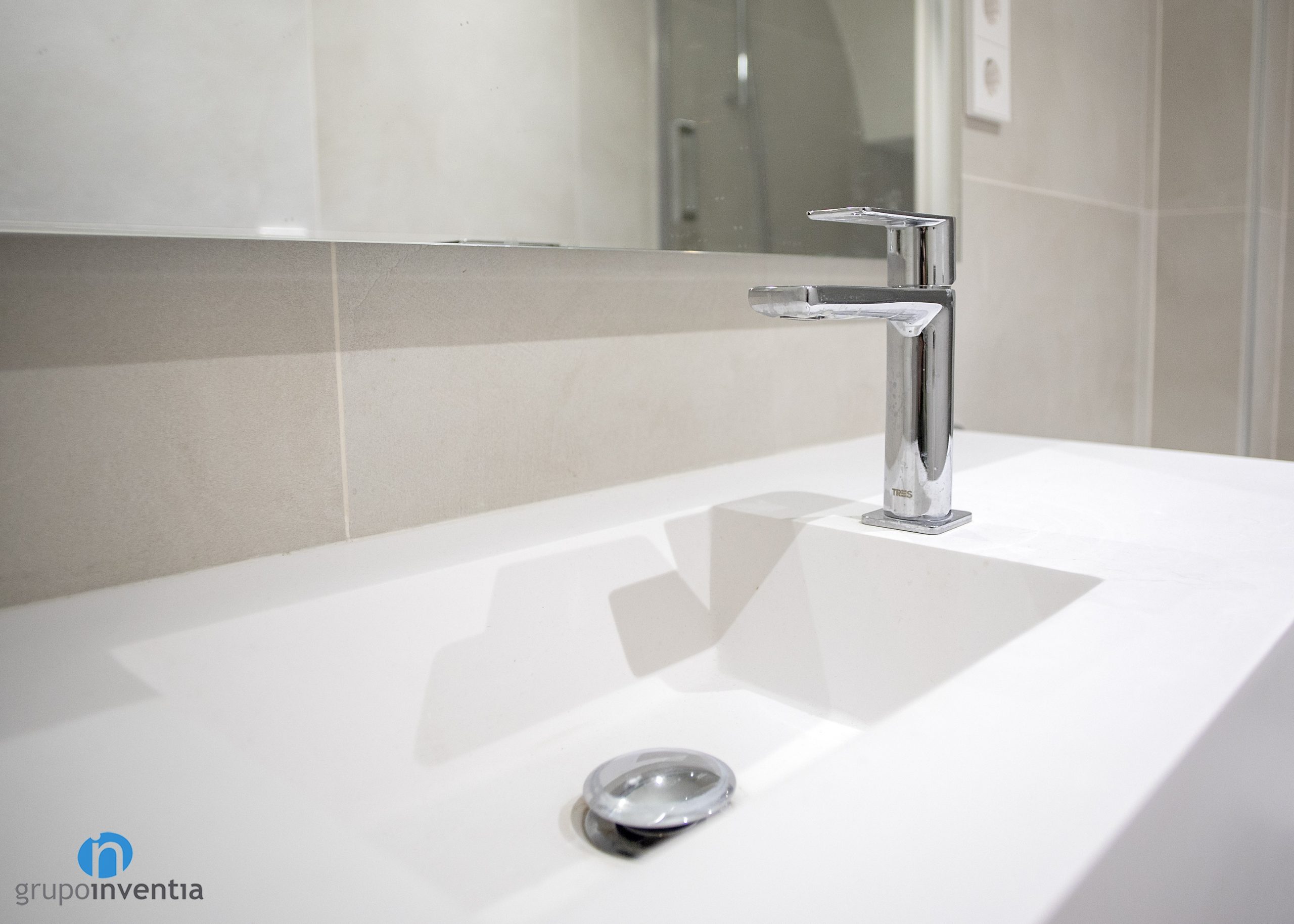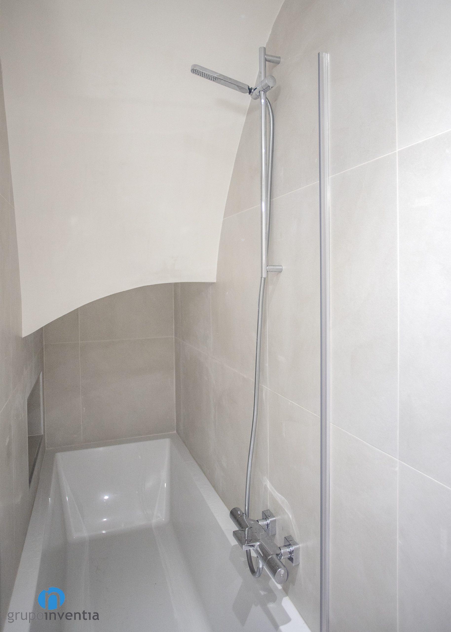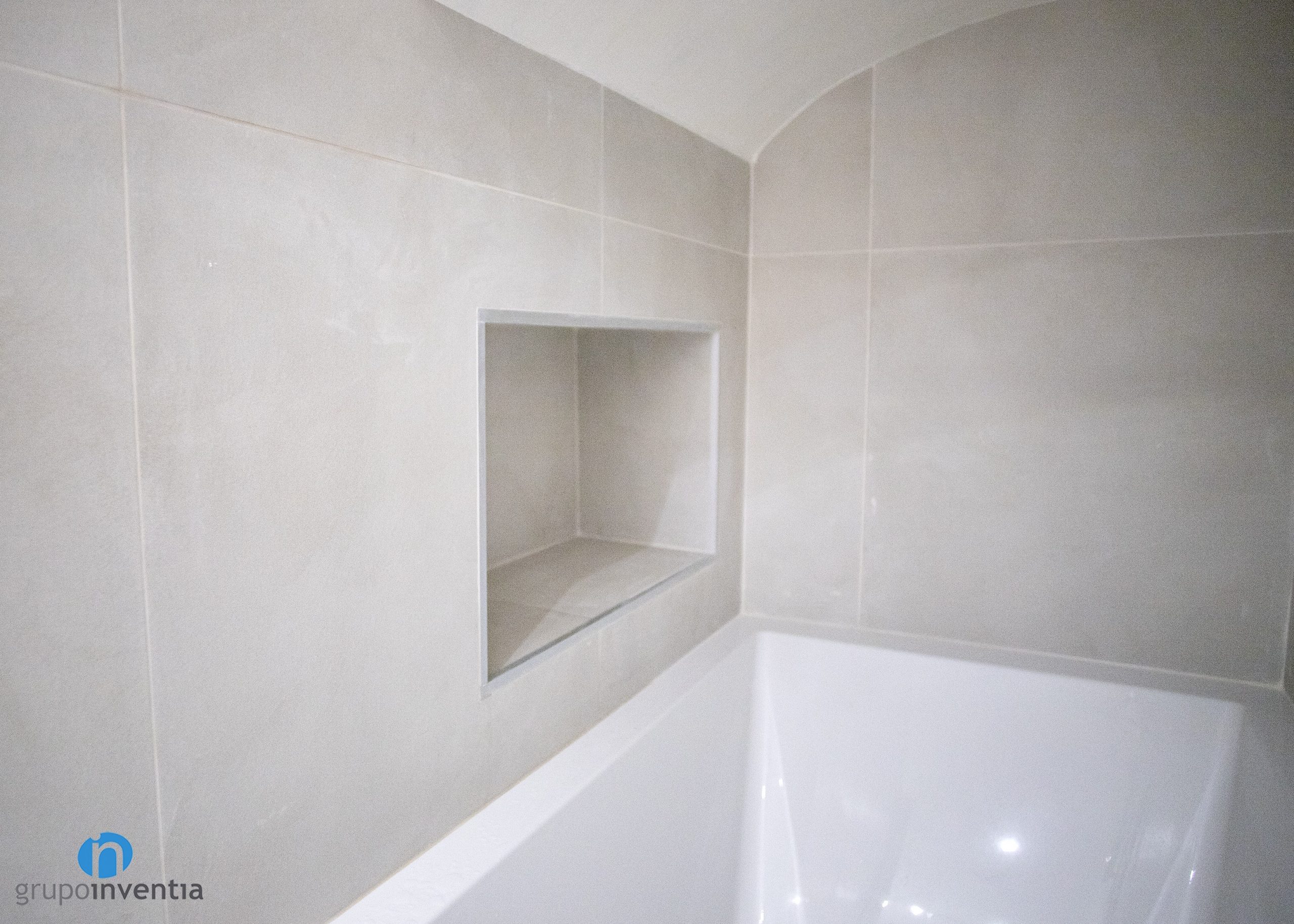 Per a la reforma de bany s’ha apostat per una imatge contemporània amb la qual s’ha aconseguit una estança visualment àmplia i molt lluminosa. Per a això les parets s’han enrajolat completament amb rajoles de color beige, una tonalitat molt semblant a la del paviment de gres que s’ha col·locat.