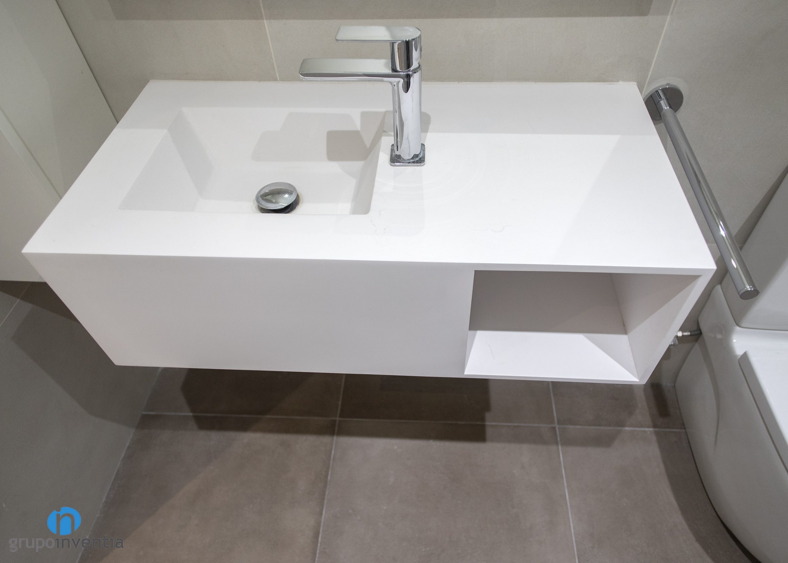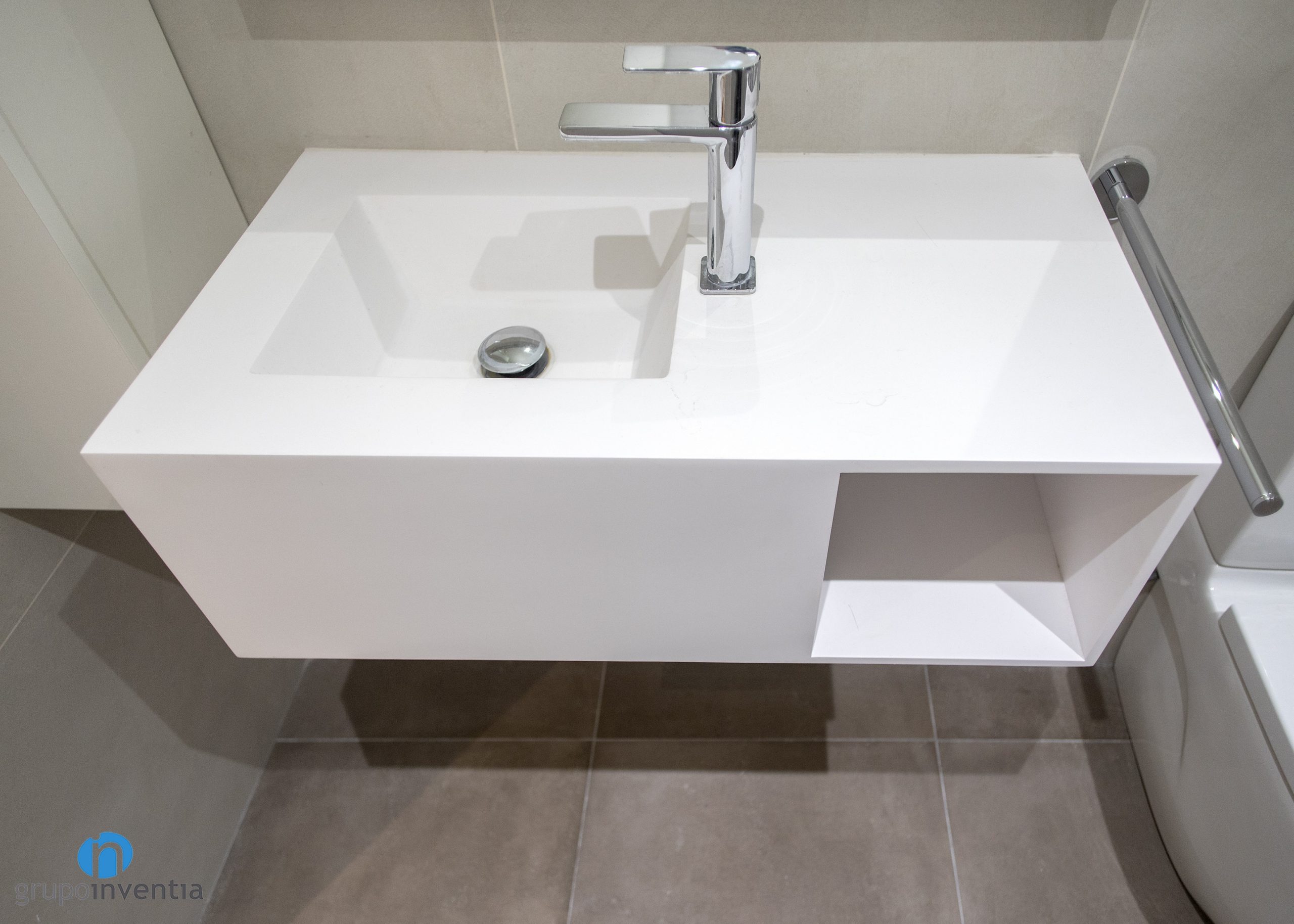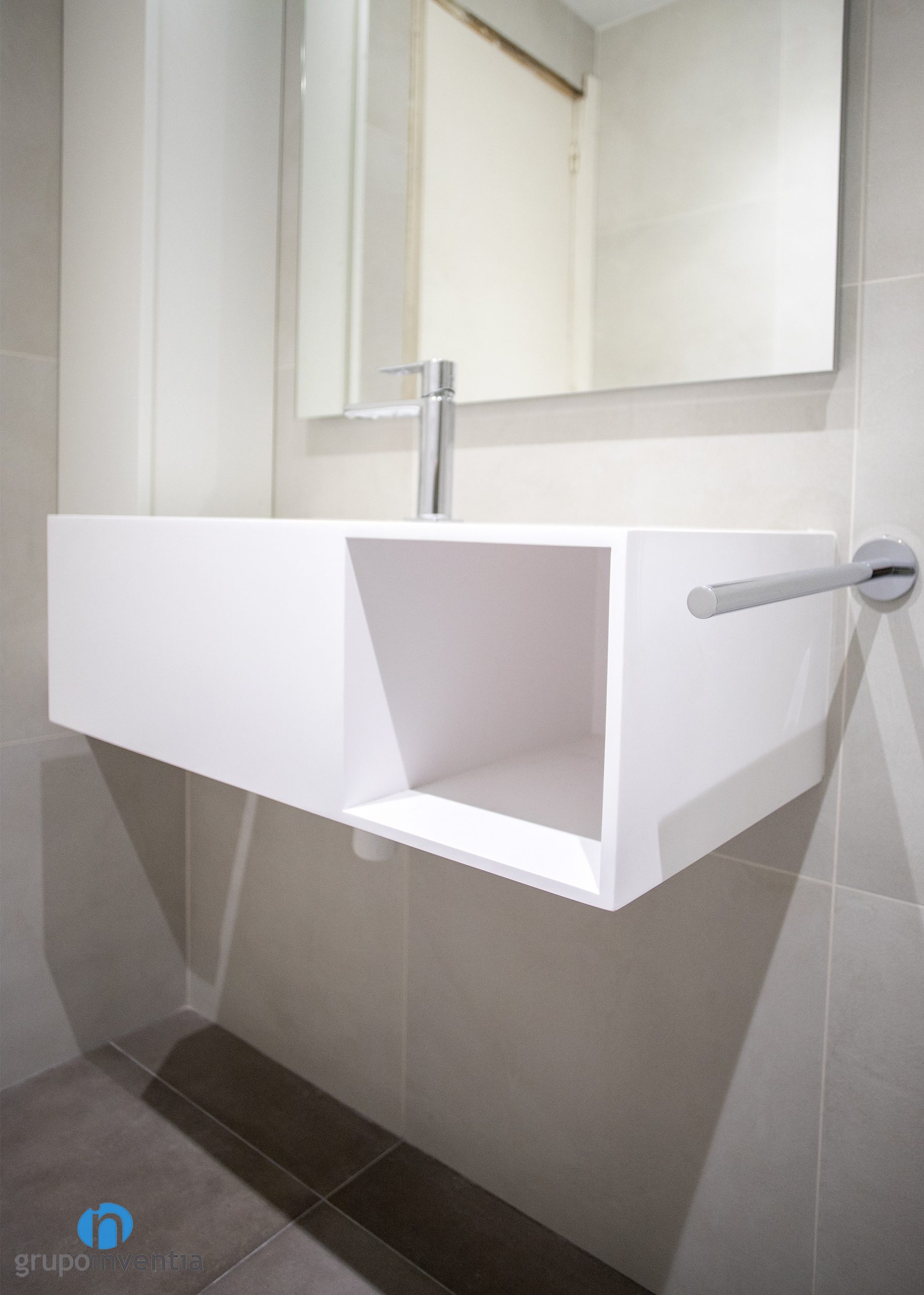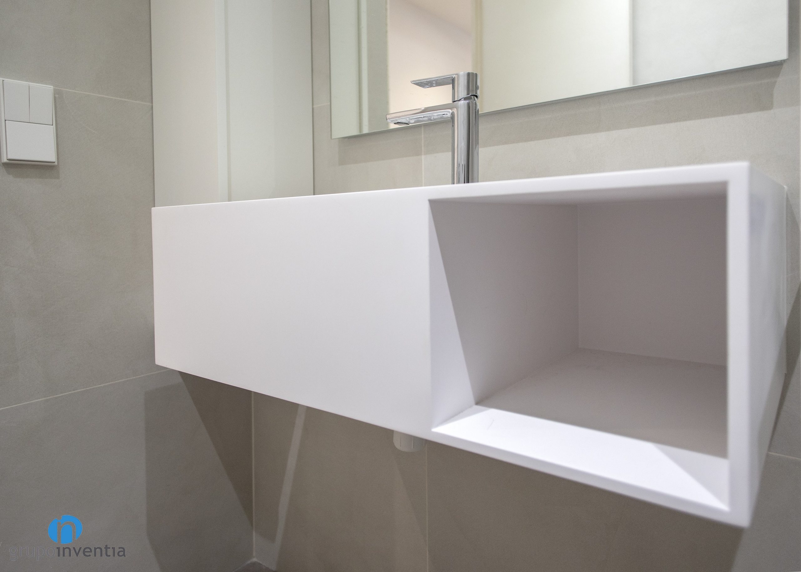 Per a la reforma de bany s’ha apostat per una imatge contemporània amb la qual s’ha aconseguit una estança visualment àmplia i molt lluminosa. Per a això les parets s’han enrajolat completament amb rajoles de color beige, una tonalitat molt semblant a la del paviment de gres que s’ha col·locat.