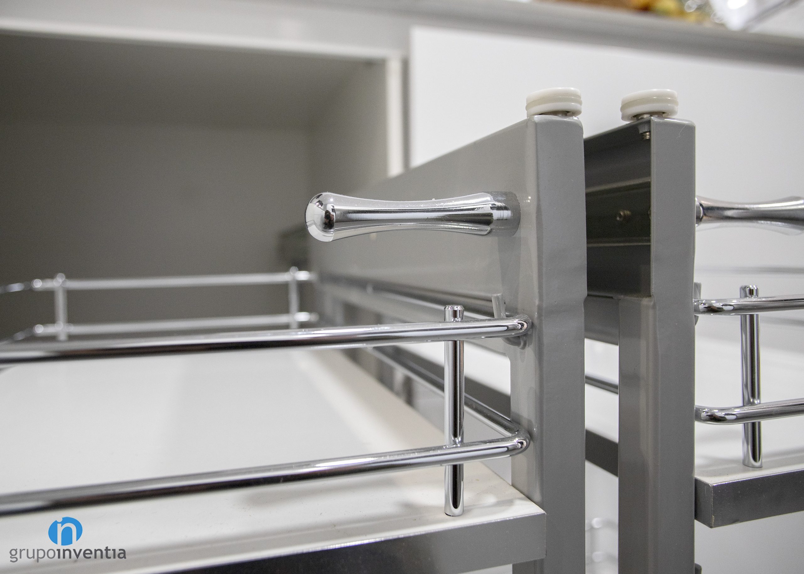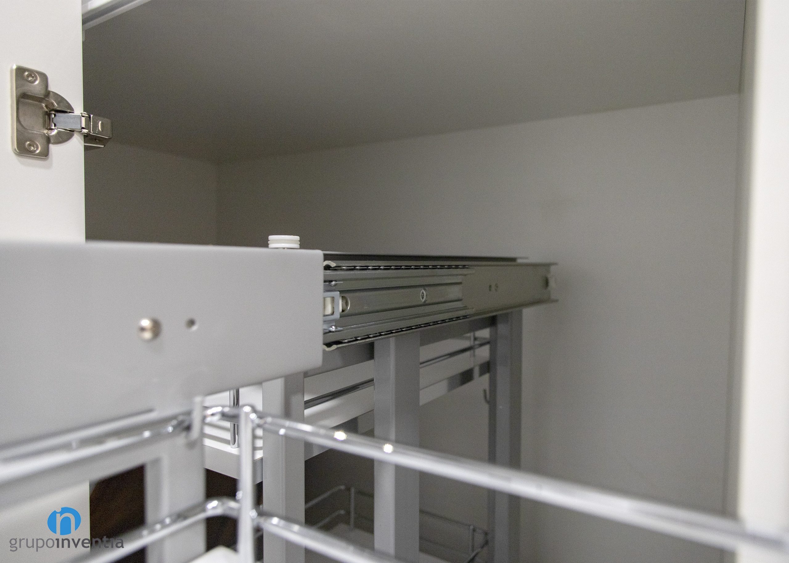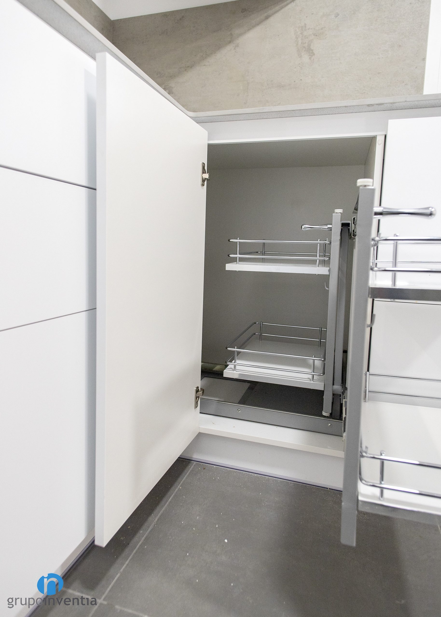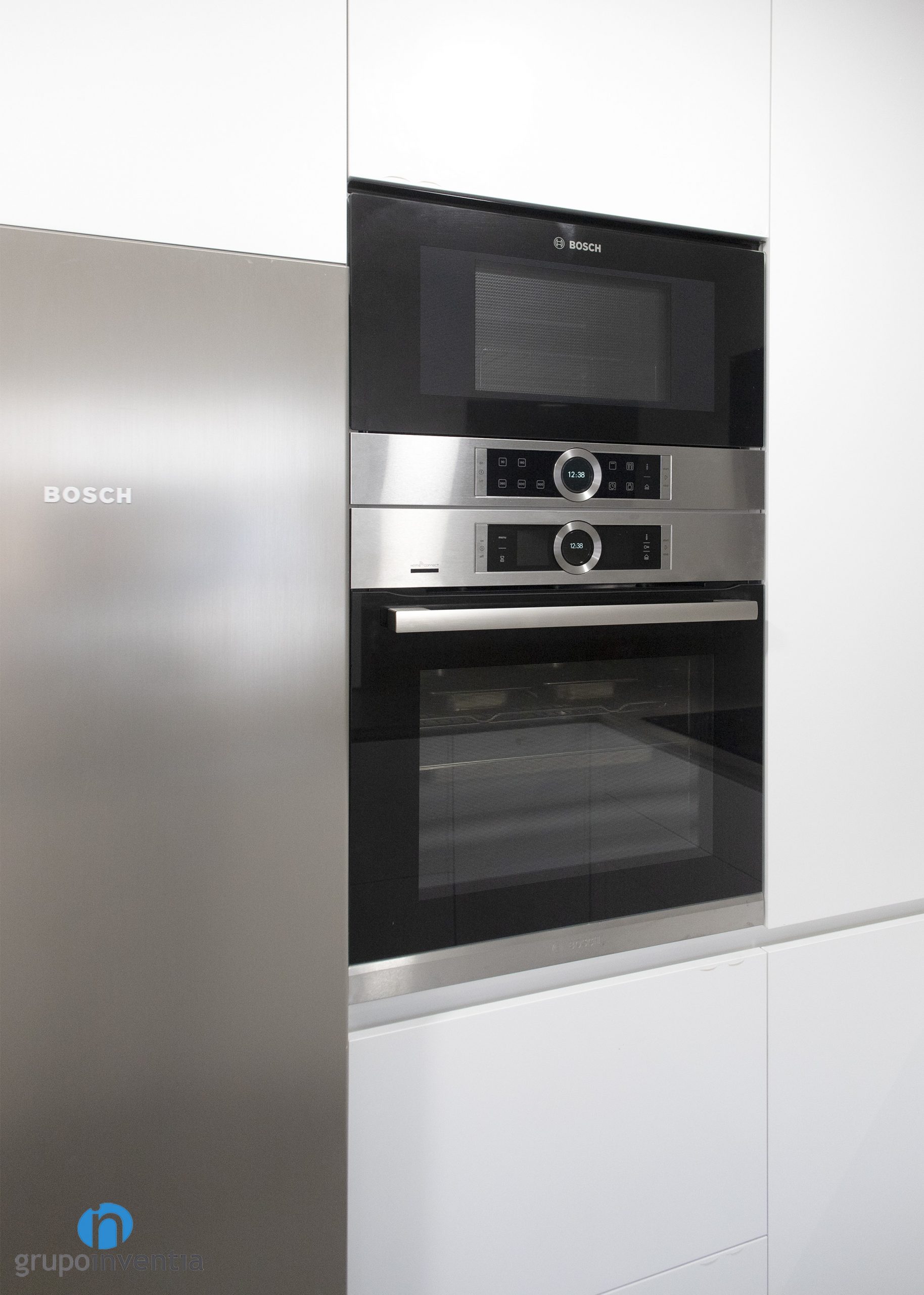 El costat esquerre d’aquesta reforma de cuina l’ocupen els electrodomèstics, concretament la nevera, el forn i el microones. A la part central apareix el primer tram de taulell, equipat amb una placa vitroceràmica. Una nova taulell ocupa tota la part dreta de la cuina. Aquest aporta una àmplia superfície de suport i de treball ia més compta amb la pica.