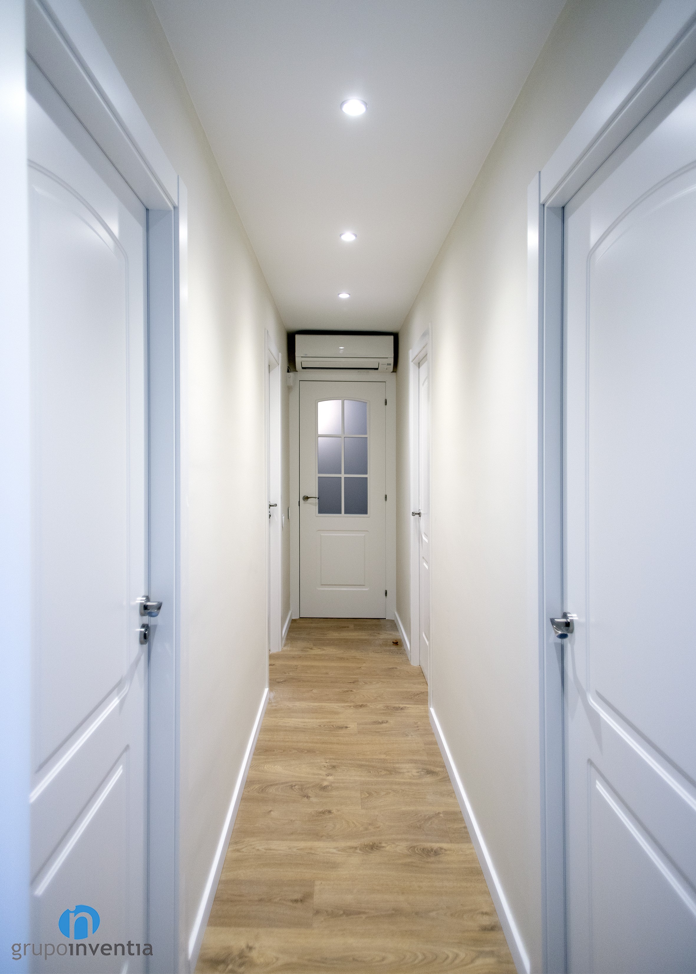 A la resta de l’habitatge es va apostar per imprimir un estil contemporani basant-se tonalitats neutres. D’aquesta manera, les parets es van pintar de color beige i es va combinar amb portes blanques i un terra de parquet en tons mitjans de fusta.