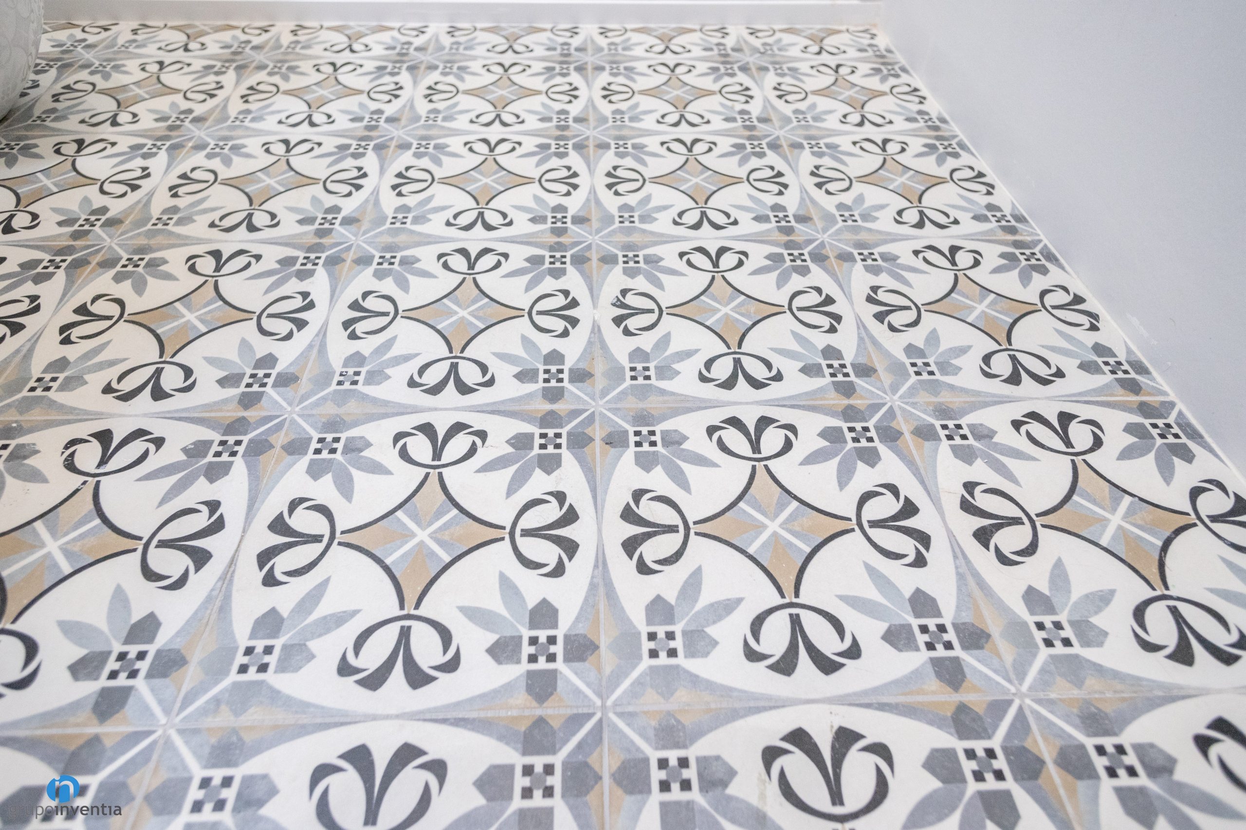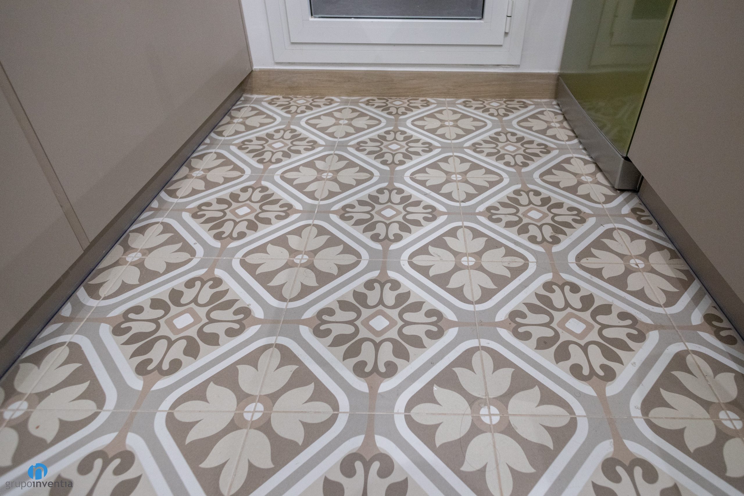Com que és una reforma de cuina oberta, la imatge manté l’interiorisme modern que s’ha aplicat de la resta de la vivenda. És per això que s’han utilitzat tons neutres al moble de cuina i altres nous elements. Per exemple el paviment de cuina és tipus hidràulic i dibuixa figures amb color beix i blanc.