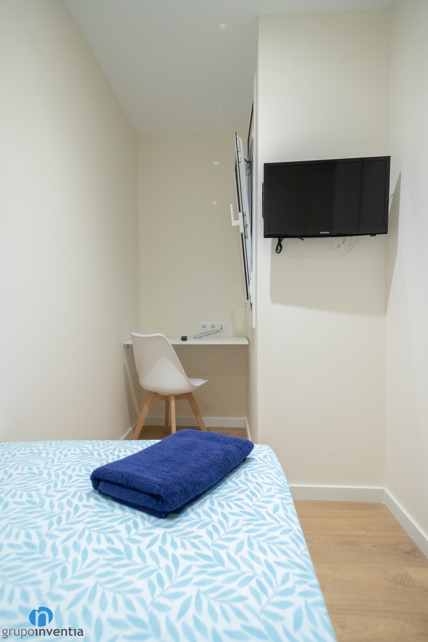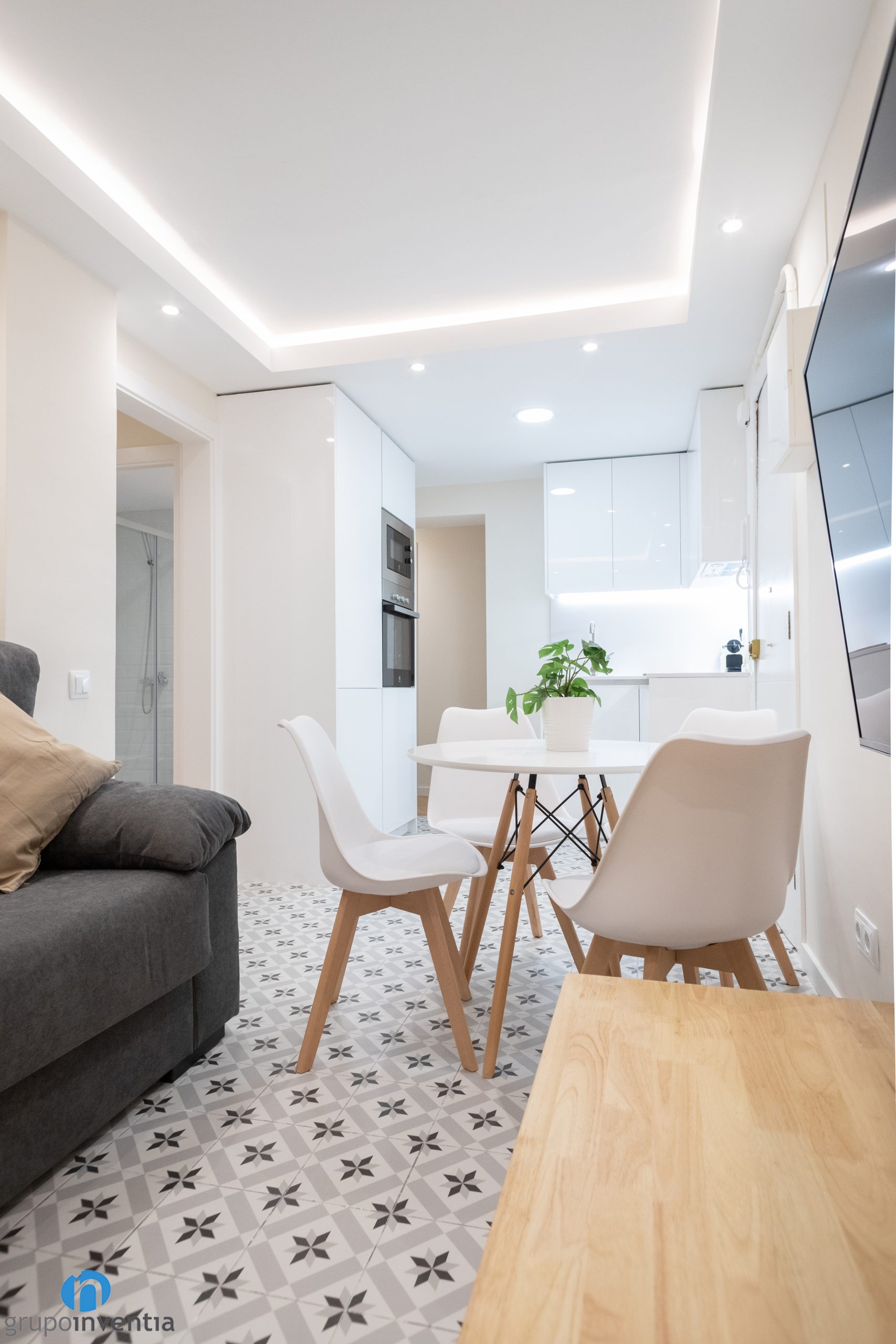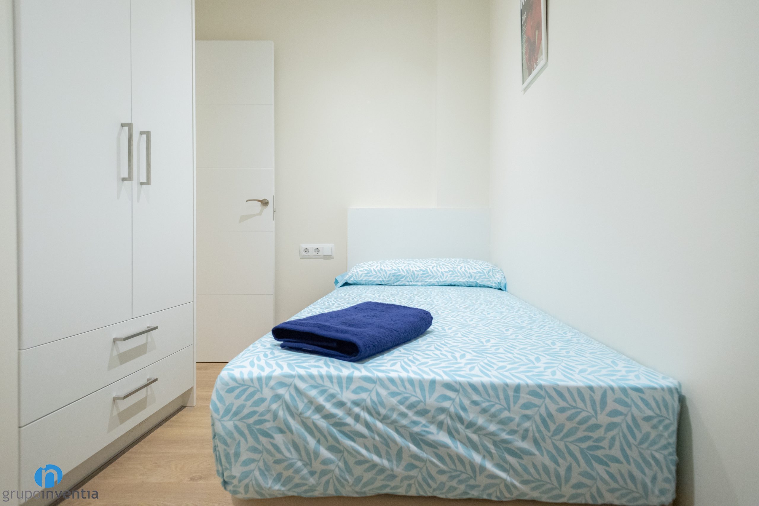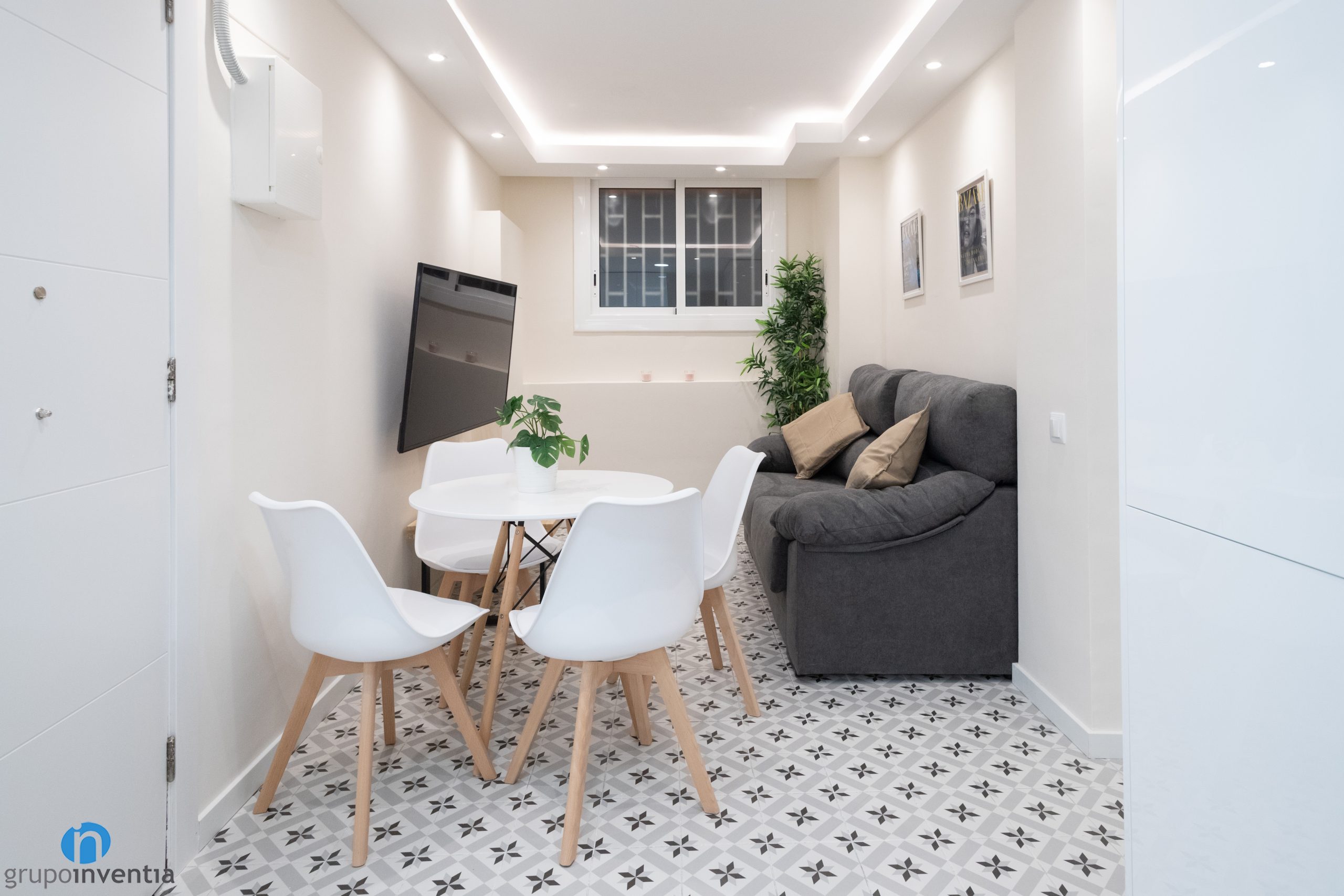 A més d´imprimir aquest nou ambient també ens hem encarregat de moblar tot el pis. A la sala d’estar hi ha un sofà gran, una tauleta allargada i s’ha ancorat una televisió a la paret. A prop hi ha el menjador, equipat amb una taula rodona i cadires per a diversos comensals. Pel que fa als dormitoris, cadascun disposa d’un llit, un armari i una zona de treball.