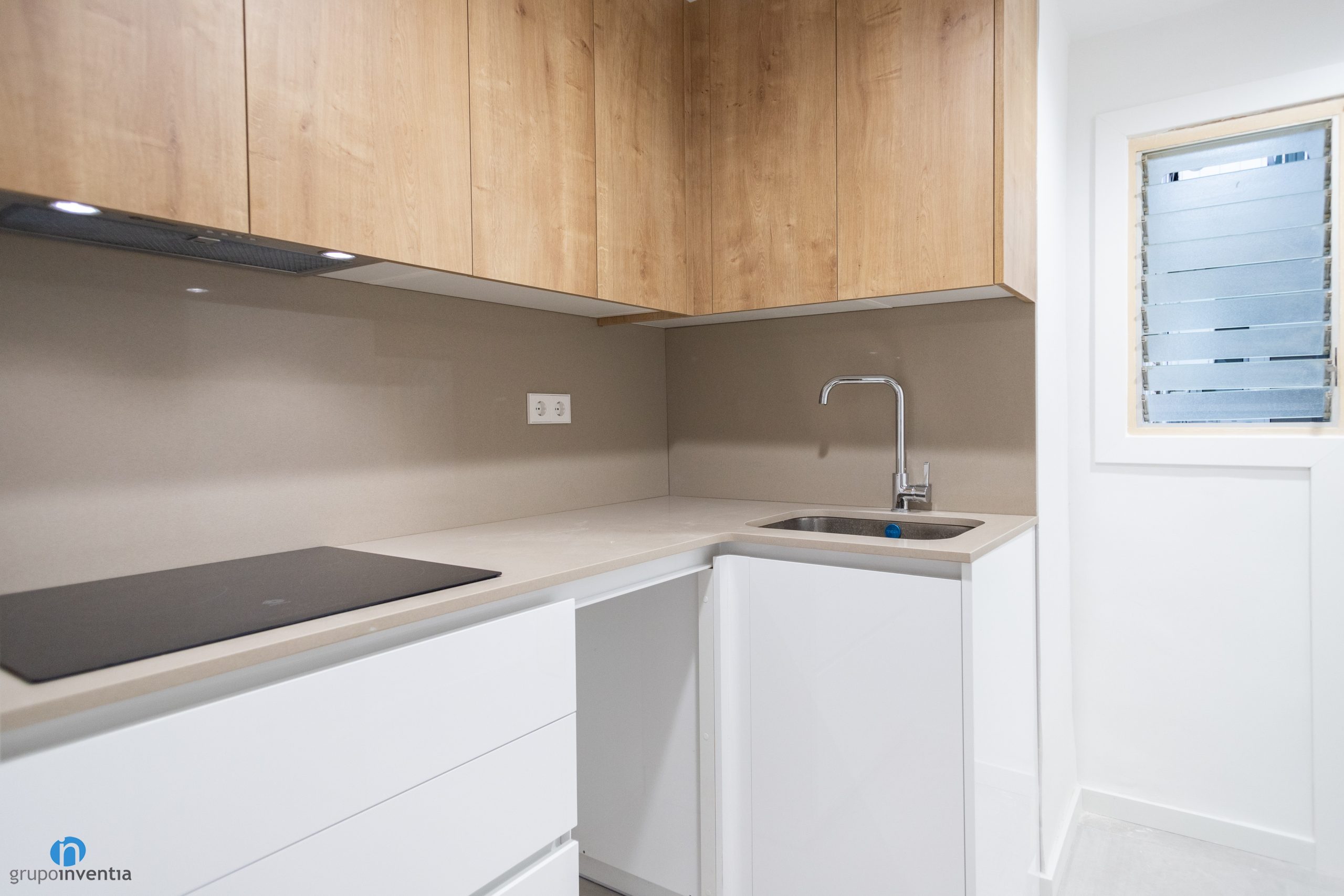 Una altra millora respecte a l’estat original d’aquesta cuina és l’ampliació de la capacitat d’emmagatzematge. Ara tant a la part inferior com superior de les taulells hi ha calaixos i armaris perquè tot quedi ben organitzat. Seguint la línia decorativa de l’habitatge també s’ha apostat per tons neutres. En aquesta reforma integral de cuina es combinen colors com el blanc, el beige i l’acabat en fusta.